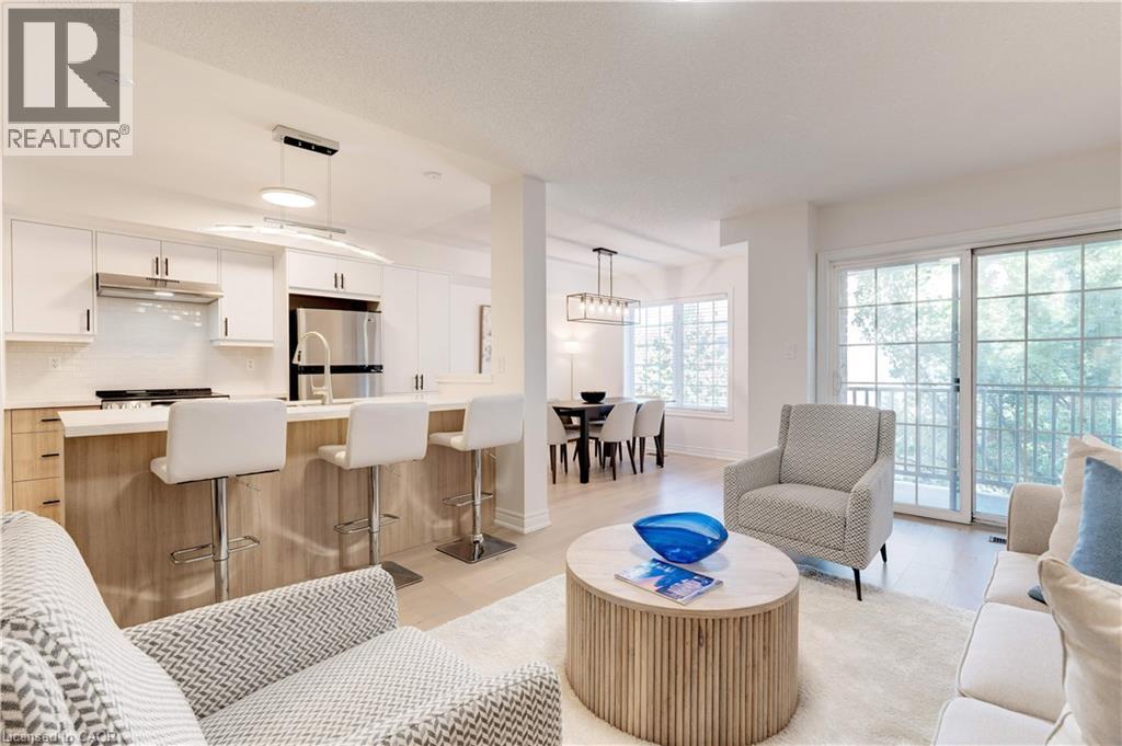 Welcome to this beautifully updated 2-bedroom townhouse. Open concept main floor featuring a brand-new modern kitchen with sleek finishes and stunning white oak floors throughout. Perfect for entertaining or everyday living, this thoughtfully designed space flows seamlessly from kitchen to living area. The upper level features two spacious bedrooms, convenient in-suite laundry, and a versatile office or den — ideal for working from home or a cozy reading nook. This exceptional home combines contemporary updates with practical living in a desirable location. South east Burlington within walking distance to Appleby Go Station, close to parks, schools, shopping, grocery, Appleby Go & quick access to highways. Don't miss the opportunity to make this stunning home yours! Low condo fees $94.34 per month road fee. (id:4555)
