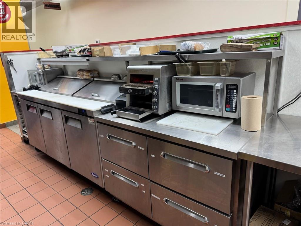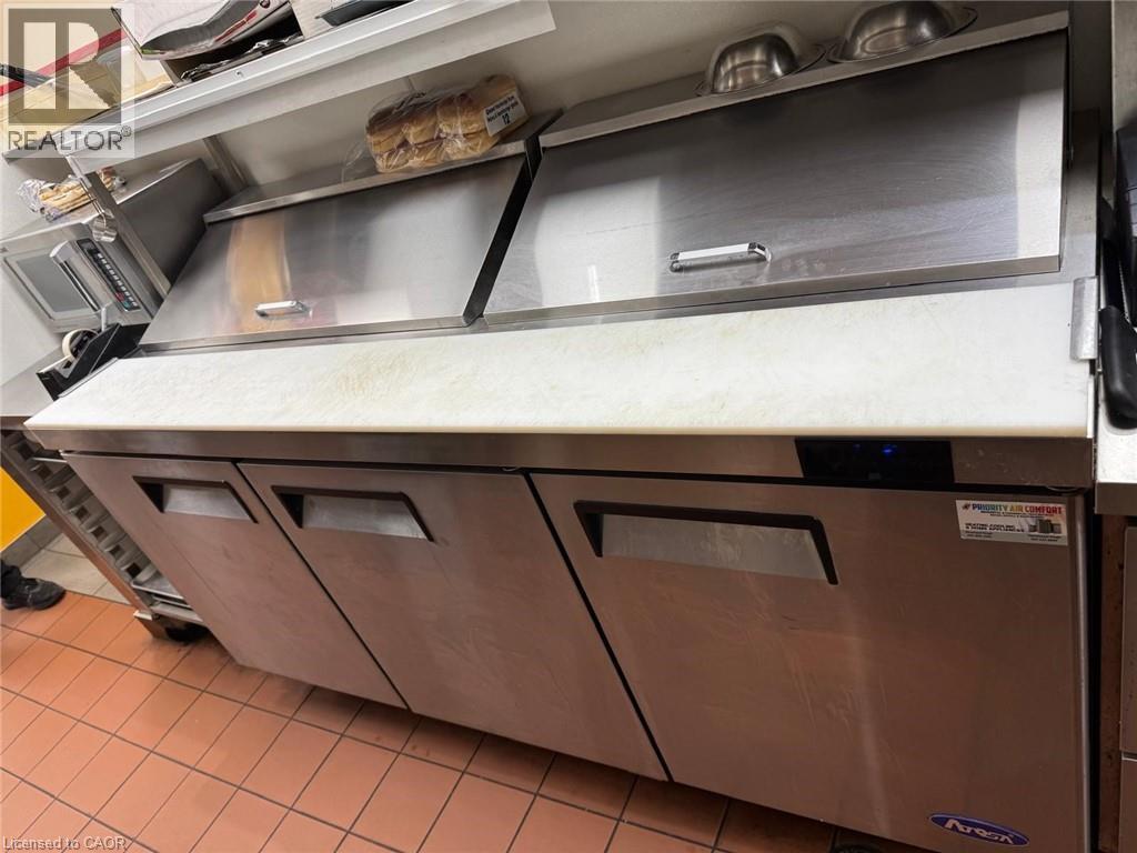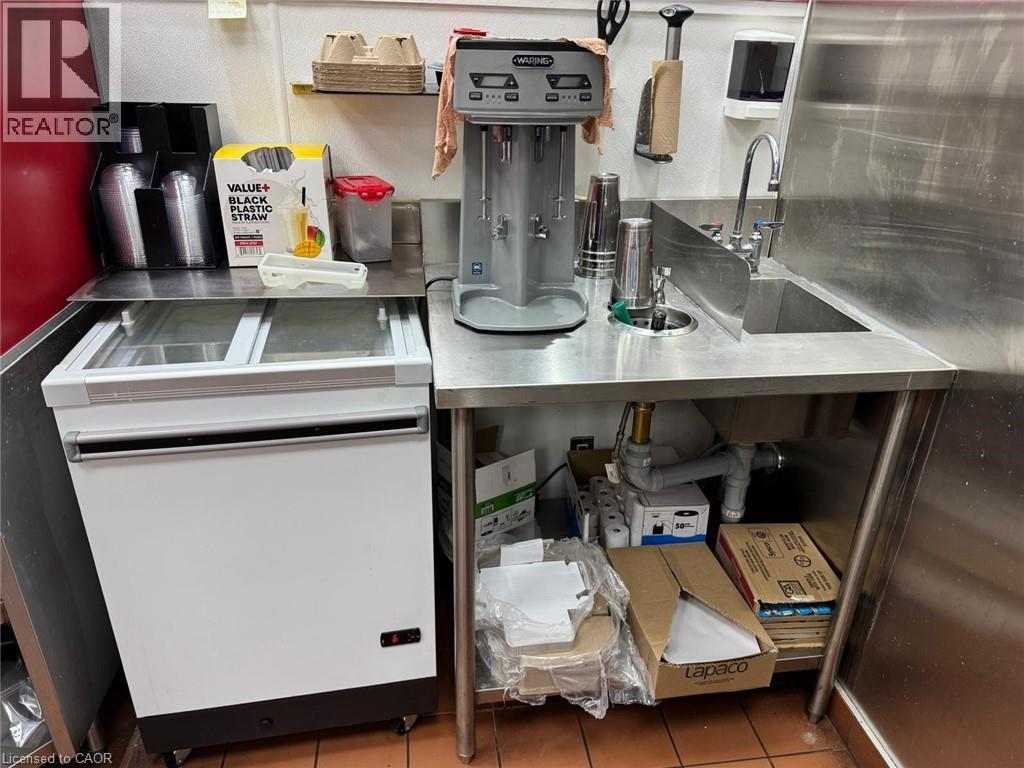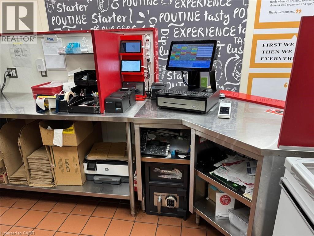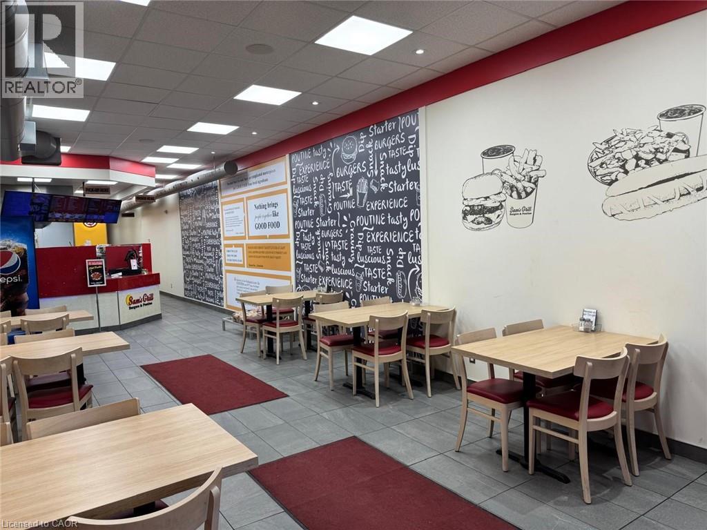 This prime location is a Goldmine for any entrepreneur dreaming of opening their own restaurant or for those wishing to continue the success of an already thriving Turnkey Sam's Grill franchise. Nestled in the bustling heart of Burlington, this spot attracts phenomenal foot traffic, strategically positioned alongside Tim Hortons and Shoppers Drug Mart within a vibrant plaza. Sam's Grill is celebrated for using the freshest ingredients to create mouthwatering, homestyle Burger's, specializing in Quebec-style Poutine, and offering fresh, hand-cut fries without any artificial flavors. The establishment is fully equipped and ready for success, featuring a modern design and state-of-the-art facilities. The completely updated kitchen includes top-of-the-line equipment such as a walk-in cooler, two sandwich stations, and a professional-grade grill. With low industry-standard rent and exceptional visibility in a plaza surrounded by complementary businesses, this location guarantees a steady stream of foot traffic. Whether you choose to continue operating under the well-established and popular Sam's Grill brand, known for its loyal customer base and high-quality food, or transform the space into your unique concept, this is a perfect opportunity to make your culinary dreams come true in a location already primed for success. (id:4555)