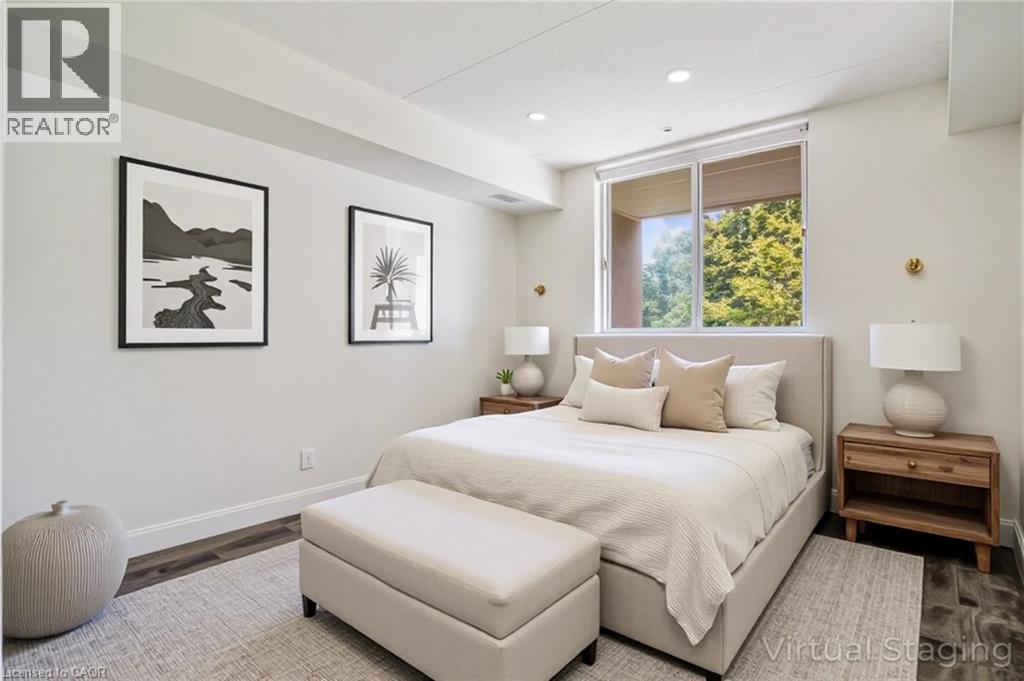 *** NO CONDO FEES FOR SIX MONTHS ... Vendor offering maintenance fees paid up front .*** An excellent opportunity to own in the well-established Walker's Square community, this beautifully maintained 1-bedroom, 1-bath condo offers a lifestyle defined by ease, comfort, and convenience. Sun-filled and thoughtfully laid out, the open-concept design features a generous living area alongside a functional eat-in kitchen with abundant white cabinetry and stainless-steel appliances. The spacious primary bedroom is paired with a full 4-piece bathroom and the added benefit of in-suite laundry for everyday ease. Enjoy your morning coffee or evening wind-down on the private balcony, overlooking mature trees and meticulously maintained grounds that create a peaceful, park-like atmosphere. Residents benefit from a smoke-free, impeccably managed building that delivers a quiet, worry-free living experience, complete with exclusive underground parking and a locker conveniently located on the same level as the suite. Impressive on-site amenities include a fitness centre, party room, car wash station, and a community patio with BBQ area-perfect for entertaining or connecting with neighbours. With shopping, transit, and daily necessities just steps away, plus quick access to the 403, QEW, and GO Station, this is affordable, low-maintenance living in a location that truly delivers. Some photos have been virtually staged. (id:4555)
