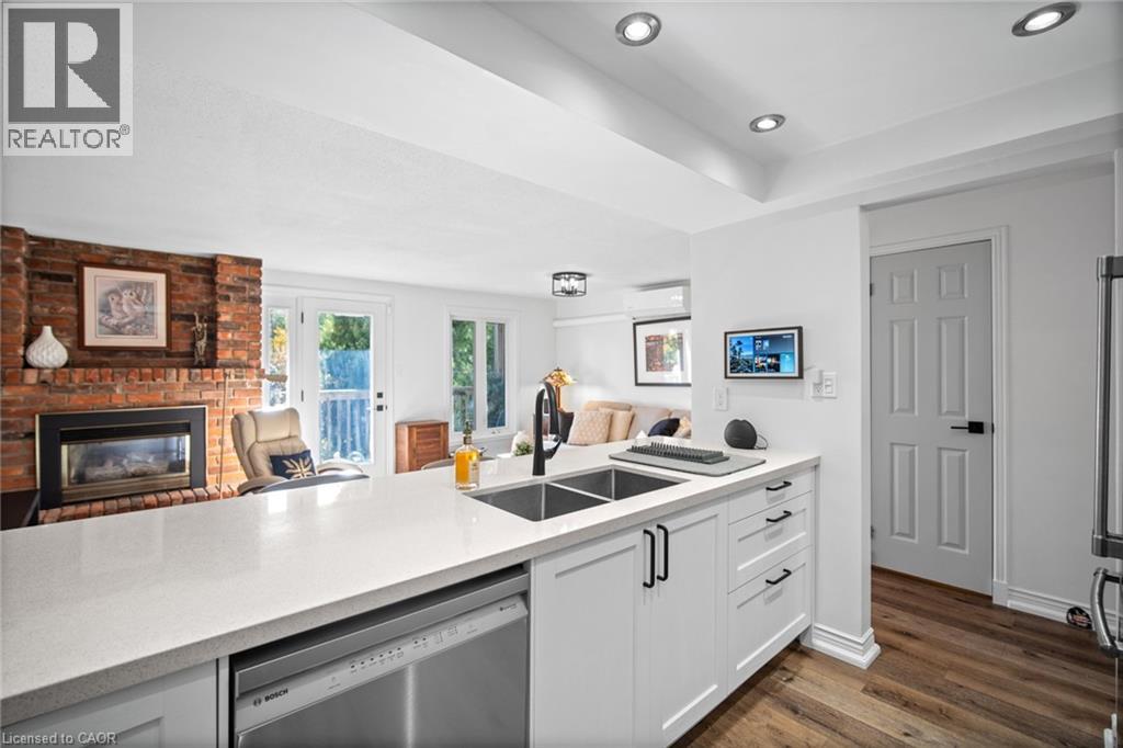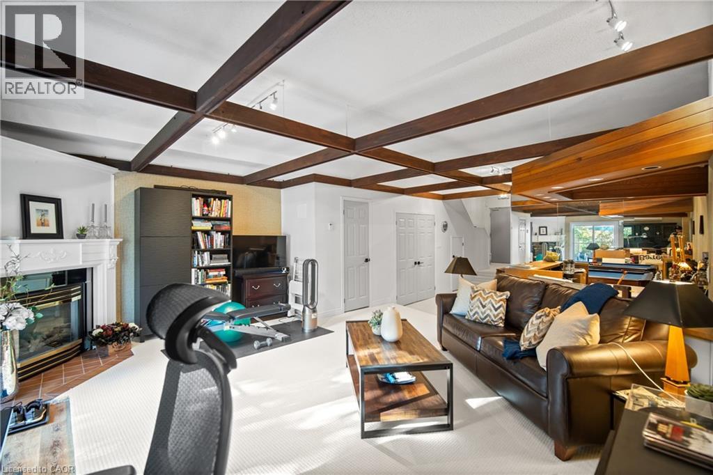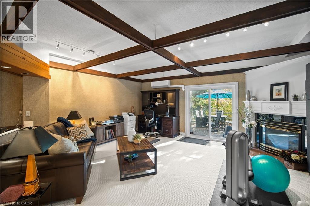 pacious 2-bedroom, 4-bath (3 half) townhouse offers over 1,700 sq. ft. of living space plus a finished walkout lower level—one of only six homes in the complex with two rear balconies and a walkout basement. The main floor features a fully updated white kitchen with quartz counters, stainless steel appliances, stylish backsplash, and a breakfast bar that opens to the family room and balcony with treed views. A combined living/dining area and convenient powder room complete the level. Upstairs you’ll find two generous bedrooms (easily reconfigured back to three). The primary suite has a private balcony overlooking the golf course and a modern ensuite, while the second bedroom includes its own 2-piece bath and a connected office nook. The lower level is designed for entertaining with soaring ceilings, a wet bar, walkout to the patio and gardens, and inside entry to the underground garage with two private parking spaces. Residents of Wellington Green enjoy resort-style amenities including a heated saltwater pool, hot tub, sauna, and beautifully landscaped grounds. Ideally located close to downtown Burlington, shopping, and quick highway access. This property is an ideal fit for downsizers or professionals seeking turnkey, low-maintenance living in a unique and private community. (id:4555)