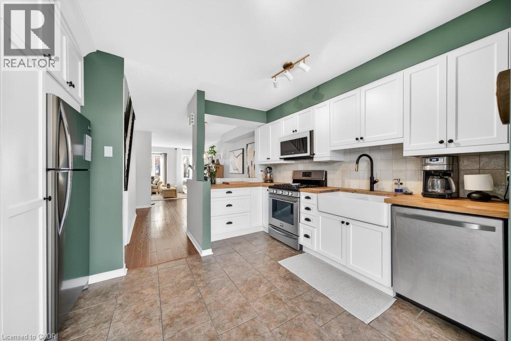 Welcome to The Brownstone's, this bright and well-maintained three-storey townhouse is found in a sought-after downtown location, featuring 2 bedrooms and 1.5 baths. The updated kitchen offers a light, functional space and is perfect for everyday living. With a spacious dining area adjoining the living room this is an ideal area for family living, entertaining or relaxing. The ground level includes an office, closet cubby, two-piece bath and inside entry garage. On the 3rd level you will find 2 spacious bedrooms, renovated main bath and lots of natural light. Enjoy a private backyard backing onto a diversion canal — a beautiful retreat right at home. Close to shops, restaurants, schools, Spencer Smith Park, Lake, Mapleview Mall and all downtown amenities, this home offers the perfect blend of convenience and tranquility. (id:4555)