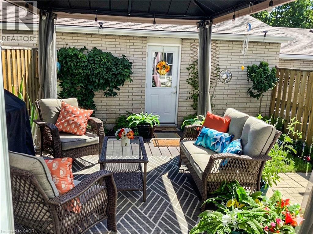 Welcome to Forest Heights - a rarely offered townhome with a private double-car garage, quietly tucked into a serene enclave of architecturally distinctive homes in Burlington's sought-after Brant Hills neighbourhood. Ideal for first-time buyers or empty nesters, this home delivers the perfect balance of low-maintenance living and everyday comfort. Step inside to a sun-filled kitchen featuring gleaming counters, a stainless-steel induction stove (2023) and new stainless-steel dishwasher (2025) - a welcoming space for both daily living and entertaining. The adjacent living room invites cozy evenings by the fireplace, complemented by a stylish custom mantel installed in 2024. The dining room offers a seamless walk-out to a newer composite deck complete with gazebo, lighting, and gas BBQ hookup - perfect for relaxed summer dinners and weekend gatherings. Surrounded by garden space, the fully fenced backyard is ideal for gardeners and outdoor enthusiasts alike and provides direct access to your private double garage. Upstairs, you'll find three generously sized bedrooms and two full bathrooms, including a spacious primary retreat with a recently updated ensuite featuring a new vanity and quartz countertops. The lower level adds even more versatility with a large recreation room, and a thoughtfully designed laundry area and a built-in folding table, plus a sizeable finished storage room. Enjoy resort-style living with access to the indoor pool, or host celebrations in the recently updated party room (2023). This is a home that truly offers comfort, convenience, and community - an exceptional opportunity in one of Burlington's most established neighbourhoods. Condo fees include: windows, doors and roof are included in exterior maintenance, water, cable ,common elements, building insurance, parking, snow removal, lawn maintenance. (id:4555)