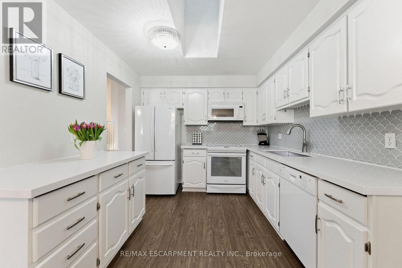 Much sought-after South Burlington location! This immaculate end-unit townhome backing onto a ravine is tucked into a private, mature, tree-lined enclave in the highly desirable Maple neighbourhood, steps to Mapleview Mall, parks, downtown, the lake, GO Transit, and highways. Offering approximately 2,400 sq ft of total living space, this well-maintained home features 3 bedrooms and 3 full bathrooms across a thoughtful multi-level layout. The main floor includes a spacious family room with gas fireplace, walkout to a private ravine-facing deck, a bedroom, and a 3-piece bathroom-perfect for guests or a private retreat. Upstairs, the bright kitchen and dining area with granite countertops, abundant cabinetry, and hardwood flooring are ideal for entertaining. A second family/living room provides flexible living space. The primary suite boasts an oversized walk-in closet, 3-piece ensuite, and balcony with serene views. Low condo fees cover exterior maintenance, lawn care, and snow removal. A rare opportunity to enjoy privacy, scenic ravine views, and low-maintenance living in one of Burlington's most desirable locations. (id:4555)