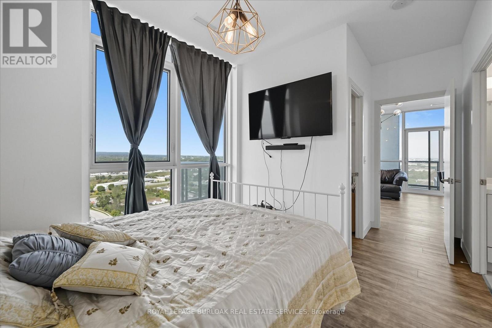 TURN KEY FURNISHED CONDO with Bed, desk, chair, 2 bar stools, 2 TV's, sofa, linens, cooking utensils, dishes, cups, cutlery, etc. Fabulous sub penthouse corner condo with panoramic views of the city and escarpment from two separate wrap around balconies. Approximate 775 square feet with 2 bedrooms, 2 baths, floor to ceiling windows allowing an abundance of natural light. Spacious open concept white kitchen with quartz counters built-in cooktop; built-in oven, stainless steal frige, bi-dishwasher, center island breakfast bar. Primary bedroom with walk in closet, second bedroom includes desk and has double closet. Steps to Go Train, shopping, close to downtown, schools, park, and easy highway access. 1 underground parking. Possession: Immediate/TBA AMENITIES: indoor pool, hot tub, outdoor terrace with BBQ's; indoor basketball court, fitness center, party room, games room, kids room, sky lounge. (id:4555)
