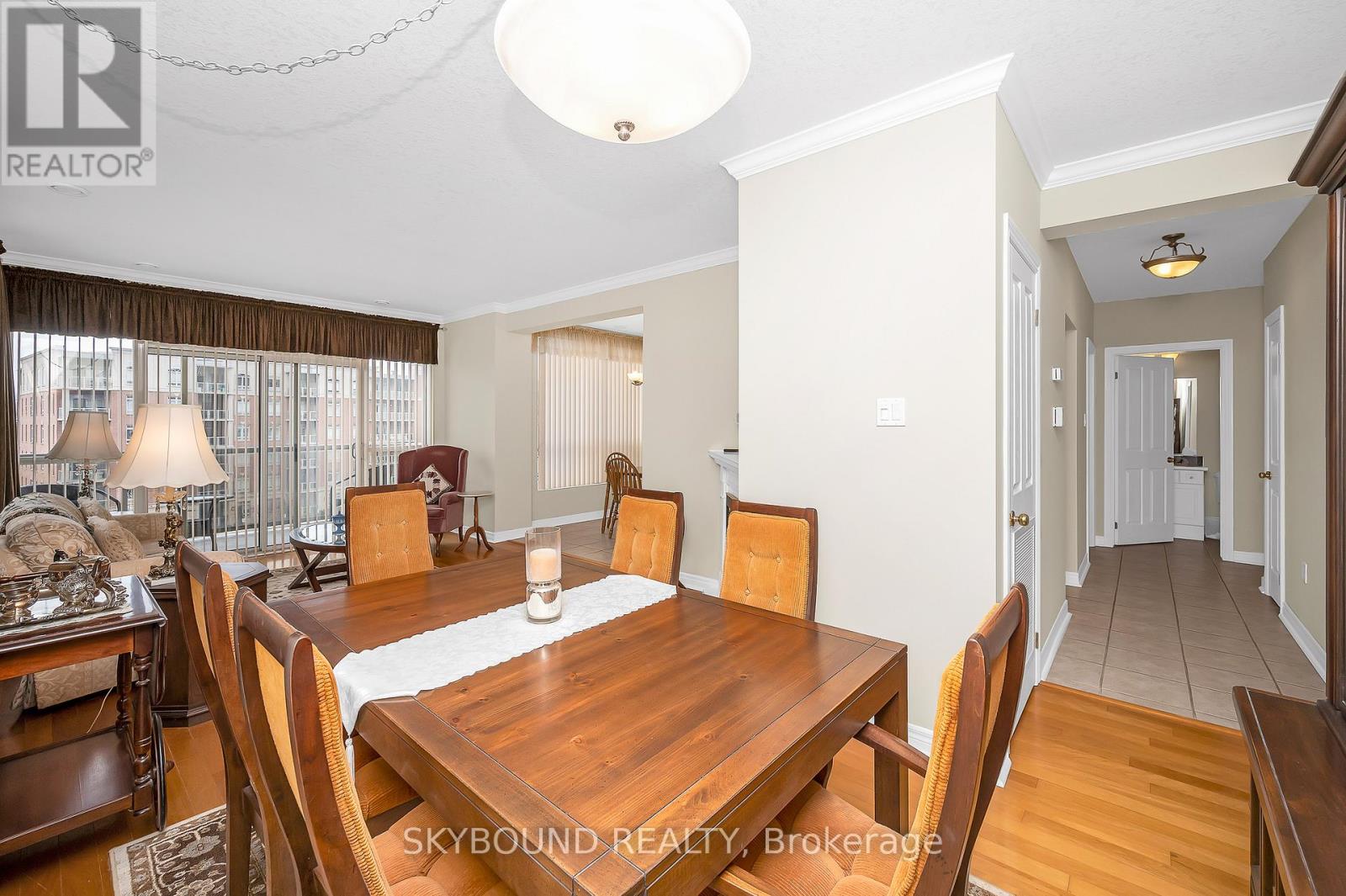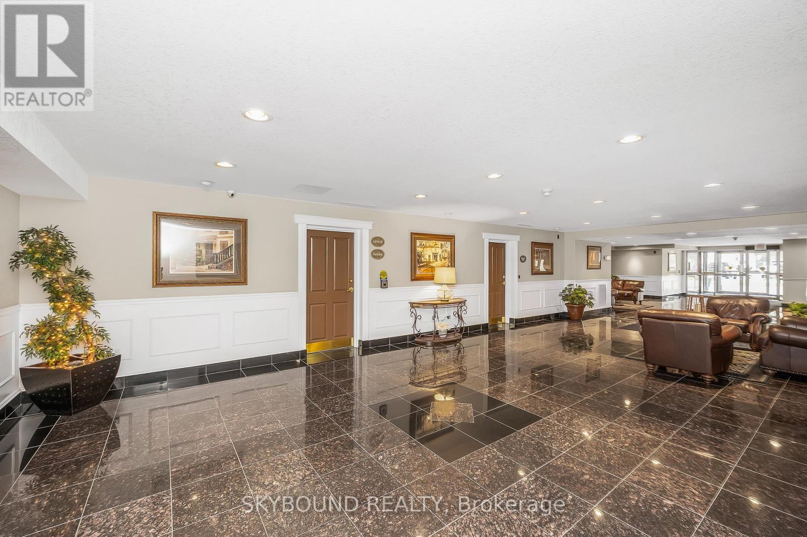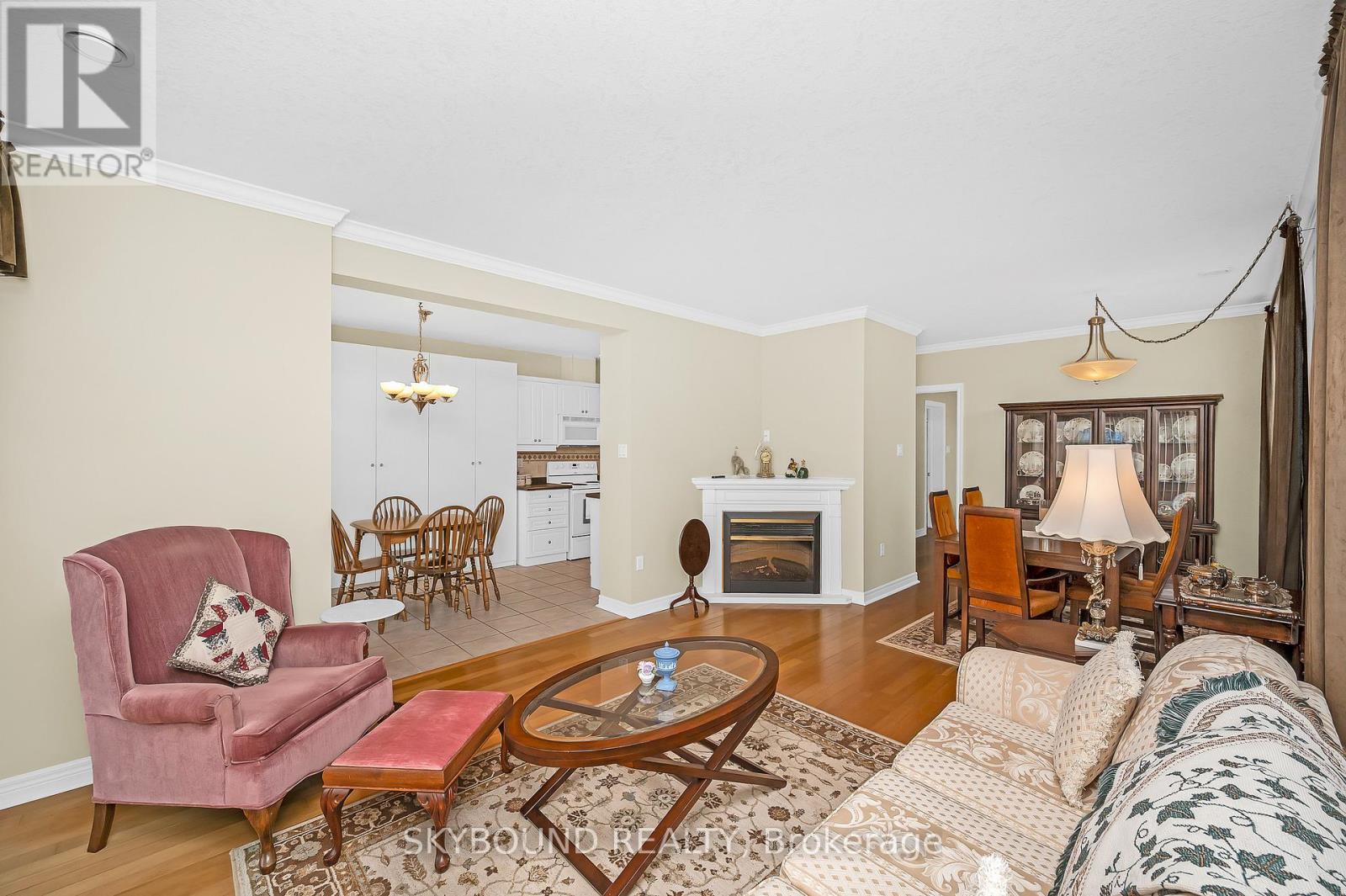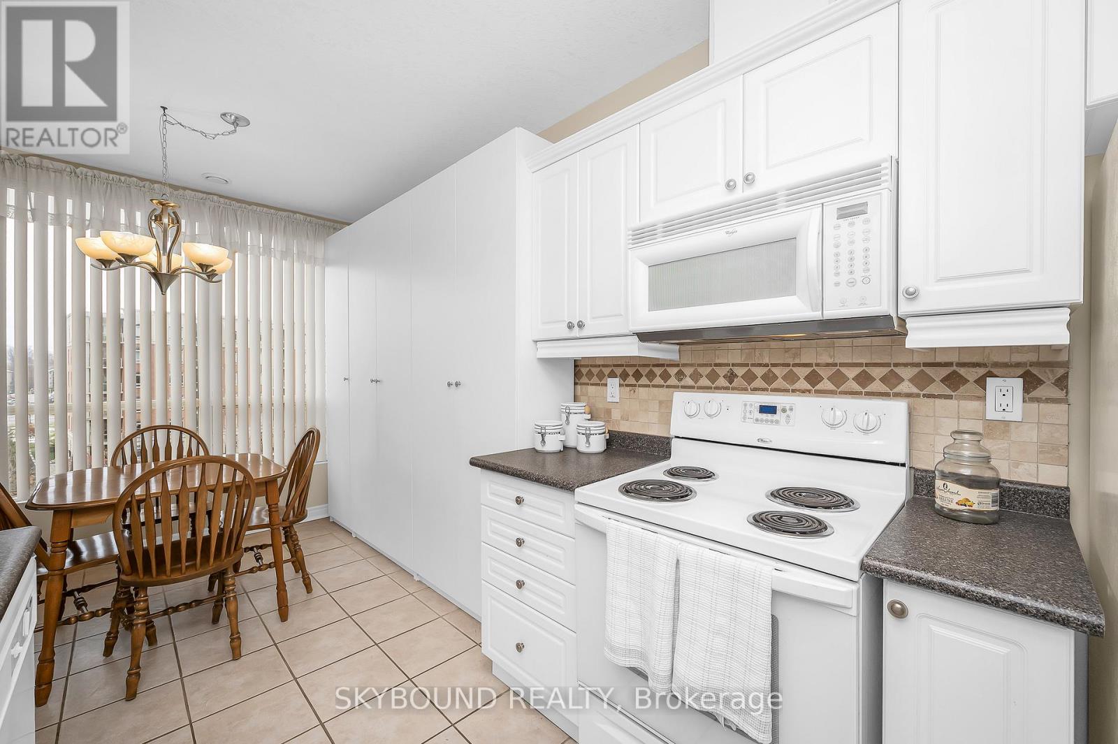 Welcome to the Highly Sought-After Millcroft Place! This beautifully maintained 1,140 sq. ft. 2-bedroom, 2-bathroom suite offers comfort, space, and stunning views from the 5th floor. Step into a bright and airy open-concept living and dining area featuring an elegant electric fireplace and large sun-filled windows throughout. A sliding glass door leads to a generous wrap-around balcony where you can relax and take in breathtaking escarpment views. The eat-in kitchen provides ample cabinetry and workspace, perfect for everyday living or entertaining. The spacious primary bedroom includes a walk-in closet and a private ensuite, while the second bedroom is ideal for guests, a home office, or additional family space. Enjoy the convenience of an in-suite laundry room and excellent storage options. This exceptionally well-kept building offers a variety of amenities and is just steps from shopping, restaurants, parks, the library, community center, and more - everything you need right at your doorstep. Includes 2 tandem parking spaces and a storage locker. A perfect blend of location, lifestyle, and low-maintenance living. (id:4555)