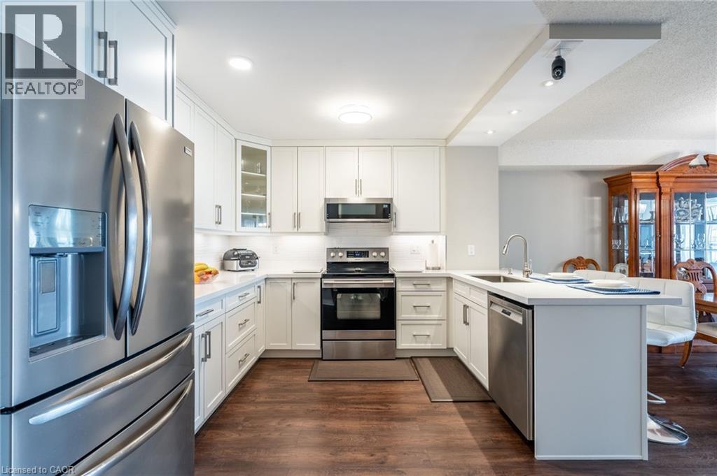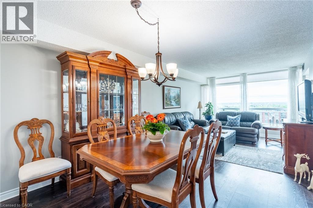 Welcome to an exceptional opportunity to own a beautifully appointed two-bedroom + den, two-bathroom suite in one of Burlington’s most prestigious addresses. Set in Burlington’s vibrant south core, residents enjoy unparalleled access to the lakefront, scenic parks, fine dining, boutique shopping and top-tier healthcare at nearby Joseph Brant Hospital – all just minutes from your door. Spanning approximately 1,130 square feet, this thoughtfully designed residence offers refined living with a seamless blend of comfort and sophistication. The spacious primary suite features a private four-piece ensuite, while the expansive open-concept living and dining areas provide an ideal setting for entertaining. The stylish eat-in kitchen is enhanced by granite countertops and a charming dinette – ideal for enjoying your morning coffee with panoramic views. Freshly painted and finished with engineered wood flooring throughout, the suite is bathed in natural light and showcases breathtaking views of the Bay and the Escarpment, creating a truly exceptional, elevated living experience. The Grande Regency is an meticulously maintained, smoke-free and pet-free building known for its discreet luxury and first-class amenities, including: 24-hour concierge and security, outdoor pool and sun deck, tennis and racquetball courts, state-of-the-art fitness Centre, sauna and private library, rooftop terrace with BBQ lounge and stylish party room and well-appointed guest suites. All-inclusive condo fees cover utilities, high-speed internet, cable and one underground parking space – delivering effortless convenience in a building celebrated for its exceptional service and lifestyle. Don’t be TOO LATE*! *REG TM. RSA. (id:4555)