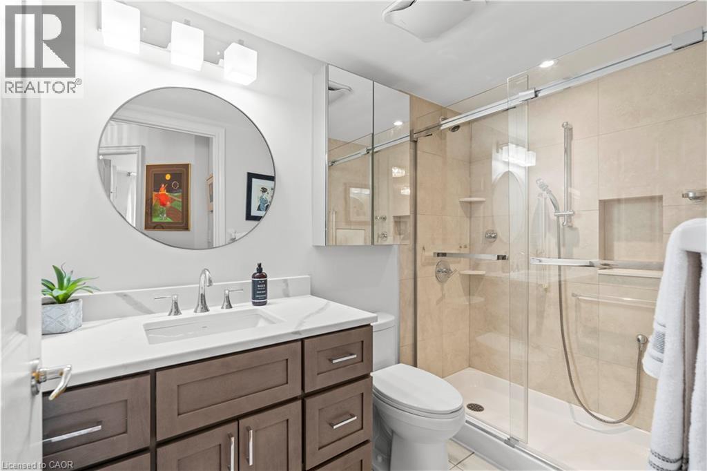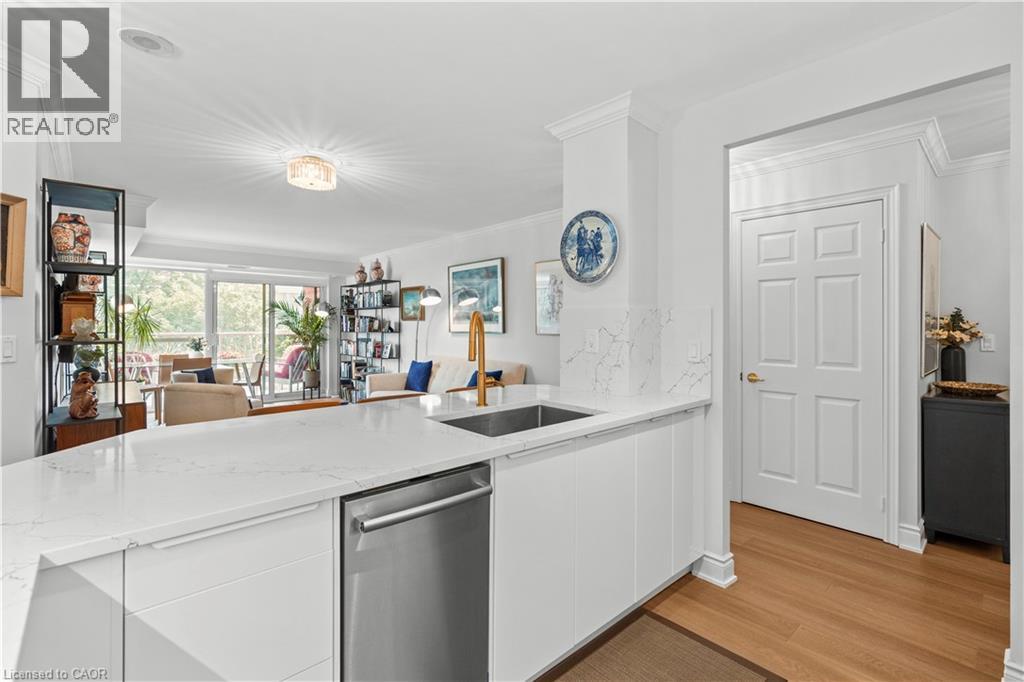 Welcome to refined condo living in the heart of downtown Burlington. This spacious 2-bedroom, 2-bathroom suite offers over 1,000 sq. ft. of beautifully updated living space, ideal for downsizers seeking comfort, convenience, and a lock-and-leave lifestyle. Enjoy a newly renovated kitchen and updated flooring in a bright, open-concept layout perfect for both entertaining and everyday living. Literally steps away from the waterfront, this condo is located directly across from Joseph Brant Hospital and just minutes to downtown Burlington’s shops, restaurants, cafes, grocery stores, and the waterfront, with highway access seconds away for effortless commuting. This well-managed building stands out with premium inclusions, including concierge and security on duty daily from 8:00 AM to 10:00 PM, as well as high-speed internet and Bell cable included in the maintenance fees at no extra cost. Residents also enjoy an indoor pool, hot tub, sauna gym, and entertainment/party room, along with one underground parking space and a locker. An exceptional opportunity to downsize without compromise in one of Burlington’s most sought-after locations. (id:4555)