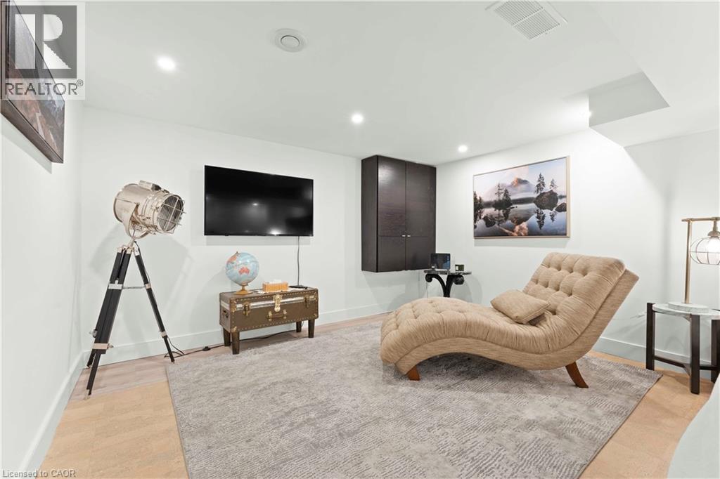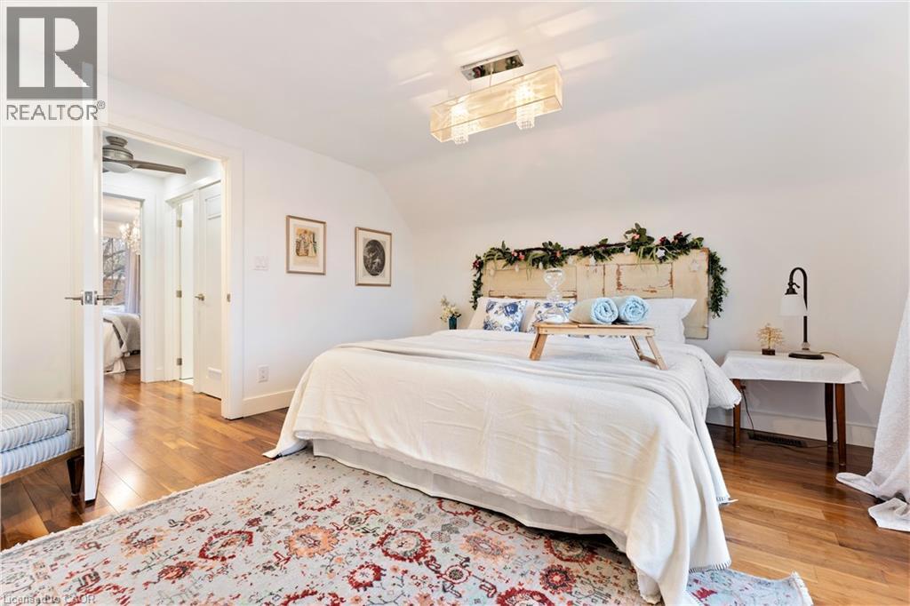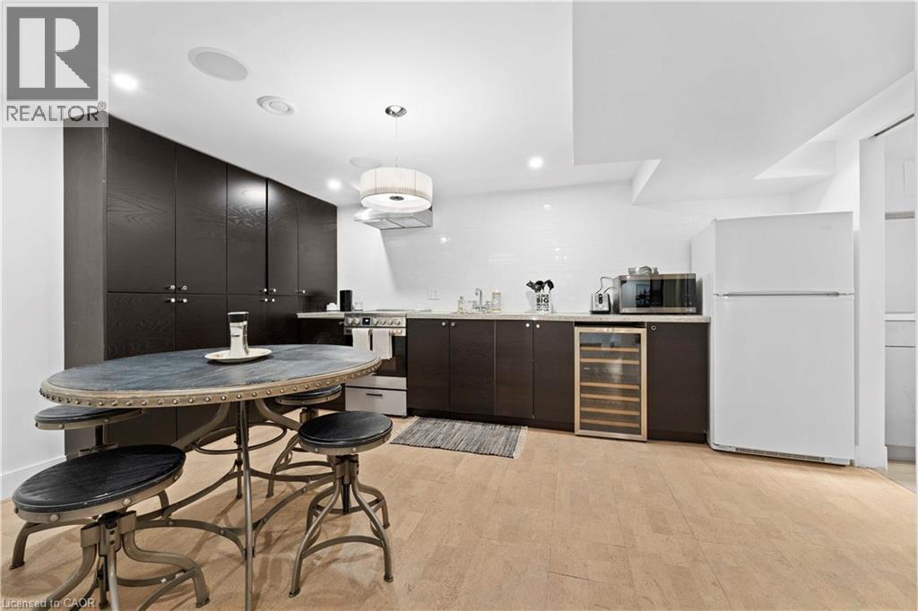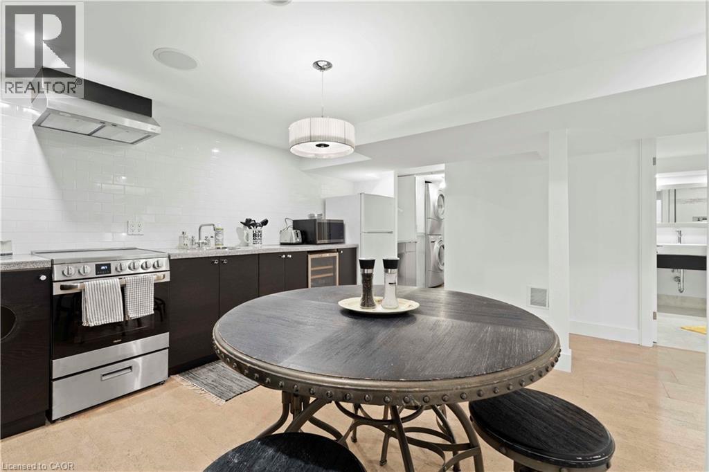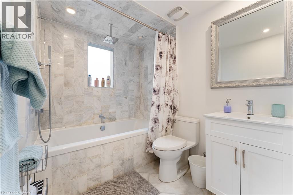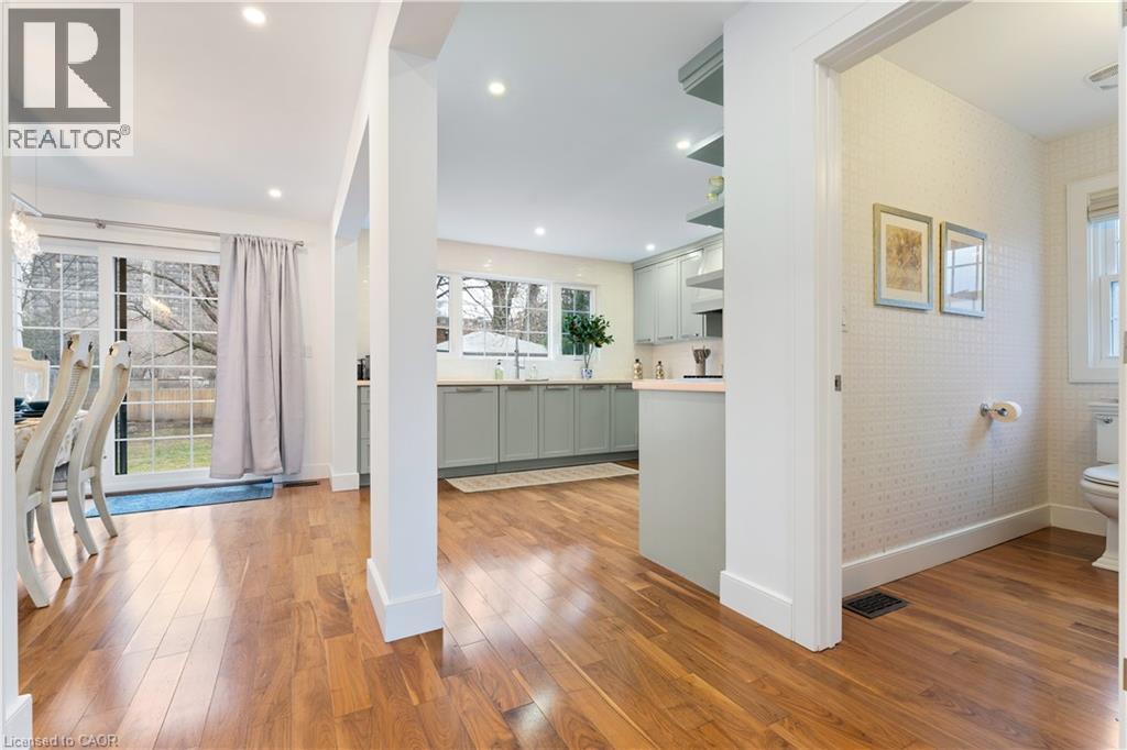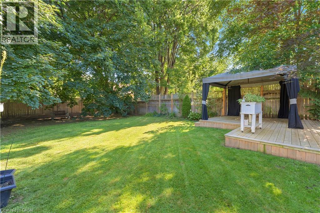 Walk to downtown and the lake from this beautifully renovated home on a quiet cul-de-sac. Set on an oversized 150-ft deep private lot, the property features mature perennial gardens and an interlock walkway leading to the front entrance. The open-concept main floor offers large windows, a gas fireplace, and a custom kitchen equipped with premium Viking appliances, including a gas range, dual-door refrigerator, panelled dishwasher, and built-in microwave. Patio doors off the dining area open to a private backyard with a custom wood deck and generous lawn surrounded by mature trees. Upstairs are two spacious bedrooms and a fully renovated 4-piece bathroom. The finished basement includes a separate entrance, kitchen space, open layout, and laundry, offering excellent flexibility. Ideally located within walking distance to Spencer Smith Park and Brant Street's shops and restaurants, with quick access to the QEW, Mapleview Mall, and daily amenities. (id:4555)