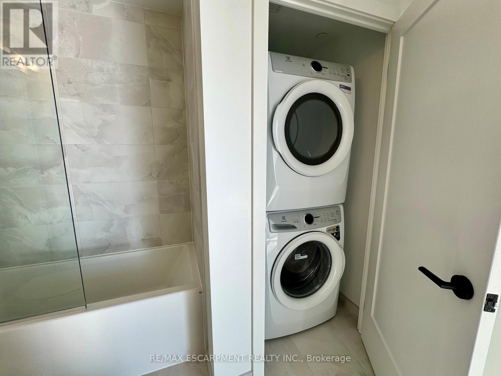 Brand New Downtown Burlington Condo with Lake Views! Welcome to Martha James Condos by Mattamy. This stunning brand new 2 bedroom, 2 bath suite provides modern living in the heart of downtown Burlington with beautiful views of downtown and Lake Ontario. Featuring 789 sq. ft. of thoughtfully designed interior space plus a 78 sq. ft. balcony, this bright unit boasts upgraded fixtures and appliances throughout. The open-concept kitchen and living area is perfect for everyday living and entertaining, with direct access to the balcony. Enjoy the convenience of in-suite laundry, a storage locker, and 1 underground parking space (#531). Residents can enjoy several common spaces including a sate of the art exercise room & yoga studio, private lounge/ party room and pet washing station. (Pet restrictions apply). Ideally located steps to restaurants, shopping, parks, transit, and schools, this is urban living at its best. A fantastic opportunity to lease a brand new condo in one of Burlington's most sought-after developments. (id:4555)
