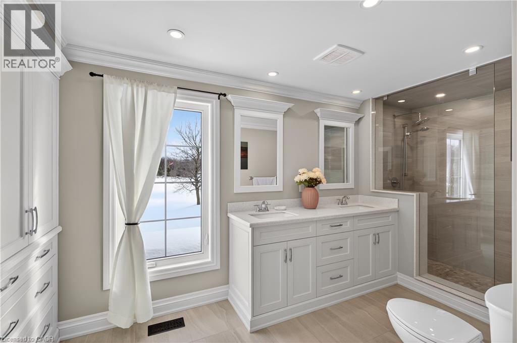 Imagine trading the soundtrack of the City for something that's far more luxurious, silence!! No honking, no rushing just space to breathe & mornings that actually belong to you. At 2264 Britannia Road, that shift isn't theoretical - it's instant. A long, private drive leads you past a tranquil pond and into this exquisite North Burlington Estate situated on 5 pristine acres where the true measure of space is found in freedom, privacy, and possibility. Inside this beautifully finished residence, every room opens to nature's own artwork -- rolling fields & evergreen groves. A warm & welcoming home that balances the best of both worlds, offering formal rooms for special occasions & informal spaces where life naturally unfolds. The primary suite blends comfort & function with your own balcony, a relaxed sitting area & a 4 piece ensuite showcasing double sinks & an oversized shower. With 2600 sq ft, 4 bedrooms & 2.5 bathrooms, the home balances elegance with ease. And for the dreamers, doers & collectors the 2400 square foot in-floor heated outbuilding is pure possibility -- studio, workshop, hobby space. This is where your someday becomes real. This isn't just a home, it's a lifestyle & once you experience it you'll never want to leave. (id:4555)