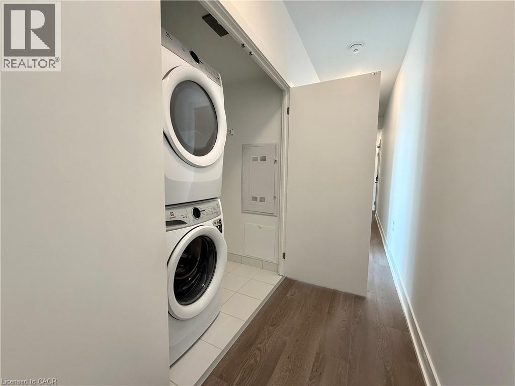 Location, location, location. Be the first to occupy this state of the art unit in a brand new state of the art building! Prime downtown Burlington local. Walk to shopping, restaurants, lakefront park, pier, art gallery, library, hospital, preforming arts centre, walking trails and transit. This BRAND NEW 2 bedroom, 2 bath suite offers sunlit rooms in new luxurious building with plenty of amenities. In suite laundry facilities. Sleek kitchen with quartz counters and centre island. Balcony with southern exposure. Window coverings included. Fob locking system on doors. Virtual valet at front lobby with concierge/security services. Amenities include, pet wash, roofs top terrace with BBQ's, loft lounge, exercise room with an array of equipment, yoga room. 1 underground parking space with EV charger, 1 storage locker. (id:4555)