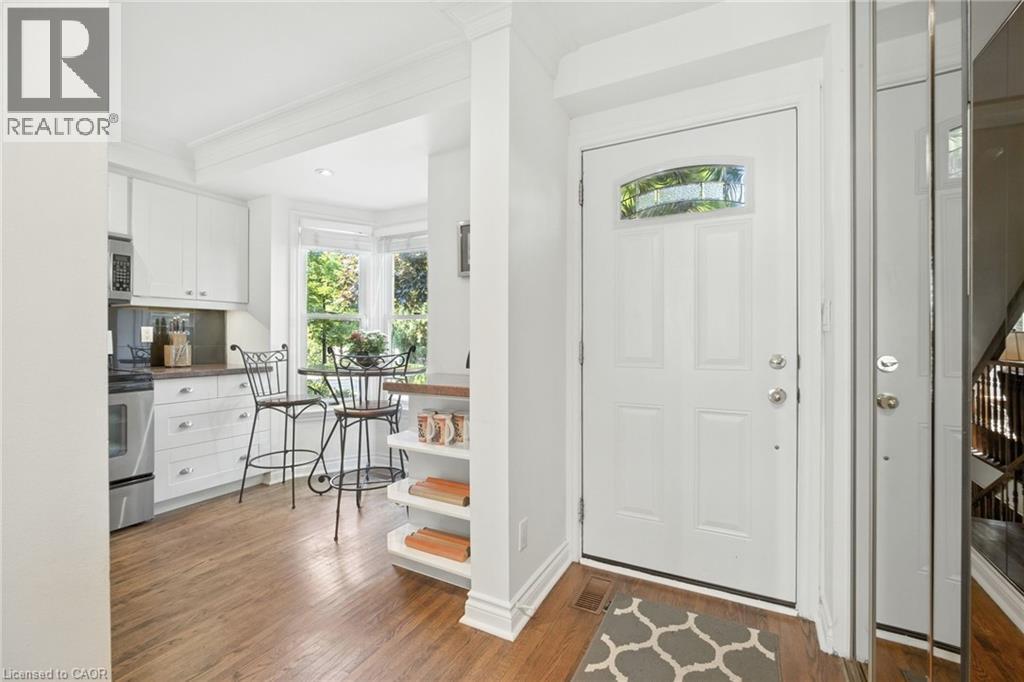 Exquisite Georgian-style end-unit townhouse offered as a turn-key furnished rental investment or luxury personal retreat in the heart of downtown Burlington. Located on a quiet street just one block from Lake Ontario, Spencer Smith Park, the Performing Arts Centre, boutique shops & restaurants, this stylish 2-bedroom, 2-bath home combines historic charm with modern upgrades. Featuring soaring vaulted ceilings, remote skylights, a gas fireplace, rich hardwoods & crown mouldings. Gourmet kitchen w/ granite counters, breakfast bar, pot lights & stainless appliances. Loft-style primary w/ ensuite tub & shower. Flexible guest BR/den. Private courtyard patio w/ BBQ, energy-efficient laundry, plush furnishings & linens — truly all-inclusive. Off-road parking. Quick HWY & GO access to Toronto, Niagara & Pearson. Ideal for long-term executive stays, relocations or worry-free ownership. Exceptional opportunity to own a fully outfitted, income-producing furnished rental in Burlington’s vibrant lakeside core. (id:4555)