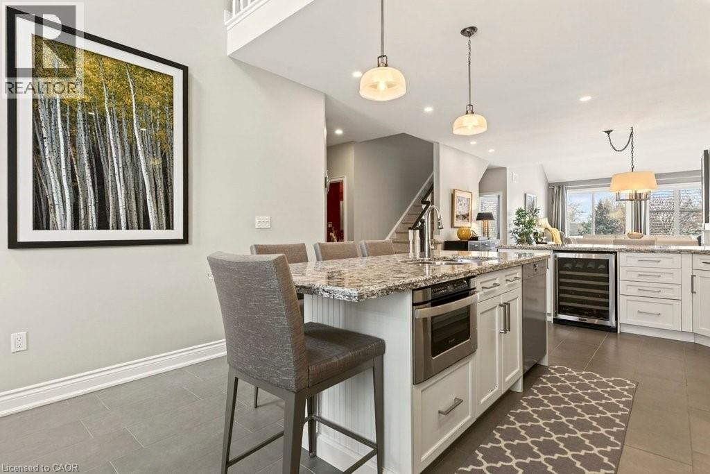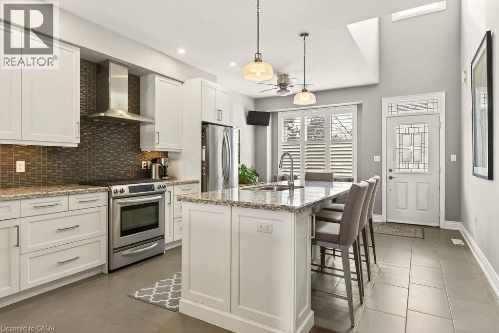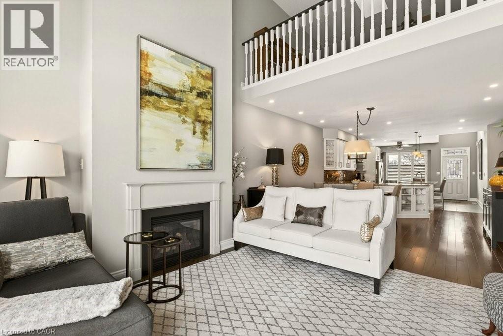 Absolutely stunning executive bungaloft in sought-after complex backing on to the 10th fairway of Millcroft Golf Club! 2,281 sq.ft. of beautifully updated open concept living space filled with natural light. Updated eat-in kitchen with stainless steel appliances (including gas stove and wine fridge), island, quartz countertops and glass subway tile backsplash. Spacious living/dining with vaulted ceiling, gas fireplace and walkout to private deck and patio with gas BBQ hookup and stunning golf course setting. Main level primary bedroom with a gorgeous spa-inspired 4-piece ensuite and walk-in closet. Upper level features a large loft/family room and a second bedroom with access to a 4-piece bathroom. Additional features and high-end finishes include 9' ceilings on the main level, hardwood floors, California shutters, pot lighting, skylights and an updated furnace (2024)! Double drive and double garage with inside entry to main level laundry/mudroom. 2 bedrooms and 2.5 bathrooms. (id:4555)