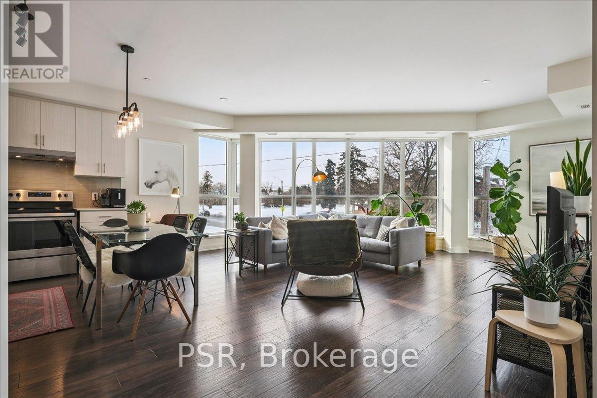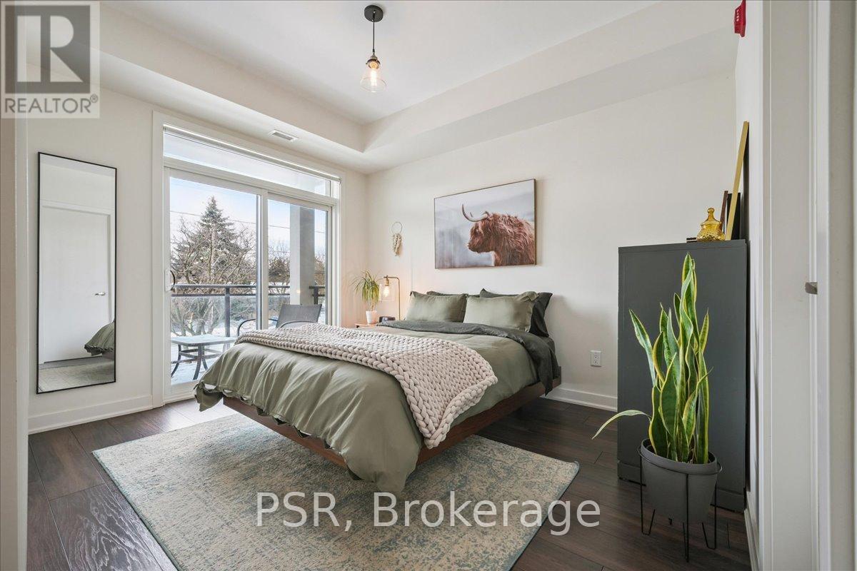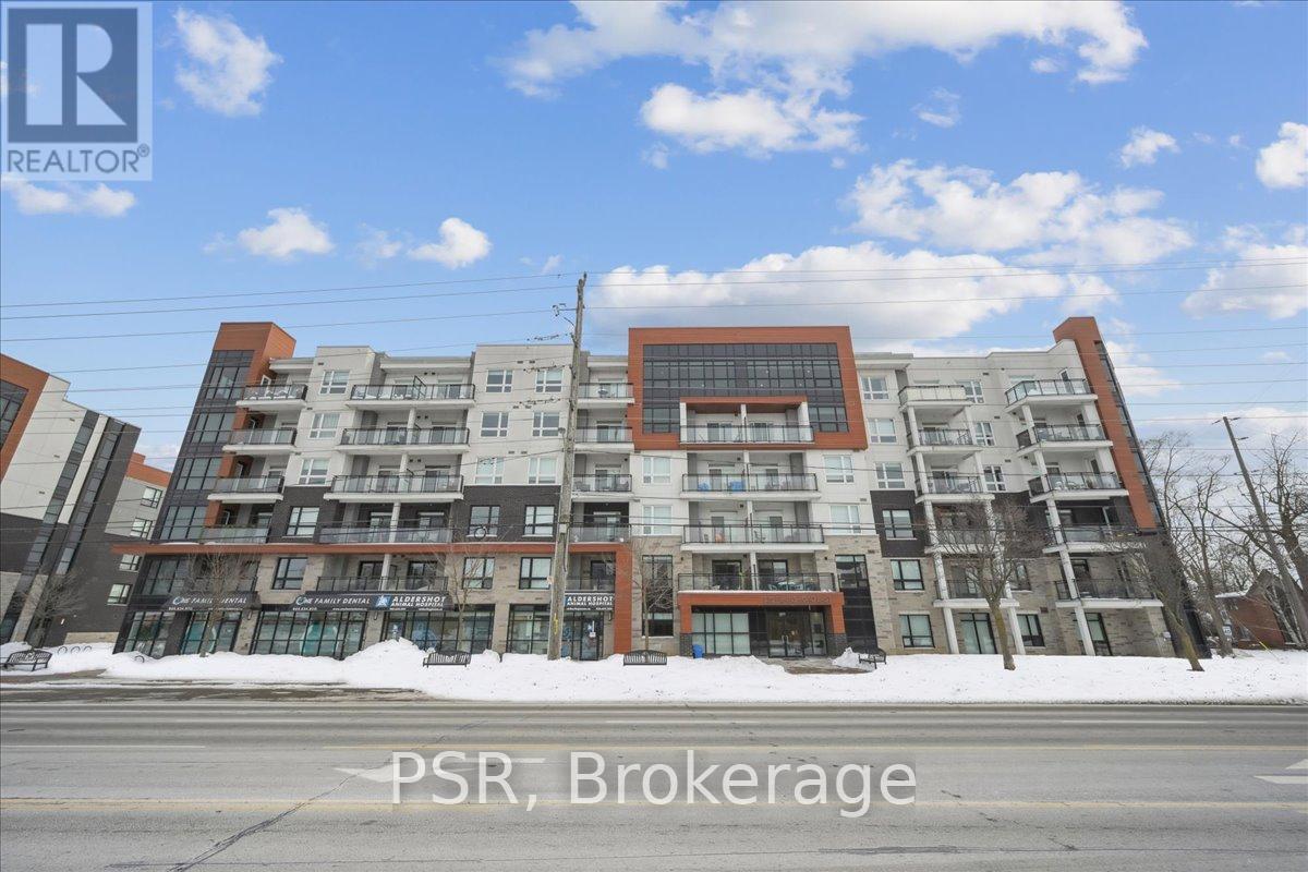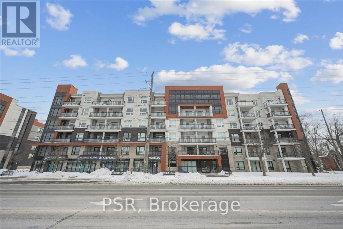 Floor-to-ceiling, wall-to-wall windows fill this stunning corner unit with natural light, creating a bright and airy space that truly sets it apart in this boutique low-rise building. The open layout is enhanced by 9-ft ceilings, wide plank hand-scraped flooring, and a welcoming foyer with plenty of storage. The sleek kitchen boasts quartz countertops, a glass backsplash, and modern appliances, while the spa-like bathroom features imported porcelain tile and ensuite privilege. Enjoy high-end roller blinds throughout, including blackout in the bedroom, plus walkouts to the spacious balcony from both the living room and bedroom. Built by Rosehaven Homes in 2020, this community offers exceptional amenities: a fitness and yoga studio, business centre, party room, rooftop terrace with BBQs, gardens, and fire pit, plus bike storage, visitor parking, and a dedicated dog area. The location is unbeatable just a short walk to Aldershot GO, shops, cafes, LaSalle Park, and the RBG, with quick highway access to the 403, QEW, and 407. (id:4555)