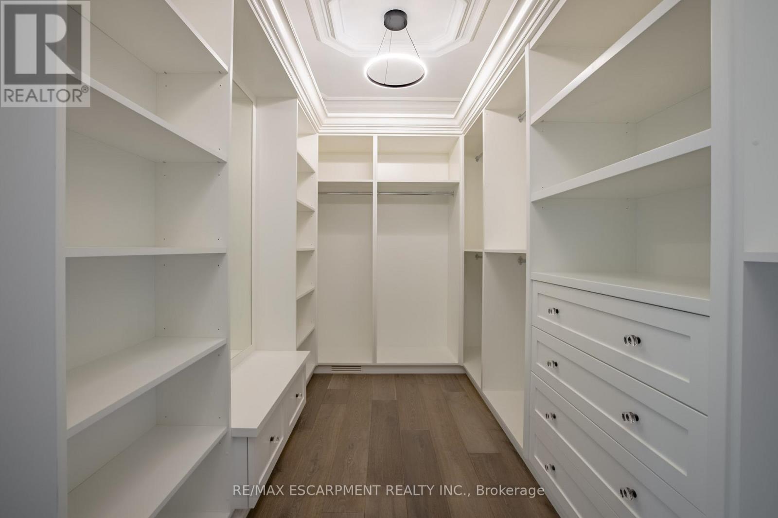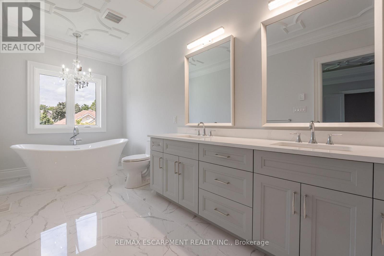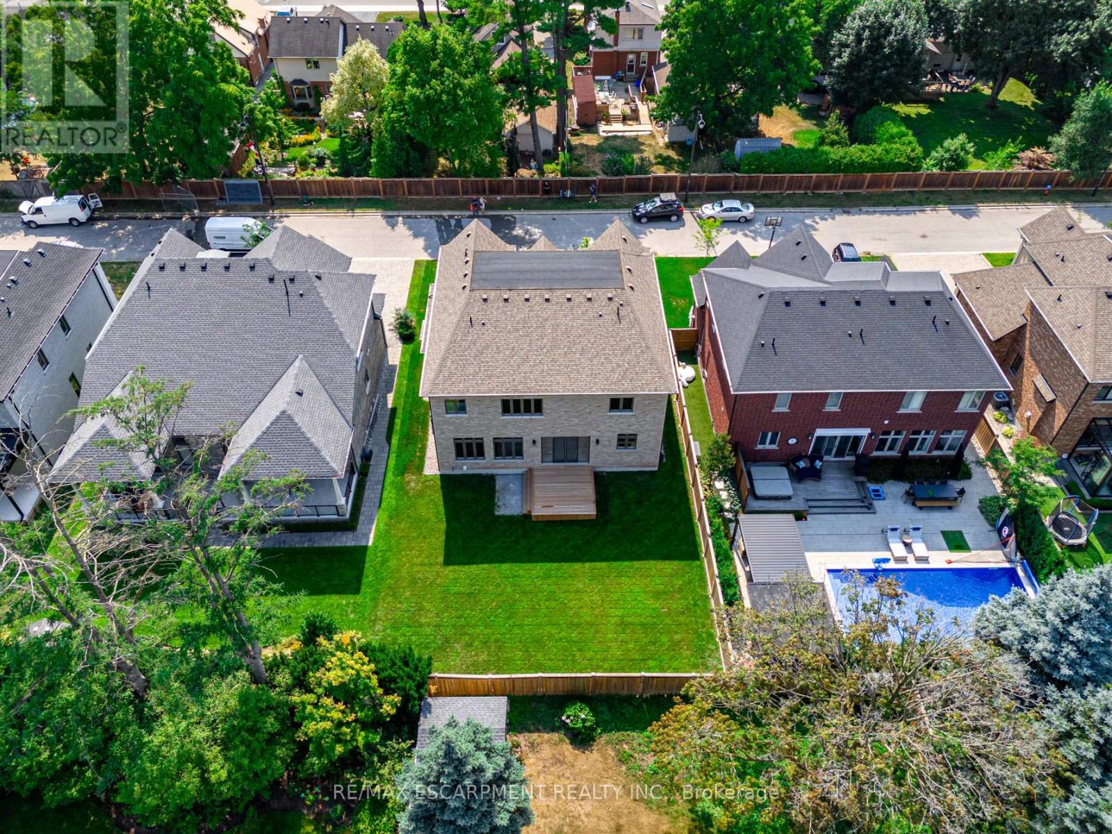 Quality and luxury in this exquisite 2025 4-bed (all with ensuites), 6 bath custom build in an exclusive pocket in south Aldershot, steps to the lake, Lasalle Park, and the Burlington Golf and Country Club! Enjoy a premium street position on a quiet cul-de-sac offering 4 spacious bedrooms, each with its own ensuite.Over 5100 sqft of luxuriously finished floor space with every convenience for the busy family. Impressive foyer with beautiful, polished porcelain inlay, white oak hardwoods, soaring ceiling height to the second floor and walk-in, lit closet with custom organisation.Sun-filled main floor home office for live/work arrangements and a convenient oversized powder room.Dine with large groups of friends and family in your sophisticated, dedicated dining room with custom tray ceiling, extra-large windows and mosaic white oak hardwoods.Wow to this kitchen! If you love to cook, you will be blown away with both function and aesthetics of this masterpiece.Premium lit Barzotti cabinetry in a neutral palette with premium JennAir monogram series appliances throughout, including double oven, 6 burner gas range, lockable wine fridge, premium quartz surfaces, heated flooring and extra-large walnut-stained island to match the custom walnut range hood.Everyone will enjoy the privacy of their own ensuite, connected to extra-large bedrooms adorned with beautiful, imported tile, custom w/i closets, designer lighting, and elegant decorative plaster ceilings.Breathtaking primary ensuite shows off imported Italian Calcutta polished porcelain, freestanding soaker tub, Barzotti double sink vanity, heated flooring and glass shower with double rain heads.Entertainers dream in the lower level, complete with a dedicated glass enclosed gym space, sauna with integrated lighting and sound system, kitchen servery area and home theatre for movie nights!Nearby top-rated schools, minutes to DT & GO station.Welcome to your BRAND-NEW impeccable dream home! Luxury Certified. (id:4555)