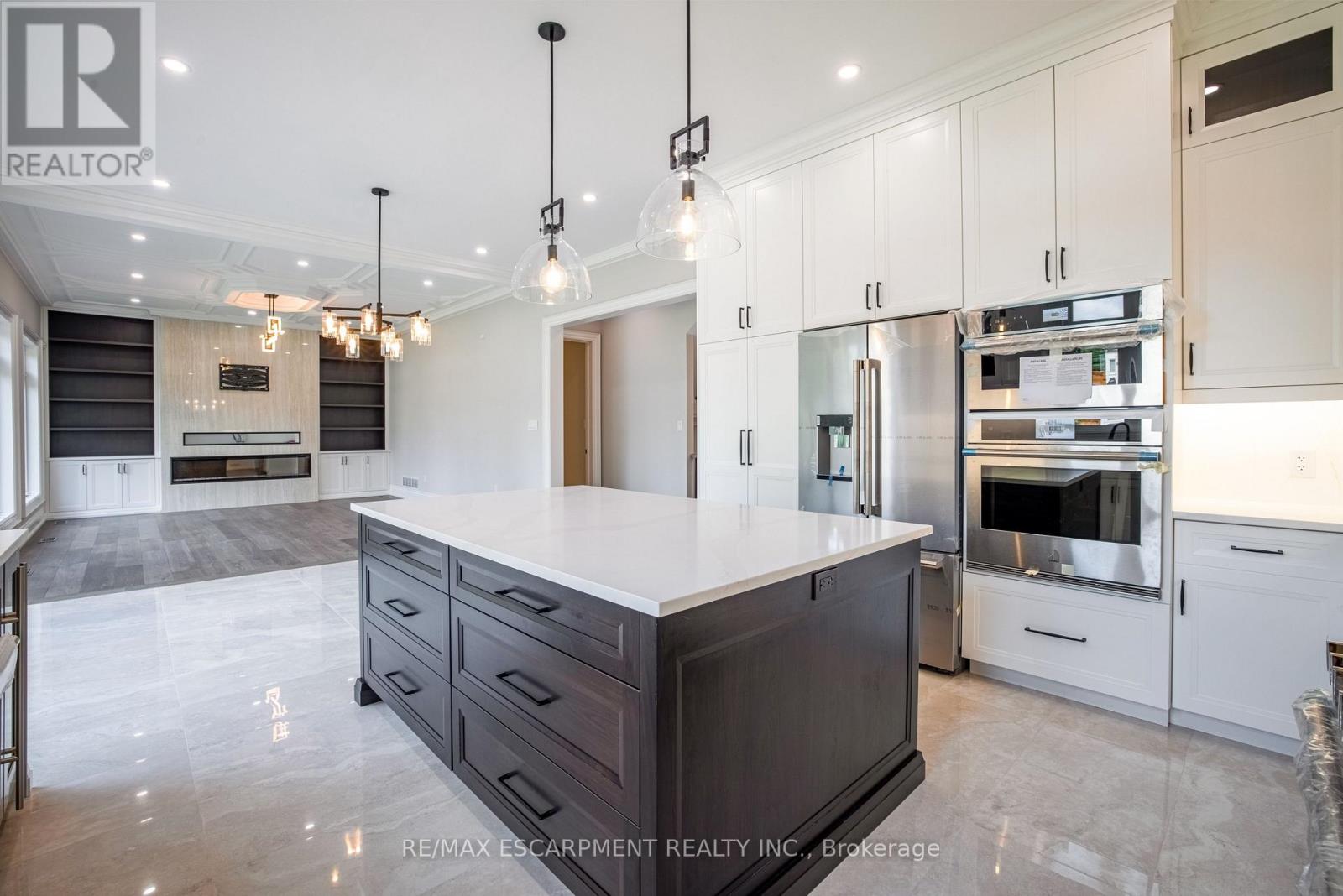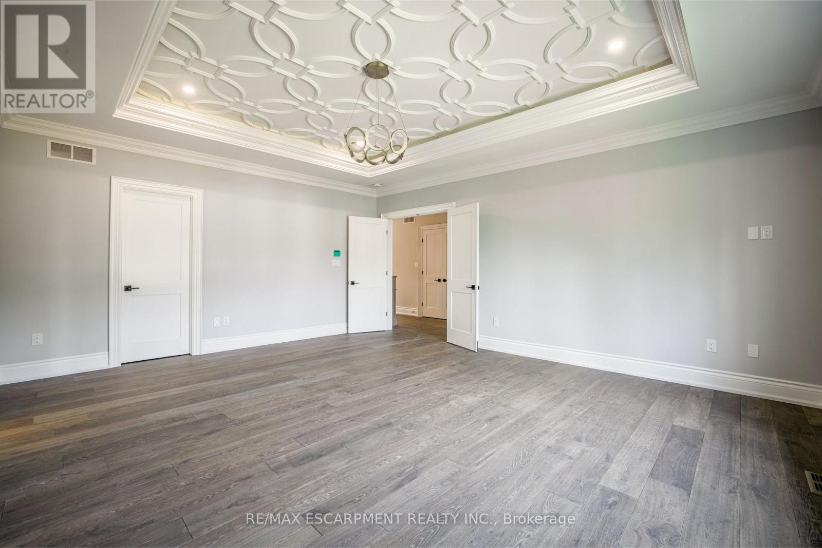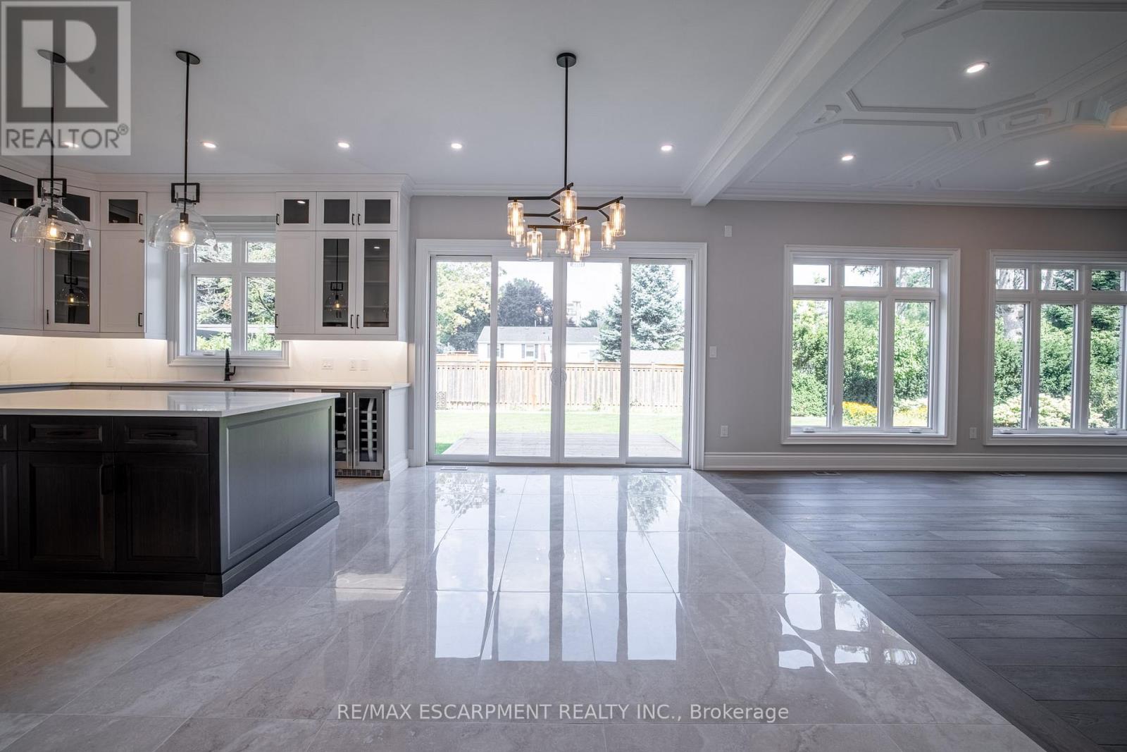 Quality and luxury in this exquisite 2025 4-bed (all with ensuites), 6 bath custom build in an exclusive pocket in south Aldershot, steps to the lake, Lasalle Park, and the Burlington Golf and Country Club! Enjoy a premium street position on a quiet cul-de-sac offering 4 spacious bedrooms, each with its own ensuite.Over 5100 sqft of luxuriously finished floor space with every convenience for the busy family. Impressive foyer with beautiful, polished porcelain inlay, white oak hardwoods, soaring ceiling height to the second floor and walk-in, lit closet with custom organisation.Sun-filled main floor home office for live/work arrangements and a convenient oversized powder room.Dine with large groups of friends and family in your sophisticated, dedicated dining room with custom tray ceiling, extra-large windows and mosaic white oak hardwoods.Wow to this kitchen! If you love to cook, you will be blown away with both function and aesthetics of this masterpiece.Premium lit Barzotti cabinetry in a neutral palette with premium JennAir monogram series appliances throughout, including double oven, 6 burner gas range, lockable wine fridge, premium quartz surfaces, heated flooring and extra-large walnut-stained island to match the custom walnut range hood.Everyone will enjoy the privacy of their own ensuite, connected to extra-large bedrooms adorned with beautiful, imported tile, custom w/i closets, designer lighting, and elegant decorative plaster ceilings.Breathtaking primary ensuite shows off imported Italian Calcutta polished porcelain, freestanding soaker tub, Barzotti double sink vanity, heated flooring and glass shower with double rain heads.Entertainers dream in the lower level, complete with a dedicated glass enclosed gym space, sauna with integrated lighting and sound system, kitchen servery area and home theatre for movie nights!Nearby top-rated schools, minutes to DT & GO station.Welcome to your BRAND-NEW impeccable dream home! Luxury Certified. (id:4555)