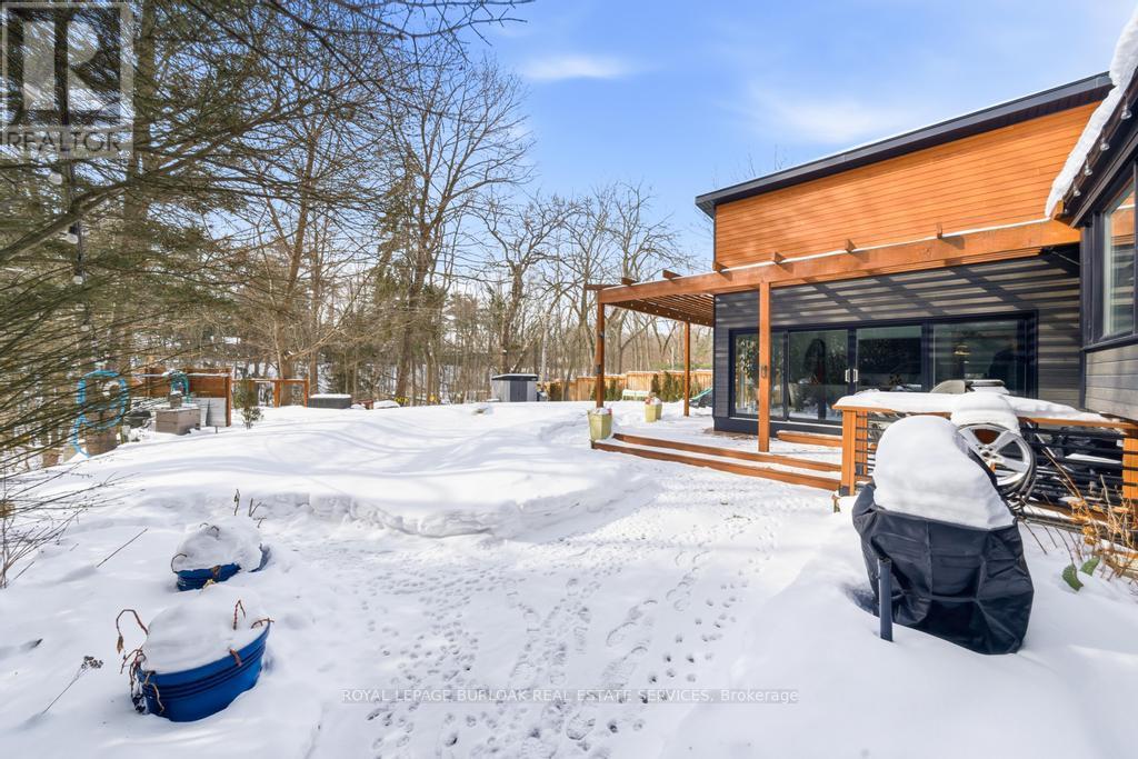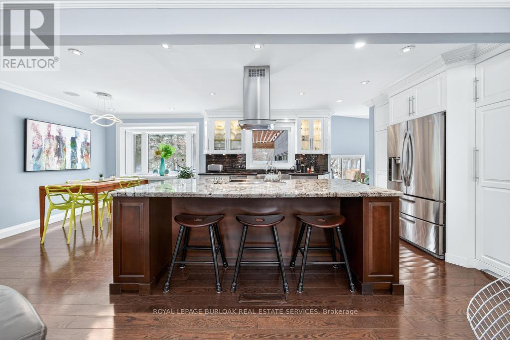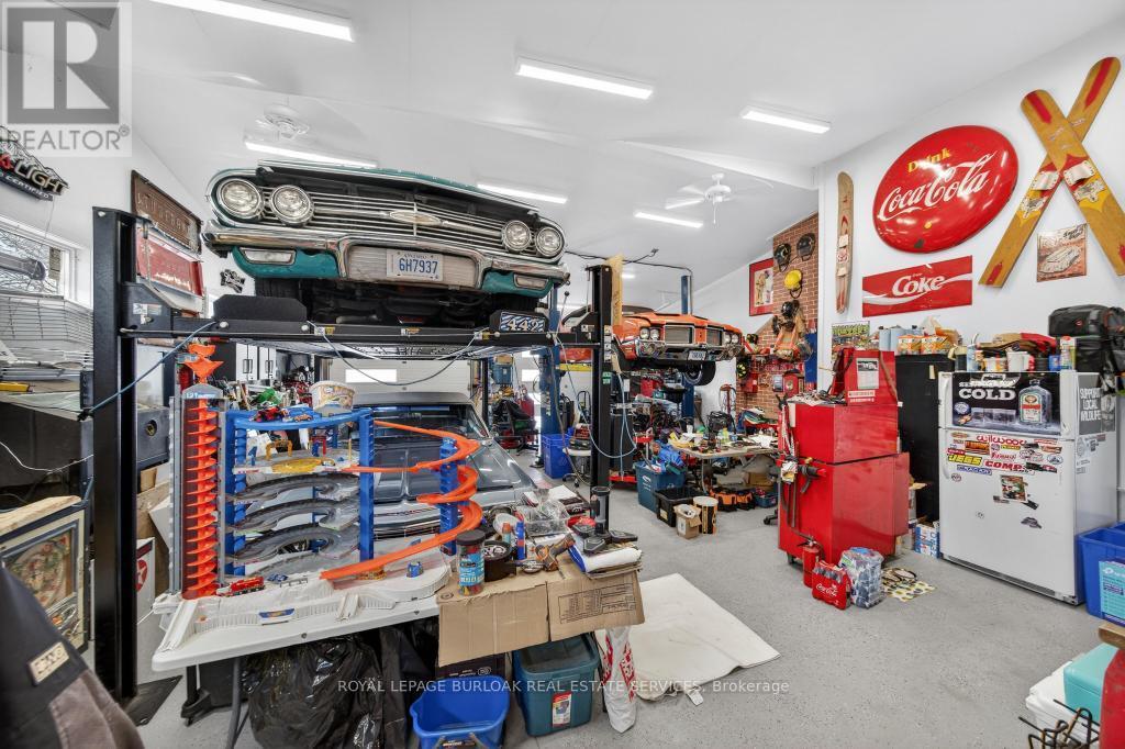 Rare offering in coveted Shoreacres, South Burlington. This beautifully renovated bungalow backs onto a ravine, offering complete privacy and a tranquil, resort-like setting with an in-ground 18 x 36 kidney shape heated pool and 2 decks with forest views-ideal for family living and entertaining. Extensively updated in 2018, the home features a stunning sunroom addition with soaring 15-ft ceilings and serene views of the backyard oasis. The jaw dropping garage is a mechanic/contractors dream, a 1200 sq ft man cave, 16-ft ceilings, 2 x 10 ft doors, drive through back door, 3-5 carparking, 2 x 220 volt outlets, 200 amp hydro service, fully finished with drywall, furnace and a convenient 2-pc bath, it is truly an unmatched garage space in the city. The main floor offers 3 generous bedrooms, a 4-pc bath, hardwood floors throughout and newer windows (2016), providing comfortable one-level living. The fully finished lower level is well suited for extended family or guests, featuring a bright in-law suite with large windows, separate entrance, a 4th bedroom, stylish 3-pc bath with seamless walk-in shower, finished laundry room and abundant storage. A rare, flexible layout in one of Burlington's most desirable neighbourhoods. Country living in the city could not be better. (id:4555)