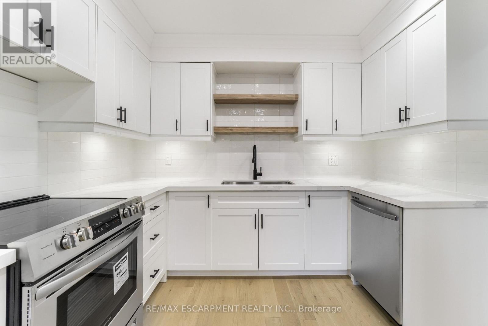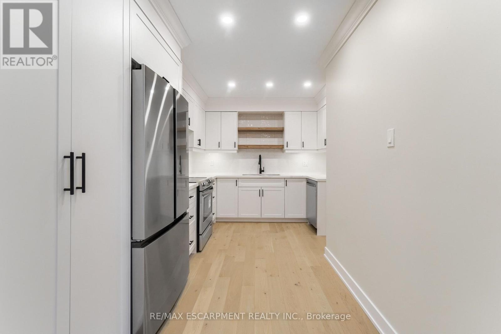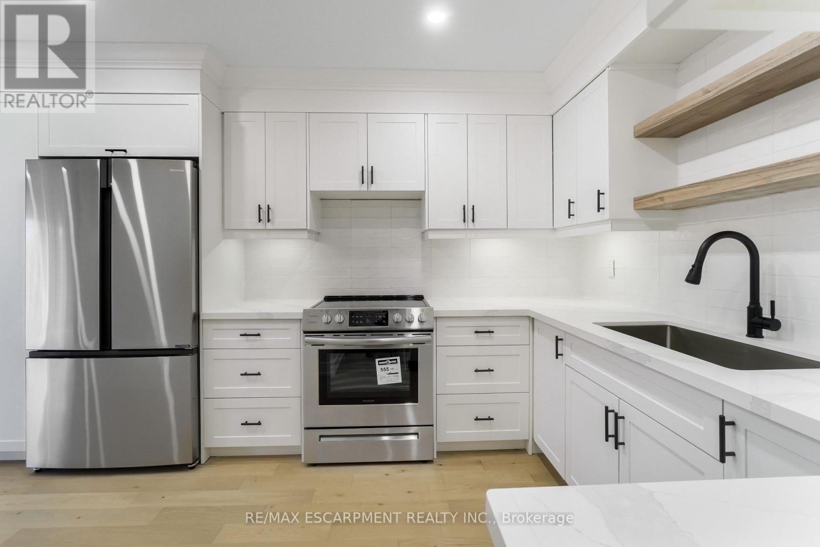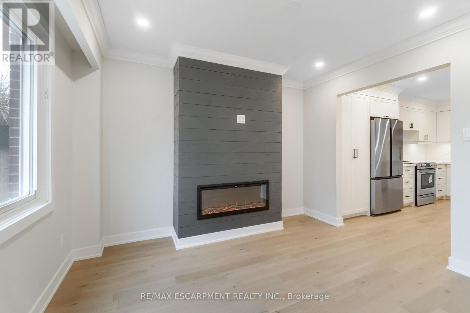Beautifully newly renovated townhome featuring an all-brick exterior, private fenced backyard, and rare backing onto a park-offering peace, privacy, and green views. This professionally designed home showcases a stunning white wrap-around kitchen complete with premium stainless steel appliances, ample cabinetry, and a convenient pantry, ideal for both everyday living and entertaining. The main level boasts wide-plank engineered hardwood flooring, pot lights throughout, a cozy fireplace, and an open-concept living and dining area filled with natural light.Upstairs, the spacious primary bedroom retreat features double-door entry, walk-in closets, and a luxurious renovated 4-piece ensuite with a glass-enclosed shower. Two additional full-size bedrooms offer generous closet space and versatility for family, guests, or a home office. A beautifully renovated 4-piece main bathroom with ensuite privileges completes the upper level.Thoughtfully updated from top to bottom, this move-in-ready home combines modern finishes with functional design in a highly desirable setting. A rare opportunity-this home must be seen to be truly appreciated. (id:4555)