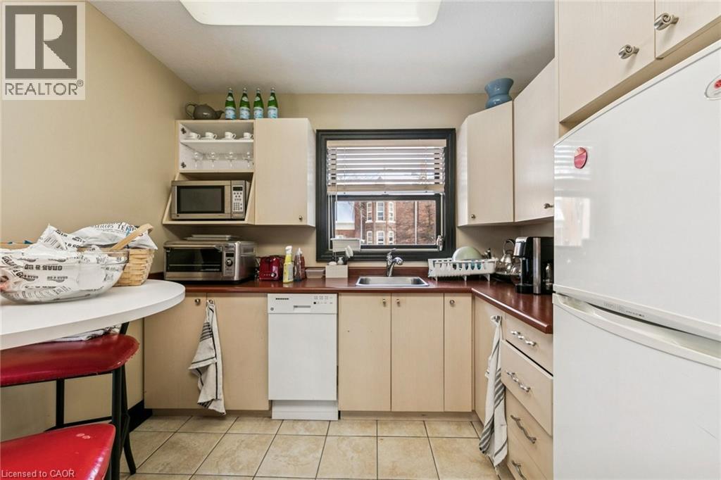Well-appointed 2,089 sq ft office space with a functional layout, including open workspace and private offices. Features a built-out kitchen and additional basement storage space (not included in square footage). Bright interior with ample windows and skylight. Prominent corner property offering excellent exposure. Accessible location with many nearby amenities. (id:4555)