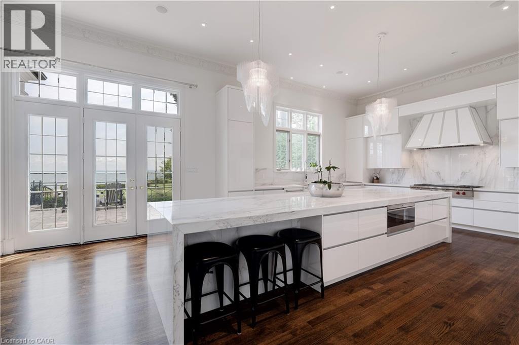 Welcome to 4410 Lakeshore Road, a stunning 1.2-acre lakefront estate in Burlington’s sought-after Shoreacres neighbourhood. This custom-built bungalow offers 5 bedrooms (3 on the main level, 2 on the lower level) and 4 bathrooms, with 4,365 sq. ft. of living space on the main floor alone. Inside, you'll find 12-foot ceilings, detailed crown mouldings, and an elegant yet inviting layout. The expansive great room and chef’s kitchen are perfect for entertaining, while the main-floor primary suite provides stunning lake views. The walk-up lower level features a second kitchen, spacious recreation room, and additional bedrooms—ideal for guests or multigenerational living. Step outside to your private oasis: a sparkling inground pool, lush landscaping, and direct access to Lake Ontario, perfect for serene mornings and captivating sunsets. With a detached 2-car garage and parking for 30+, this property offers the ultimate in both luxury and practicality. Located near top-rated schools, parks, and upscale amenities, this exclusive estate combines privacy with convenience in one of Burlington's finest communities. (id:4555)