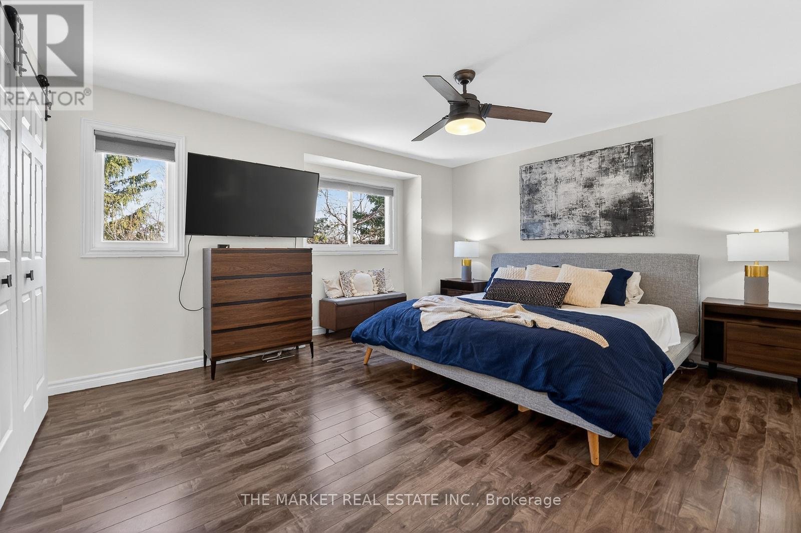 WOW!! A fully renovated end-unit townhouse that lives like a true semi-detached, delivering space, light, and privacy rarely found in this category. The interiors are confidently modern-clean lines, curated finishes, and an effortless flow built for both everyday living and entertaining. Oversized living and dining areas anchor the main floor, leading into a chef-driven kitchen finished with granite countertops and high-end stainless steel appliances-functional, polished, and social by design. The kitchen balances design and function with complimentary colours between the streamlined modern cabinetry and counters, and thoughtfully integrated storage, including pull-out pantry drawers that keep everything organized and within reach. Upstairs, the primary retreat feels intentional and indulgent: generous proportions, wall-to-wall custom closet systems, and a spa-inspired ensuite with a large glass walk-in shower and rain feature. The home continues to impress outdoors with a bright, cheerful backyard backing onto open space, offering rare openness and privacy. A fully finished basement adds valuable flexibility with a large recreation room-ideal for a media lounge, home office, or guest space. Impeccably renovated and maintained from top to bottom, this is a true turnkey offering. Headon Forest is one of Burlington's best-kept secrets-an established, tree-lined neighbourhood with a quietly edgy, design-aware energy. Close to trails, parks, respected schools, and major commuter routes, it attracts homeowners who want substance over flash, community over chaos, and a lifestyle that feels curated rather than cookie-cutter. And the lifestyle? Unmatched walkability for this pocket. A grocery store and a full plaza of food, café, and everyday lifestyle options are just a three-minute walk away, connected directly by a pedestrian bridge from 2920 Headon Forest to the plaza. Daily convenience without ever getting in the car! (id:4555)