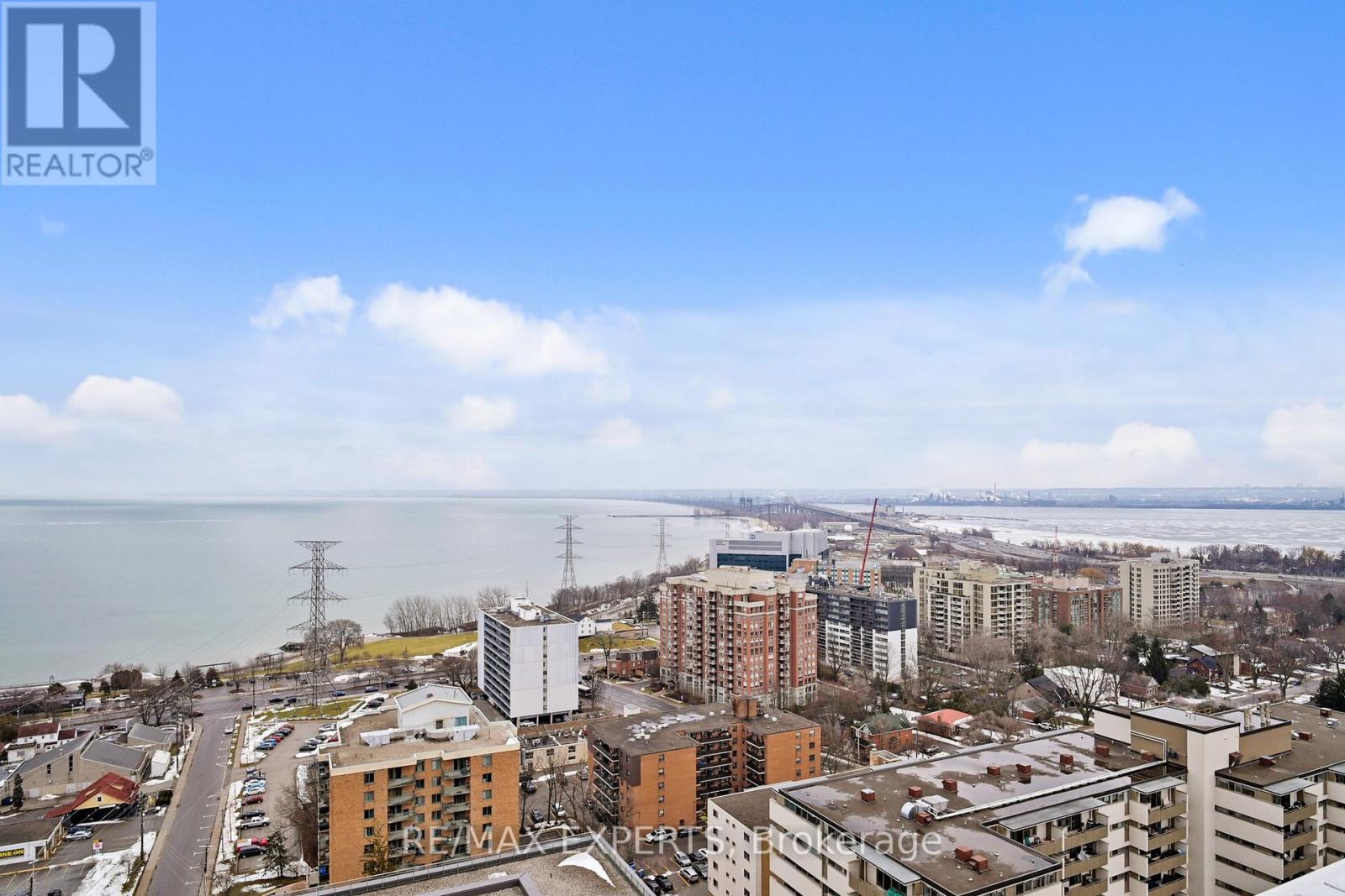 Spacious high-floor 2-bedroom condo offering approximately 1,030 sq ft of bright, open-concept living just moments from Lake Ontario in Burlington. Soaring 9-ft ceilings and expansive windows flood the suite with natural light and enhance the elevated views. The functional layout features generous principal rooms, a well-appointed kitchen with ample storage, and excellent bedroom separation. The primary retreat offers substantial closet space and private ensuite convenience. Residents enjoy exceptional building amenities, creating a true resort-style experience, all steps to the waterfront, parks, trails, dining, and vibrant downtown conveniences. (id:4555)