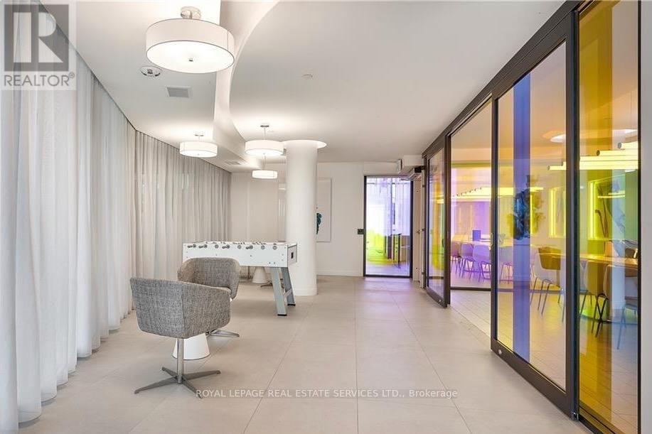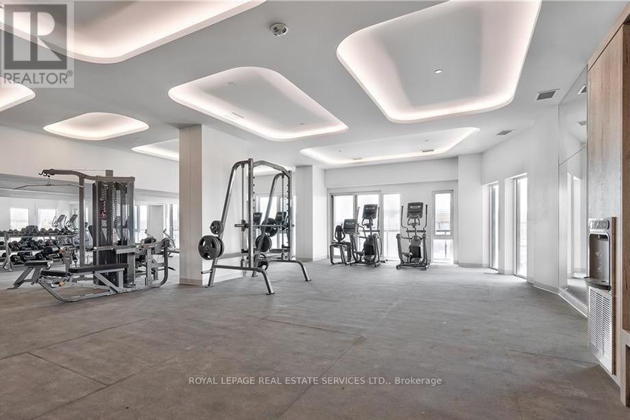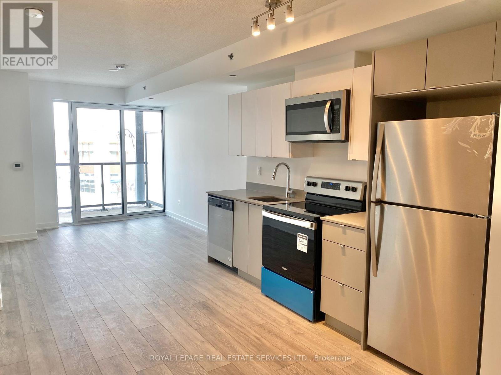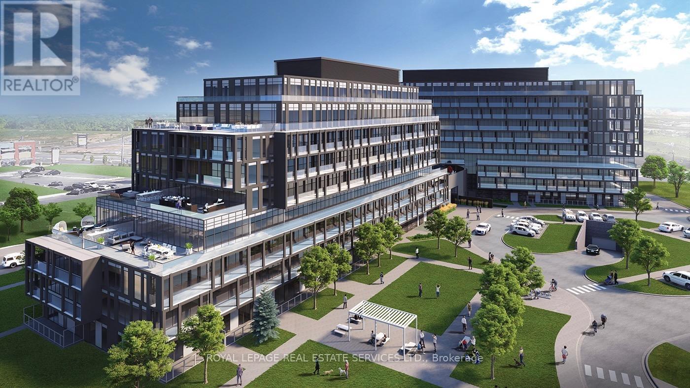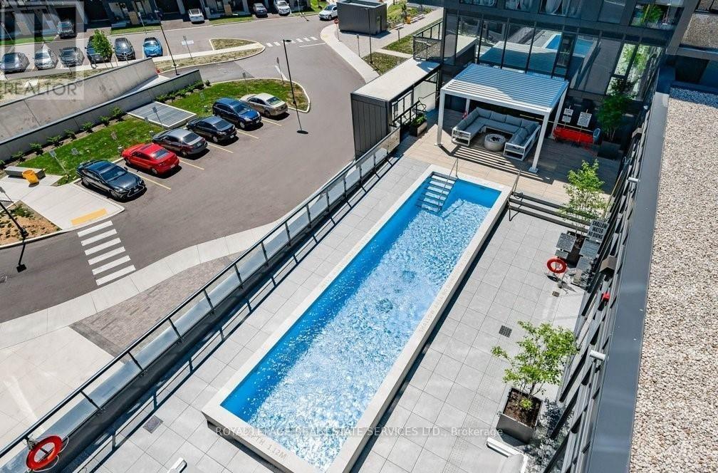 Fantastic 1 bedroom + den unit for lease in Valera Condos! Spectacular building amenities include 24hr concierge, a luxurious lobby, meeting/dining room, media room, party room, games area, outdoor terrace and pet spa. Also, an outdoor rooftop pool, lounge, BBQ area, fitness centre, yoga space, sauna & steam room are accessed right outside your door on the third level. This unit is 600 sf + 112 sf balcony, and features an open concept living room & kitchen with a den that can be utilized as a dining area, office or TV room. The kitchen has euro-style cabinets, quartz counters and stainless steel fridge, stove, built-in dishwasher and built-in microwave. Sliding glass doors in the living room lead to the spacious balcony with northern views. The bedroom has wall-to-wall windows, also with northern views. There is a 4pc bath with sleek vanity, quartz counter, under-mounted sink upgraded mirrored medicine cabinet and modern grey tile. Lots of closet space in the entry, as well as a convenient stacked washer and dryer. 1 parking space and storage locker are also included. Tenant pays for water, heat, hydro, cable & tenant insurance. Ideally located in Burlington's Alton Village, close to shopping, restaurants, GO trains, parks, trails and Oakville Hospital. (id:4555)