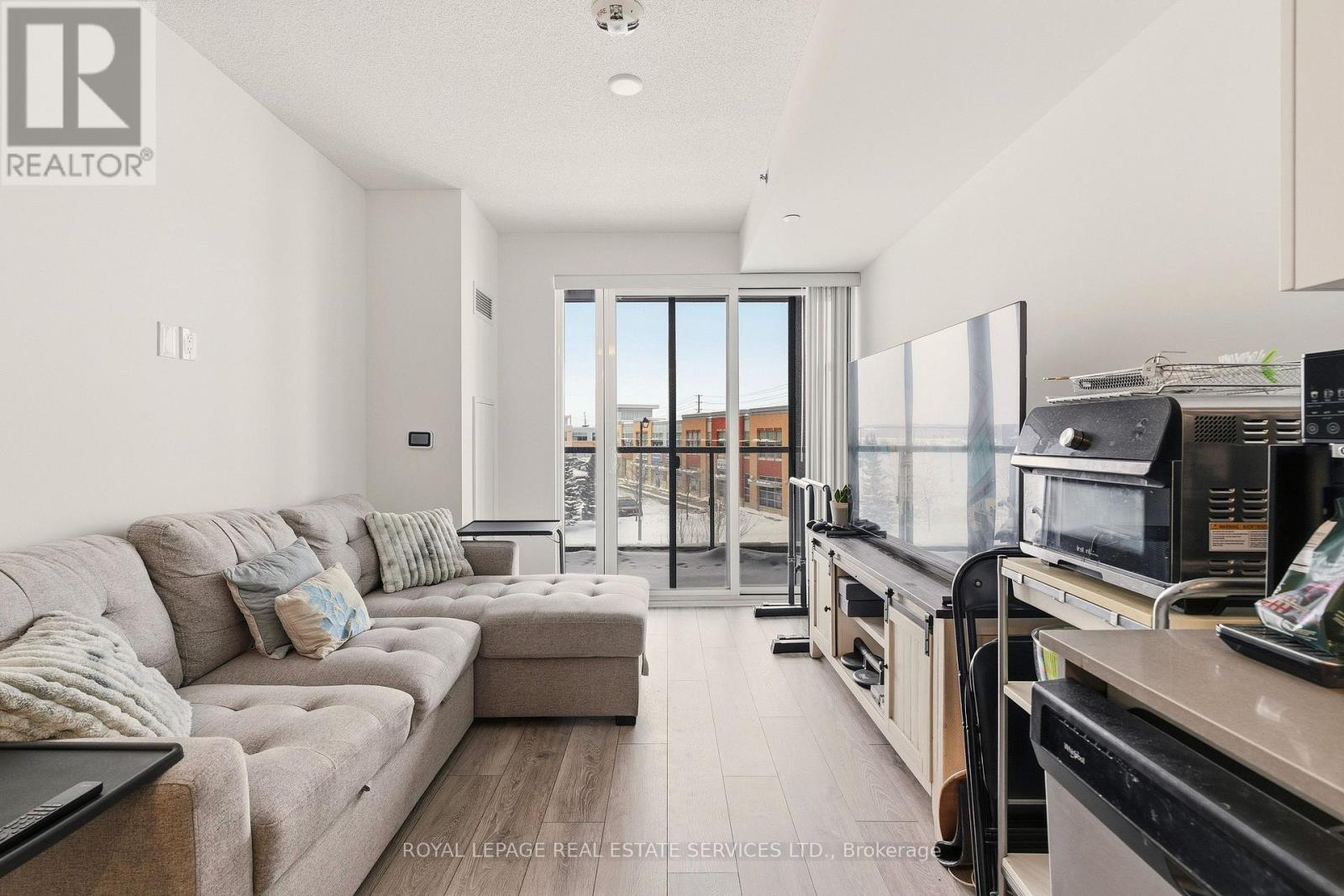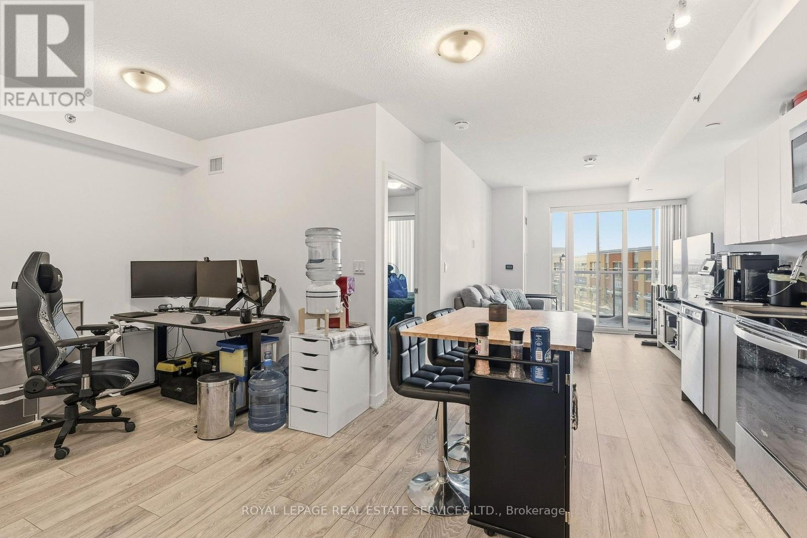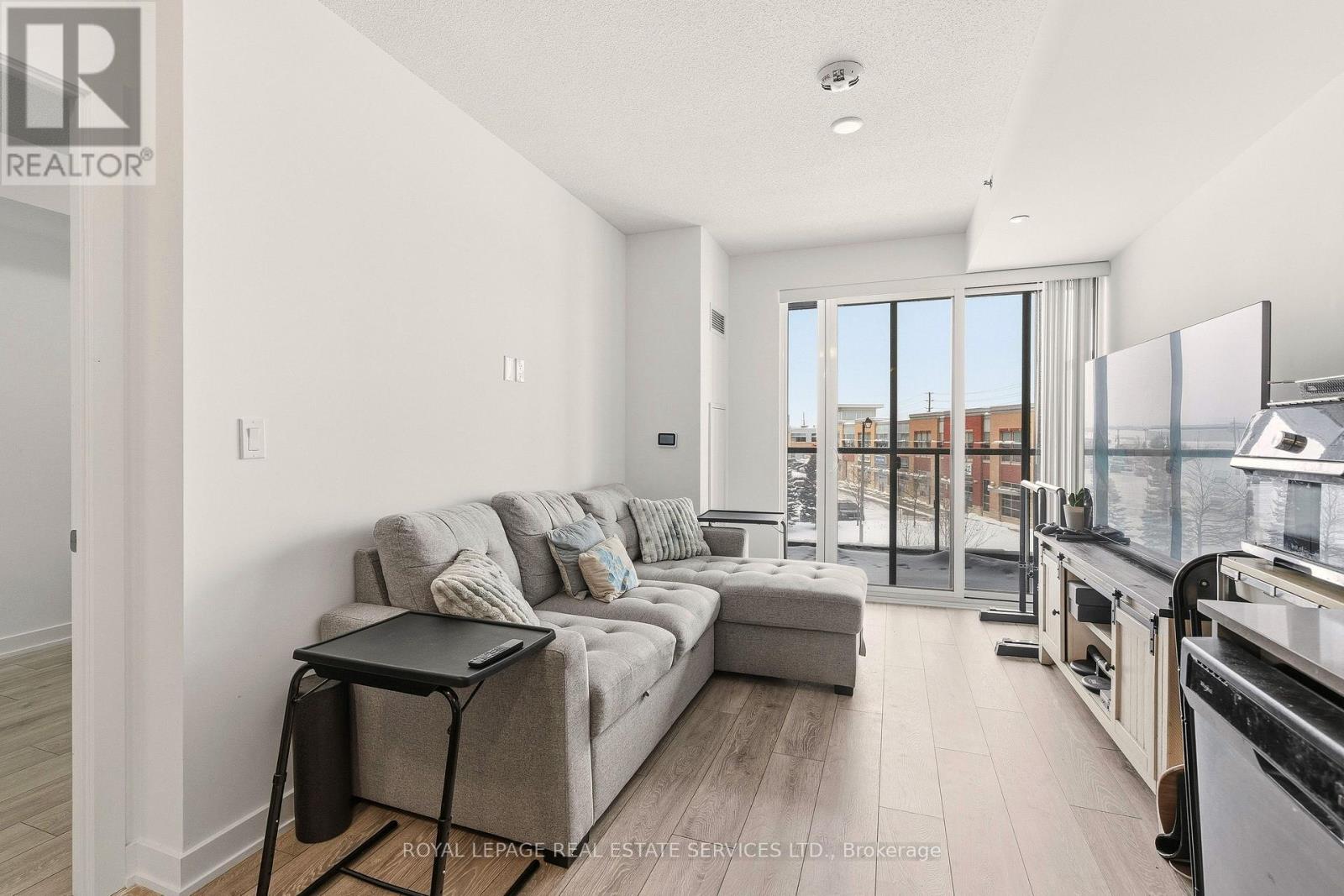 Fantastic 1 bedroom + den unit for lease in Valera Condos! Spectacular building amenities include 24hr concierge, a luxurious lobby, meeting/dining room, media room, party room, games area, outdoor terrace and pet spa. Also, an outdoor rooftop pool, lounge, BBQ area, fitness centre, yoga space, sauna & steam room are accessed right outside your door on the third level. This unit is 600 sf + 112 sf balcony, and features an open concept living room & kitchen with a den that can be utilized as a dining area, office or TV room. The kitchen has euro-style cabinets, quartz counters and stainless steel fridge, stove, built-in dishwasher and built-in microwave. Sliding glass doors in the living room lead to the spacious balcony with northern views. The bedroom has wall-to-wall windows, also with northern views. There is a 4pc bath with sleek vanity, quartz counter, under-mounted sink upgraded mirrored medicine cabinet and modern grey tile. Lots of closet space in the entry, as well as a convenient stacked washer and dryer. 1 parking space and storage locker are also included. Tenant pays for water, heat, hydro, cable & tenant insurance. Ideally located in Burlington's Alton Village, close to shopping, restaurants, GO trains, parks, trails and Oakville Hospital. (id:4555)