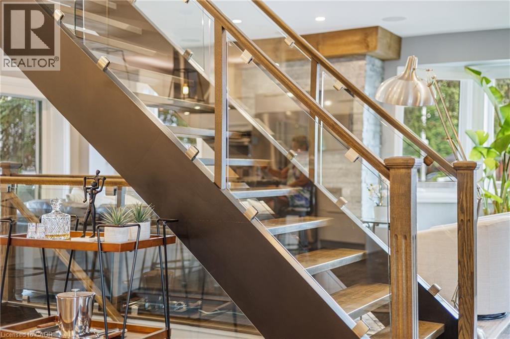 Downtown is calling with this one of a kind opportunity in the Downtown Core. This home was redesigned/rebuilt in 2016 utilizing original foundation/footprint, expanding the foundation adding sq ft, ceiling height, and new garage w/ loft (potential future development) The stunning open concept main floor plan showcases a 4’ wide open tred/glass rail staircase. The Kitchen is a chef’s dream with ++ counter space and drawer/cabinets/pull-outs, a 10.25’x4.25’ island that seats 6, Kitchenaid induction cooktop, double wall oven, and fridge, BOSCH DW, and built-in 2 zone wine cooler and bar sink. There is hardwood floor throughout the home, new motorized blinds on main level, mud room has ++storage space, garage entry, heated floor, towel warming rack, with exit to backyard hot tub. Large primary suite with his and her walk in closet, ensuite with heated floor has water closet, double vanity, and large glass shower with double rainshower with bench. French doors (with Phantom screens) lead to a balcony that overlooks the backyard. 2nd bedroom has its own private ensuite. The Backyard oasis is a peaceful retreat with resort vibes & several separate entertaining spaces.The large outdoor bar has a bar fridge & Stainless storage cabinets. The master griller will be delighted with the custom grilling kitchen (2021) equipped with counter/storage space, Napoleon gas bbq, Kamado Joe, and a wood-fired pizza oven that will truly entertain your guests. The finished basement has a large rec room highlighted by large wine display nook and wet bar. Bar area has dual purpose - Office by day and Bar by night. The design has custom drawers and pullouts to slide computer and desk items out of sight. Live the “downtown life” being steps to restaurants, gyms, groceries, the lake, Spencer Smith Park, the Performing Arts Centre, parks and schools. Close by are GO transit, HWY access, Joe Brant Hospital, and Mapleview Shopping Mall. Get ready to entertain with this downtown gem (id:4555)
