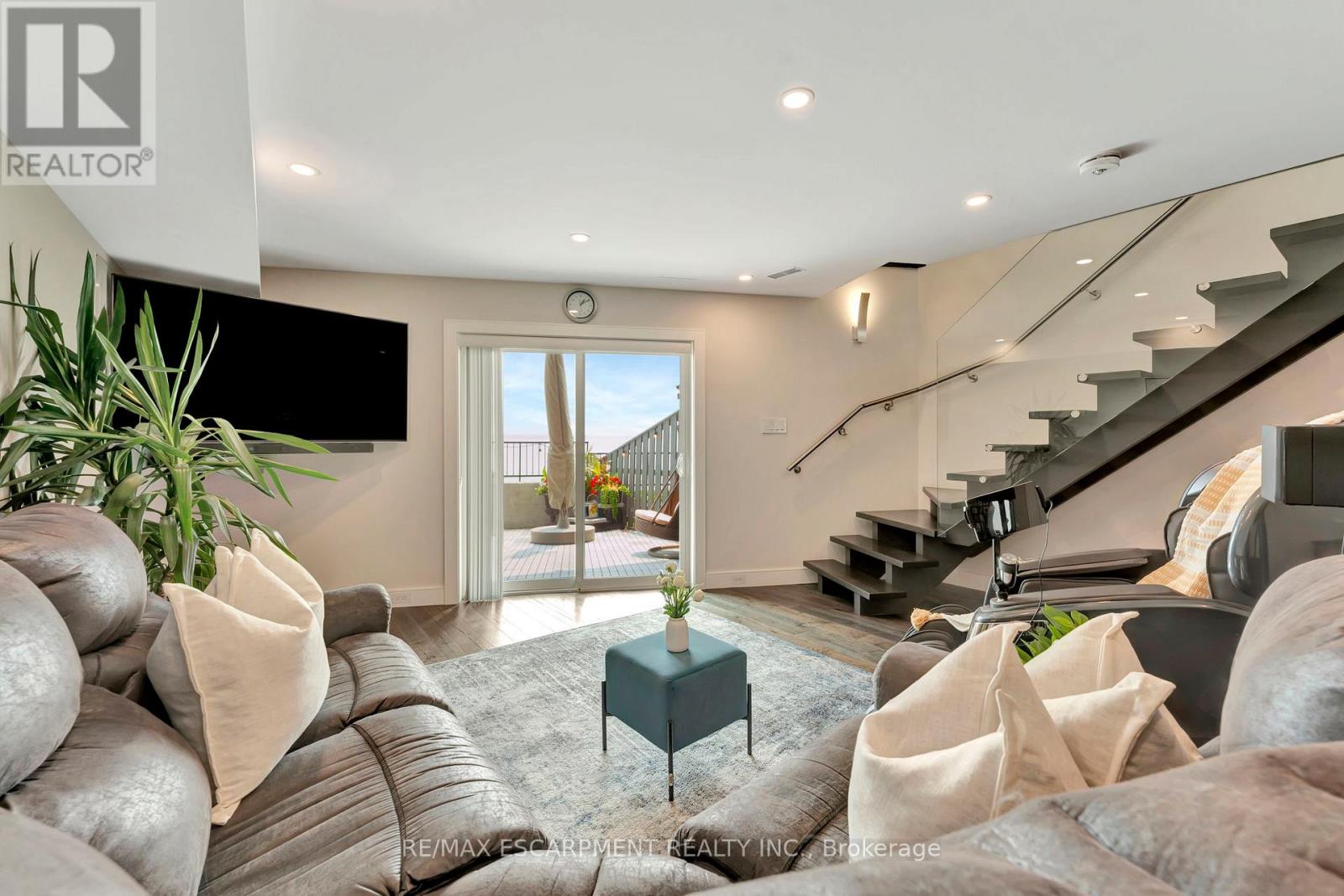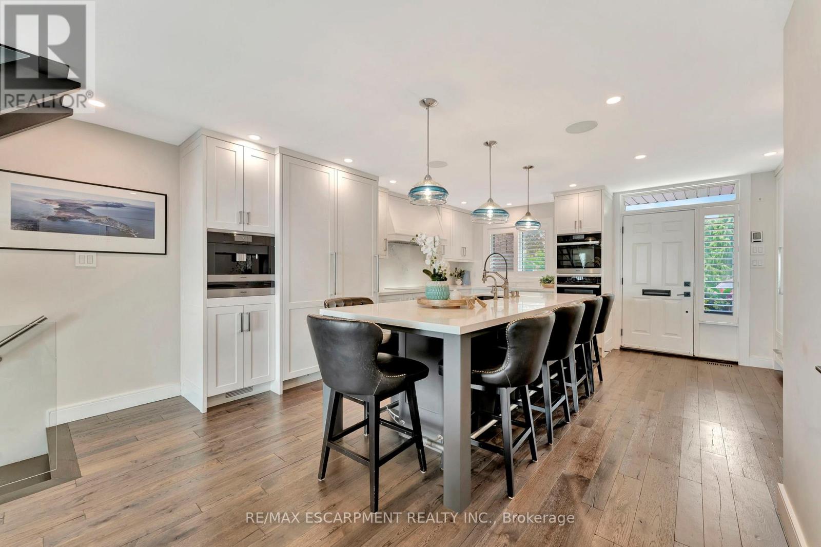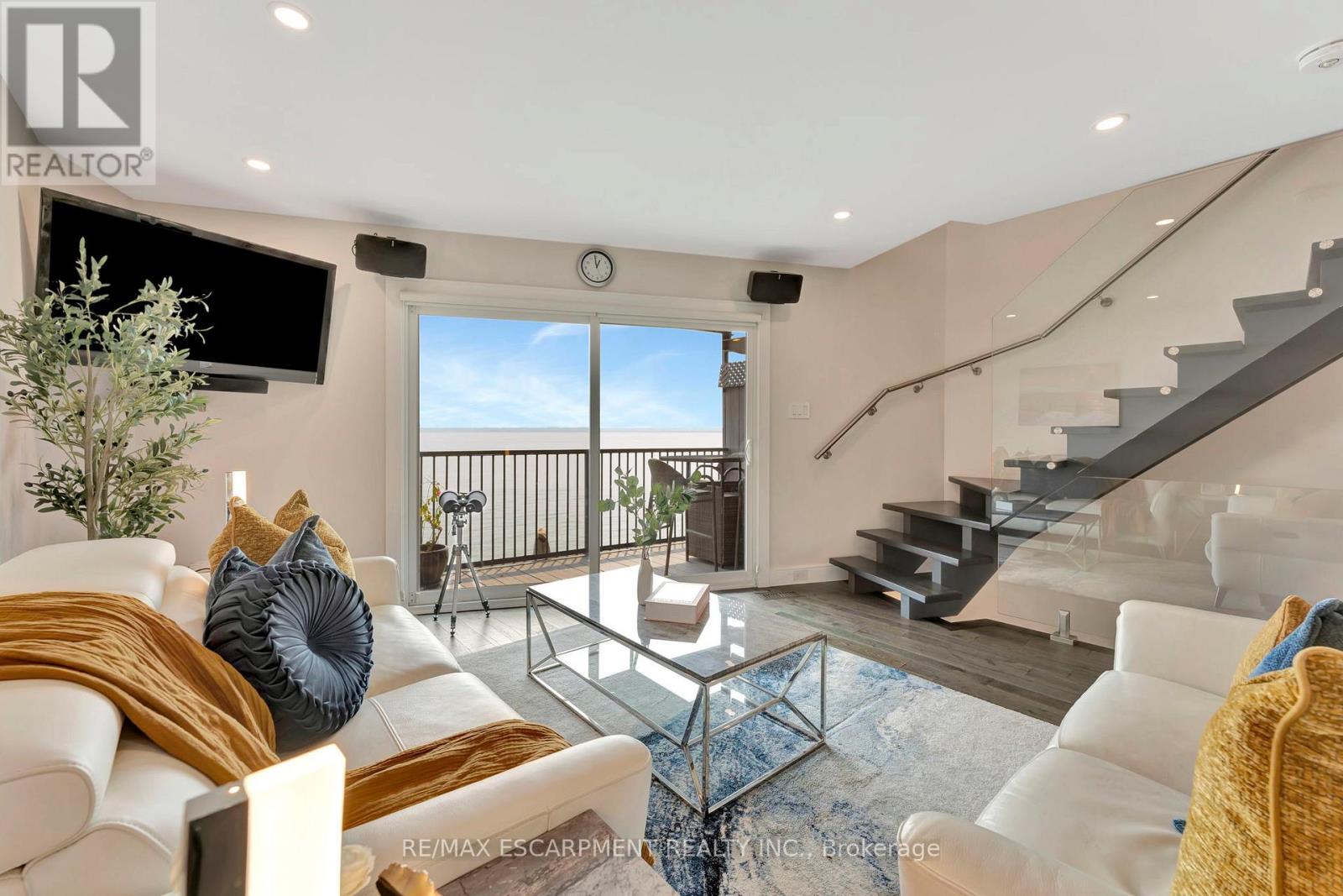 Client Rmks:Welcome to the ultimate lakefront lifestyle. This fully renovated 3-level townhouse offers unobstructed, panoramic views of Lake Ontario so close to the water, you can practically dip your toes in. Located just 600 metres from downtown Burlington, this is a rare blend of tranquility and convenience. This 3-level townhouse (1,600 plus SF) offers 1 bedrooms (potential for 2nd if you converted large walk-in closet back into a bedroom), 3 bathrooms (2 full, 1 powder) and 4 separate patio/terraces (huge 400 SF lower terrace at the water's edge). In 2020 this unit was completely gutted to the studs and rebuilt by the renowned Bespoke Home Solutions with a total renovation budget exceeding $500K . The gourmet kitchen has been masterfully crafted with designer finishes including: Insinkerator food waste disposal, hot water tank/dispenser, Porter & Charles warming drawer, Built in Miele Appliances (including a $7K plumbed in Coffee Machine), microwave/convection oven, Combi Steam Oven, Dacor Fridge & Freezer and Gravelle custom cabinetry throughout. The spacious primary suite is a true retreat, featuring a spa-inspired ensuite with heated floors, a two-person soaker tub, and a private balcony with stunning sunrise views over the lake. The second bedroom has been converted into a designer walk-in closet with custom cabinetry and a centre island, offering both form and function (easily reverted to a bedroom if desired). Lower level family room offers a full bathroom, ample storage and ability to offer a guest suite with use of a murphy bed. Backwater valve in basement. Home is equipped with Sonos built in ceiling speakers with hooked up amplifiers and speaker selector options. Large 400 SF back terrace is fashioned with a BBQ gas line and has a hook up for a Hot Tub. (id:4555)