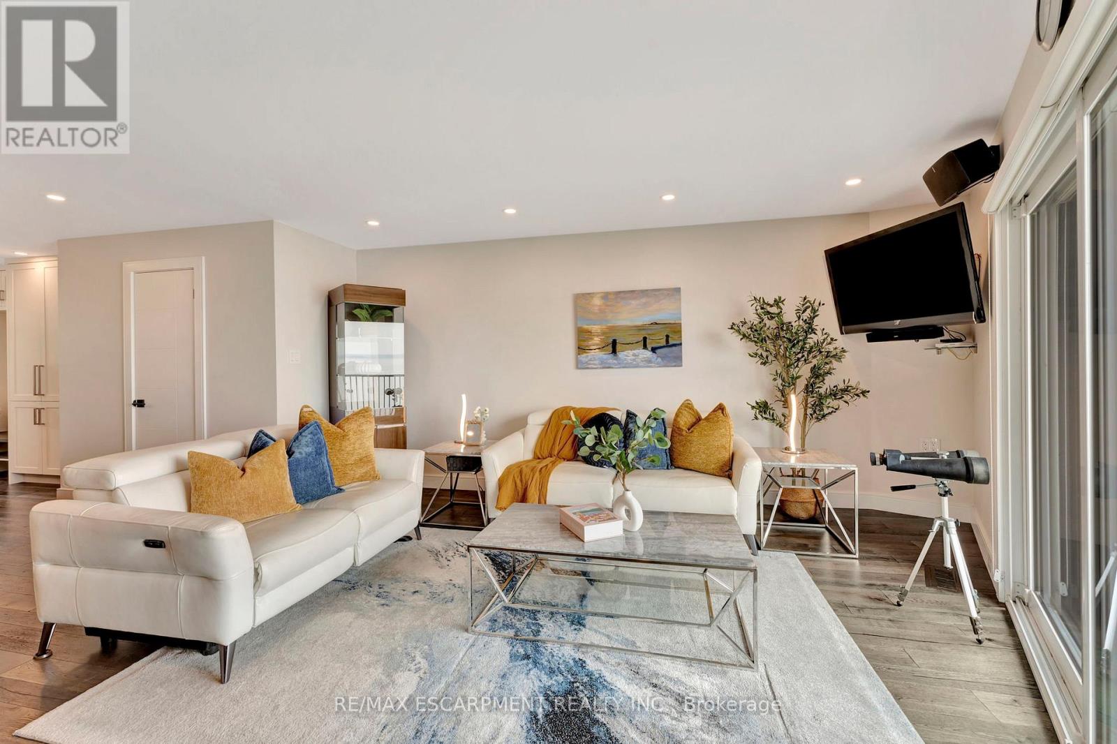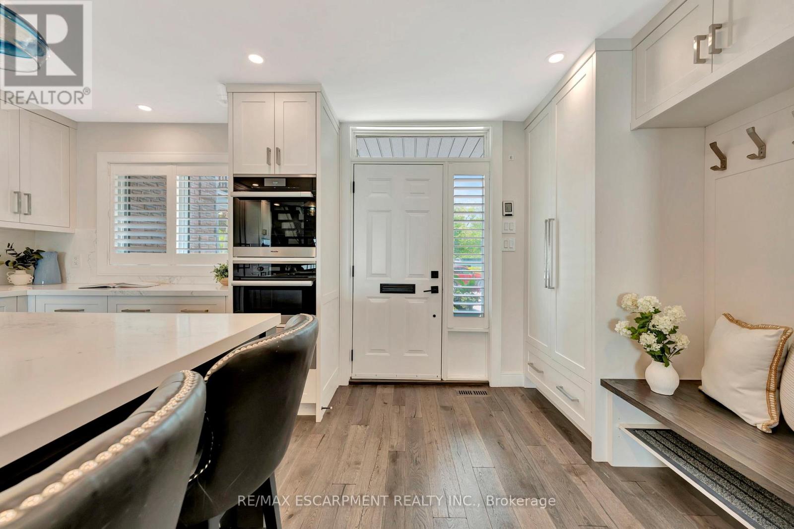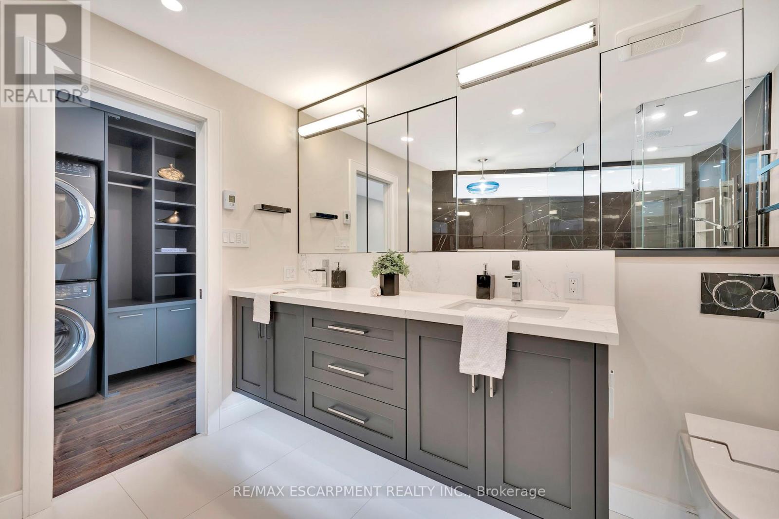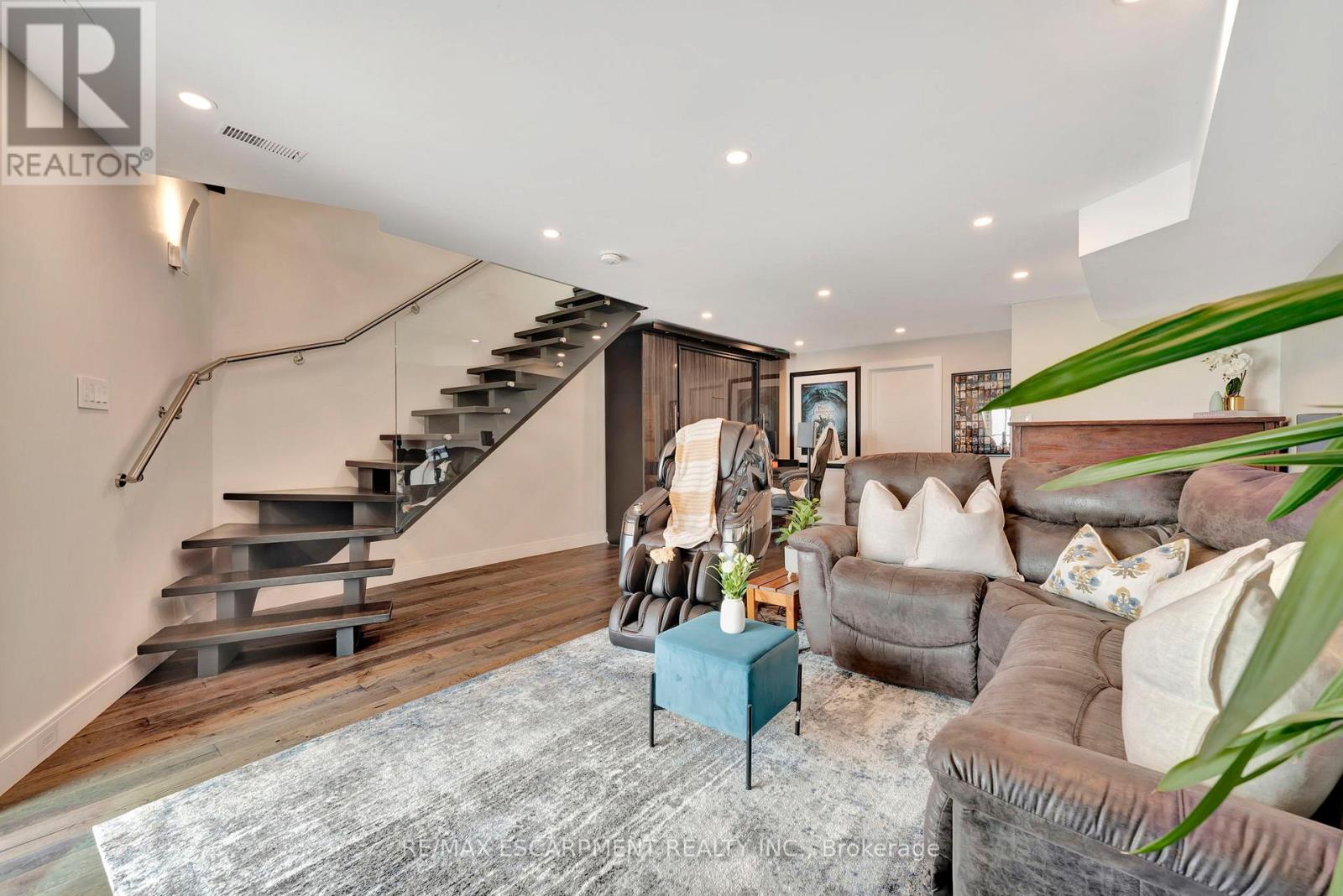 Client Rmks:Welcome to the ultimate lakefront lifestyle. This fully renovated 3-level townhouse offers unobstructed, panoramic views of Lake Ontario so close to the water, you can practically dip your toes in. Located just 600 metres from downtown Burlington, this is a rare blend of tranquility and convenience. This 3-level townhouse (1,600 plus SF) offers 1 bedrooms (potential for 2nd if you converted large walk-in closet back into a bedroom), 3 bathrooms (2 full, 1 powder) and 4 separate patio/terraces (huge 400 SF lower terrace at the water's edge). In 2020 this unit was completely gutted to the studs and rebuilt by the renowned Bespoke Home Solutions with a total renovation budget exceeding $500K . The gourmet kitchen has been masterfully crafted with designer finishes including: Insinkerator food waste disposal, hot water tank/dispenser, Porter & Charles warming drawer, Built in Miele Appliances (including a $7K plumbed in Coffee Machine), microwave/convection oven, Combi Steam Oven, Dacor Fridge & Freezer and Gravelle custom cabinetry throughout. The spacious primary suite is a true retreat, featuring a spa-inspired ensuite with heated floors, a two-person soaker tub, and a private balcony with stunning sunrise views over the lake. The second bedroom has been converted into a designer walk-in closet with custom cabinetry and a centre island, offering both form and function (easily reverted to a bedroom if desired). Lower level family room offers a full bathroom, ample storage and ability to offer a guest suite with use of a murphy bed. Backwater valve in basement. Home is equipped with Sonos built in ceiling speakers with hooked up amplifiers and speaker selector options. Large 400 SF back terrace is fashioned with a BBQ gas line and has a hook up for a Hot Tub. (id:4555)