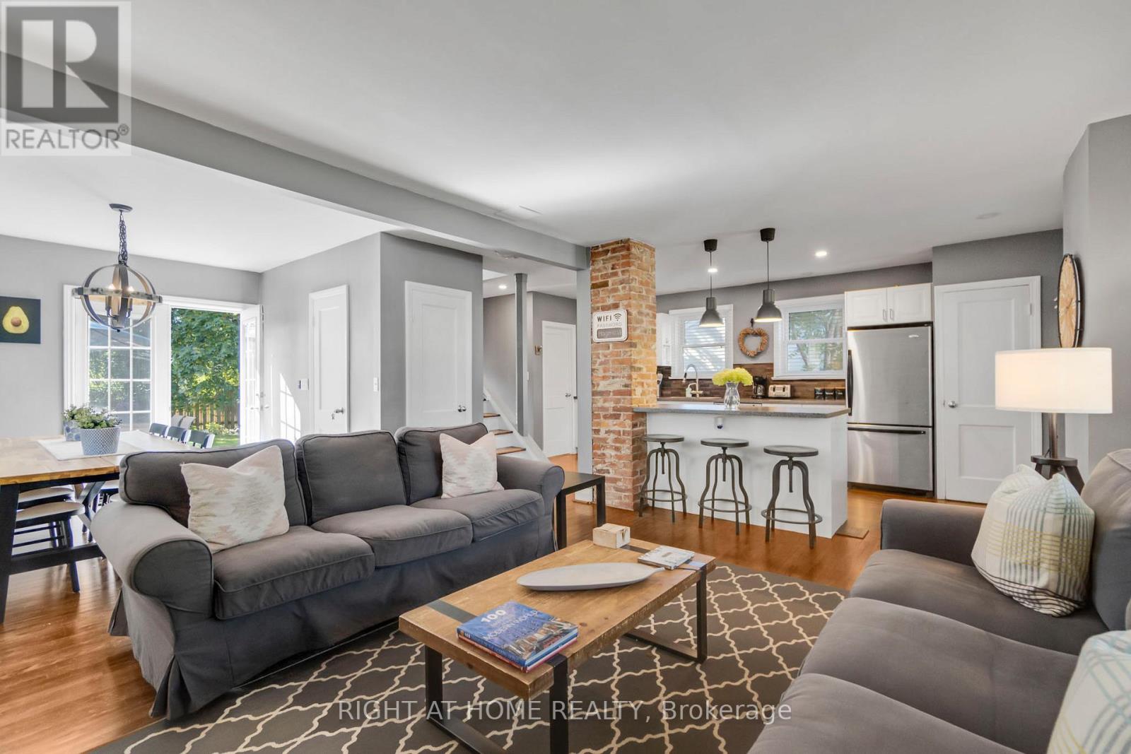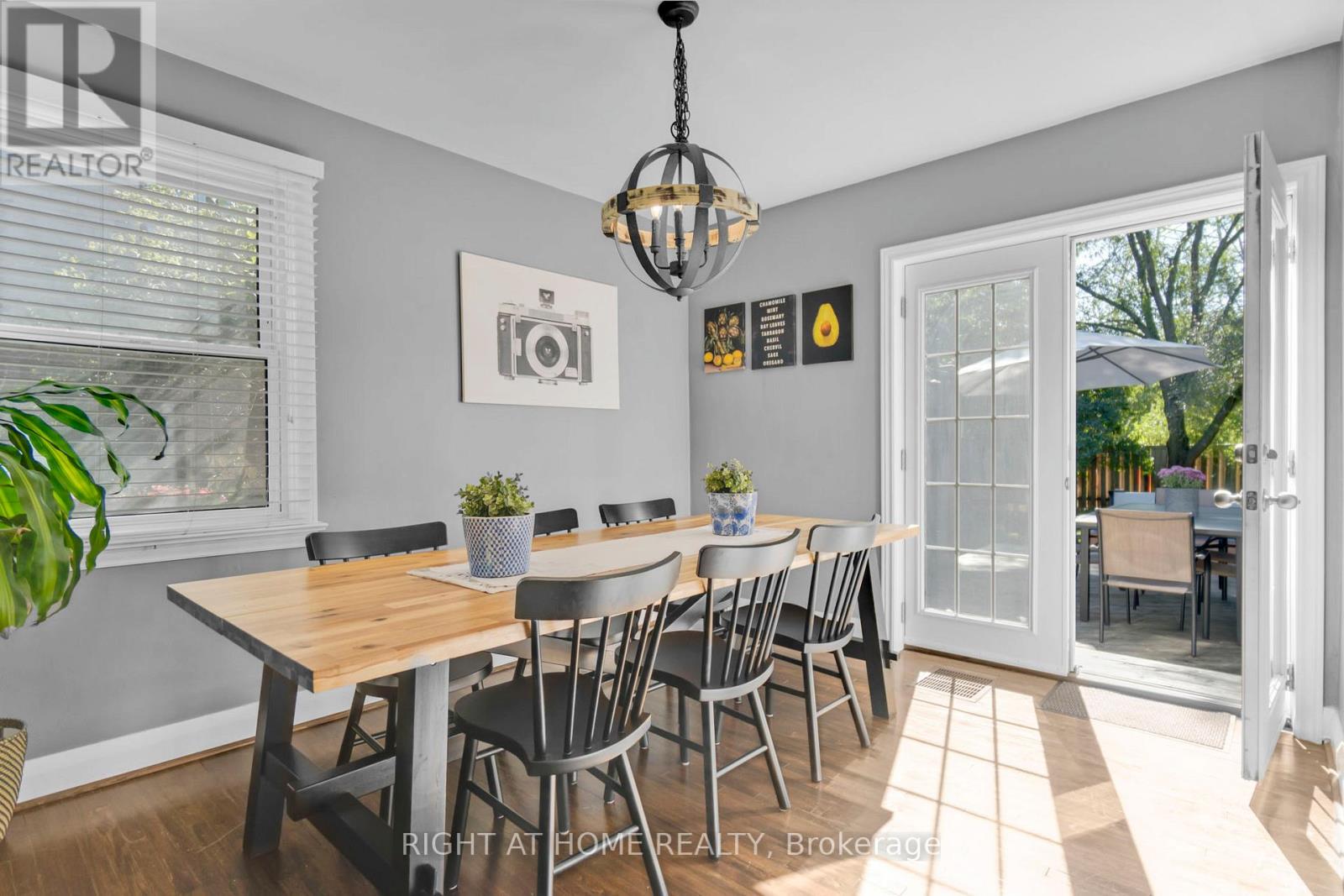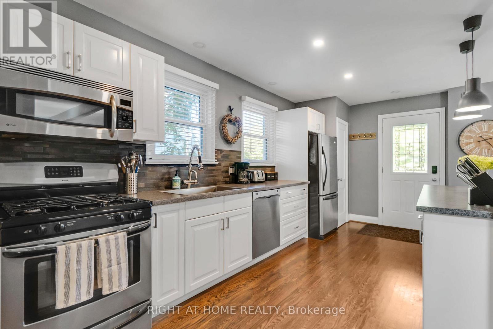 Welcome to this beautifully maintained 3-bedroom, 2.5-bath carpet-free home ideally located in one of Burlington's most desirable downtown neighbourhoods. Just steps from the lake, Spencer Smith Park, and a vibrant array of restaurants, cafes, and shops, this property offers the perfect blend of charm, character, and convenience. Step onto the spacious covered front porch and into a warm, open-concept main floor that's ideal for both relaxing and entertaining. The updated kitchen features stainless steel appliances, a gas stove, and a large peninsula with seating. The exposed brick chimney, original hardwood floors, California shutters, and gas fireplace in the living room create a cozy yet stylish atmosphere. The generous dining area comfortably fits a large table and opens via double doors to the backyard deck, perfect for indoor/outdoor living. Upstairs, you'll find two bright bedrooms with built-in cabinets and a renovated 4-piece bath. The finished basement includes a spacious primary bedroom, a comfortable rec room/living area, and a bathroom with a walk-in shower - ideal for guests or as a private retreat. The private backyard is your personal oasis, complete with mature trees, a wooden deck, a hot tub, and a new shed for extra storage. Recent upgrades include: Furnace (Dec 2020); A/C (2021); Exterior paint (2021); Dishwasher (2022); Powder room (2023); Shed (2023); Hot tub cover (2025). Don't miss this rare opportunity to live in a charming, character-filled home in downtown Burlington - where you're never far from the lake, green space, and city amenities. Book your private showing today! (id:4555)