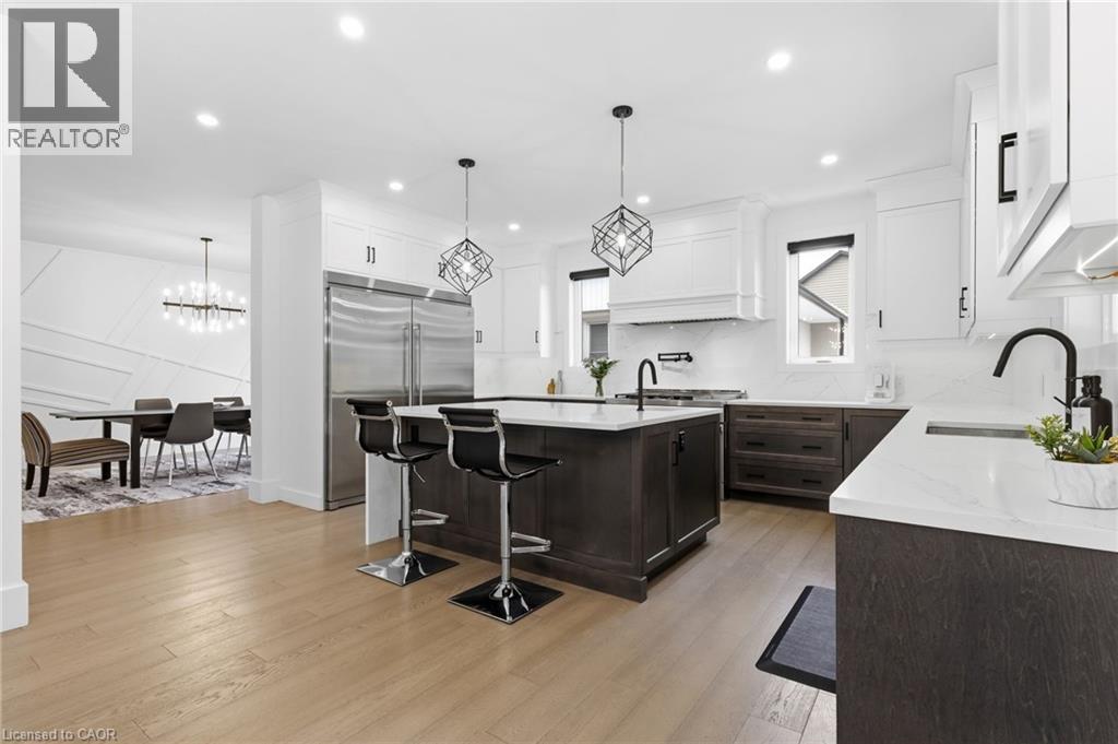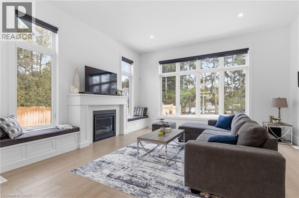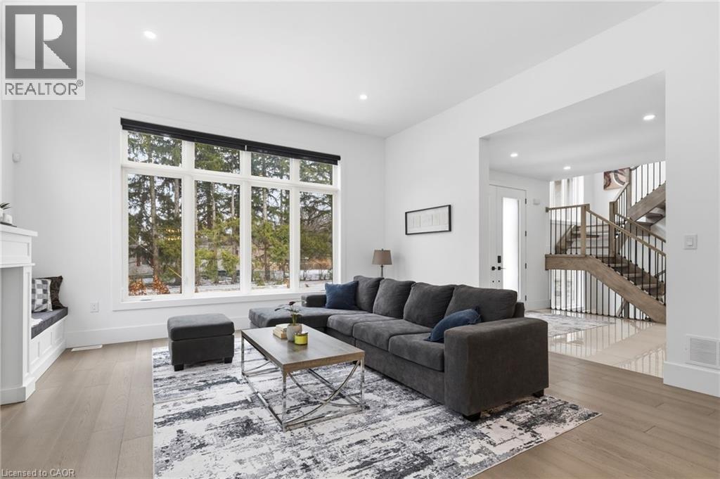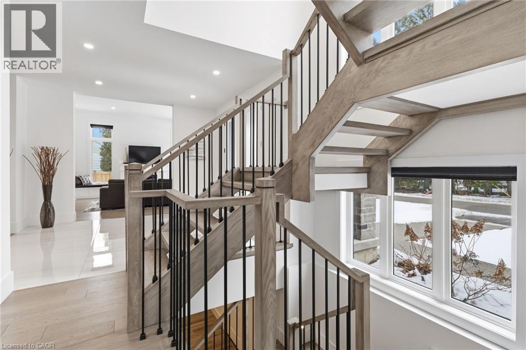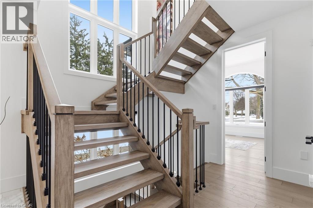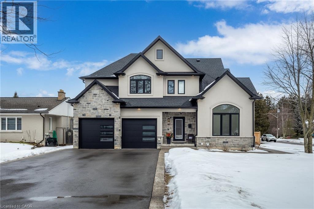 Welcome to 817 King Rd — a custom-built 3,750 sq ft (5,550 sq ft incl basement), 4+1 bedroom, 5-bathroom residence thoughtfully designed for modern family living. A bright, expansive foyer opens to rich hardwood floors, statement lighting, and a striking floating-riser staircase that connects all levels of the home. The main floor office features 12-foot vaulted ceilings and oversized picture windows, while the living room mirrors that dramatic height and is anchored by a warm gas fireplace. The open-concept layout flows seamlessly into a chef-inspired kitchen equipped with a 48-inch stainless steel range, full-size fridge and freezer, pot filler, dual sinks, and waterfall stone surfaces. A glass-enclosed walk-in pantry, custom wine display, and dedicated servery elevate both everyday living and entertaining. Upstairs, the oversized primary suite offers dual walk-in closets with built-ins and a spa-inspired ensuite complete with a soaker tub. Each additional bedroom features vaulted ceilings, walk-in closets, and direct access to an ensuite or Jack & Jill bath. The fully finished lower level adds approximately 1,800 sq ft of bright living space, including a fifth bedroom, full bath, storage room, cold cellar, and open entertaining area with gas fireplace. With potential for a second kitchen, the space is ideal for multi-generational living or an in-law suite. Situated on a rare 75 x 140 ft corner lot with dual street access, the home offers a covered porch with gas fireplace, pool-sized fenced yard with in-ground sprinkler system, double garage, and multi-car driveway. Located in one of Burlington’s most desirable neighbourhoods, you’re a short drive and nine-iron away from Burlington Golf & Country Club, minutes to highway access, and close to the lakefront, downtown restaurants, and waterfront trails. Thoughtful, spacious, and timeless — 817 King Rd is a home you grow into and never out of. RSA. (id:4555)