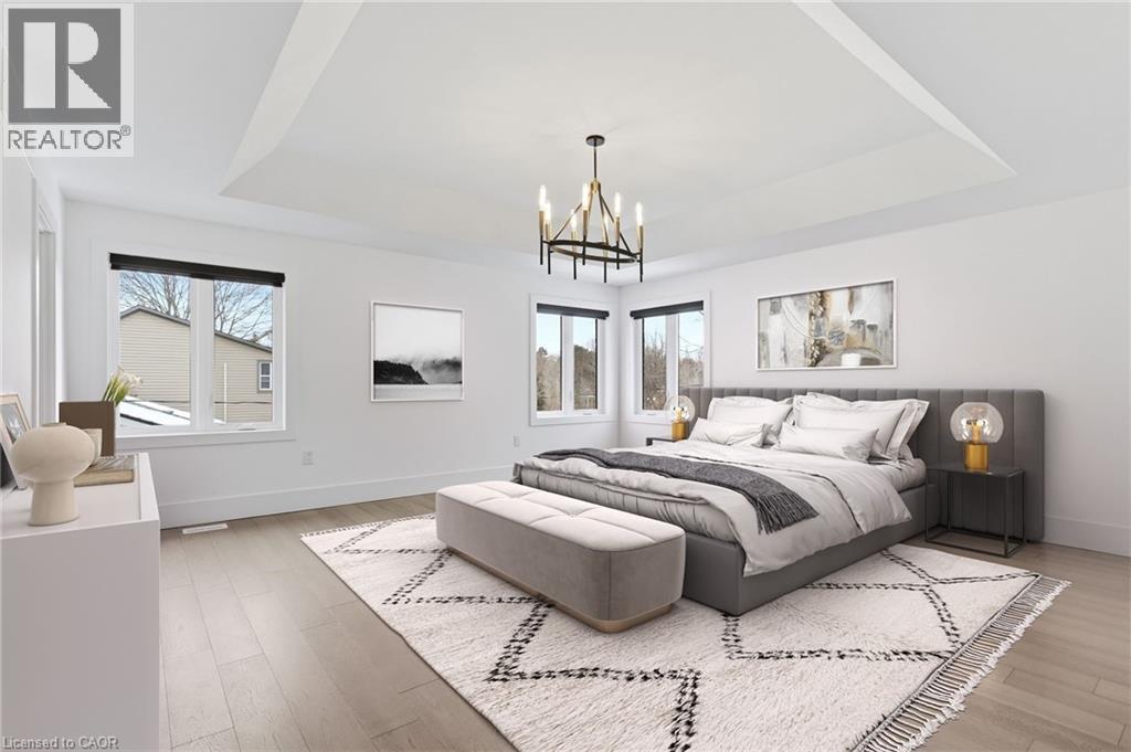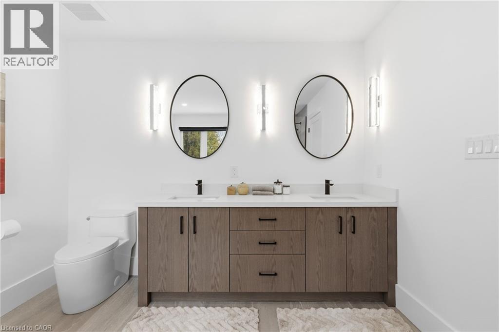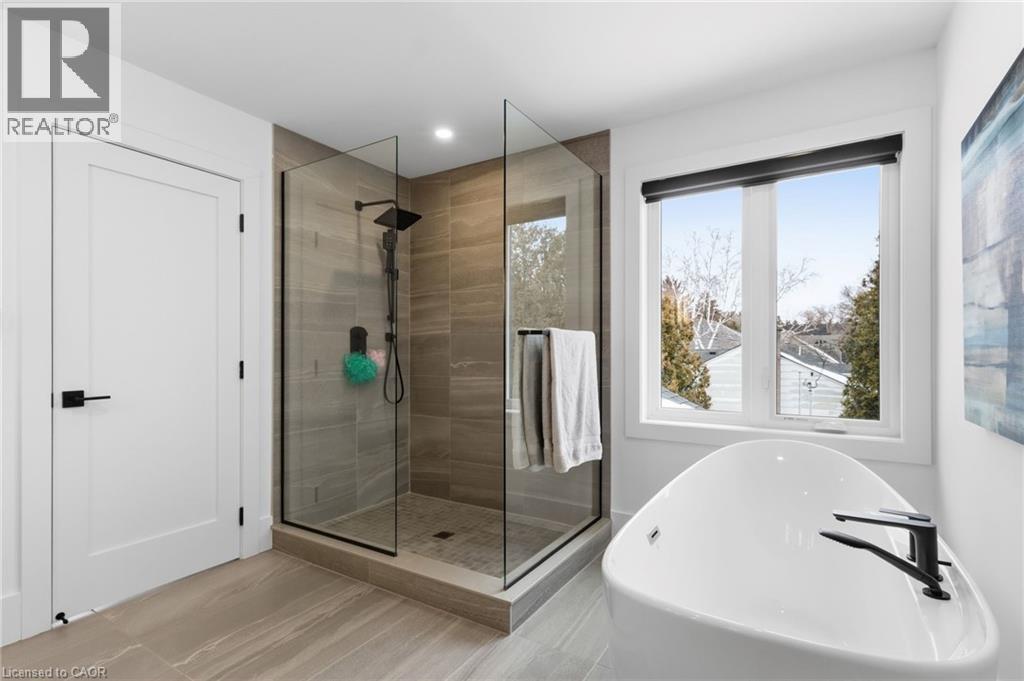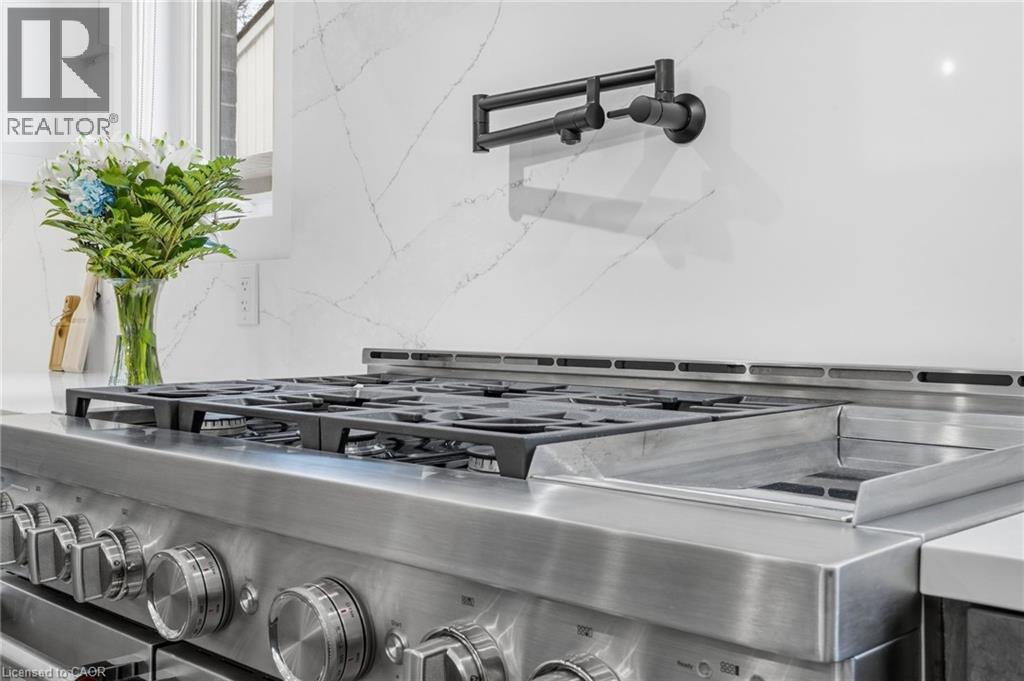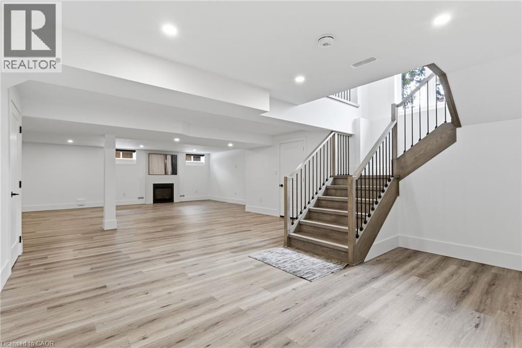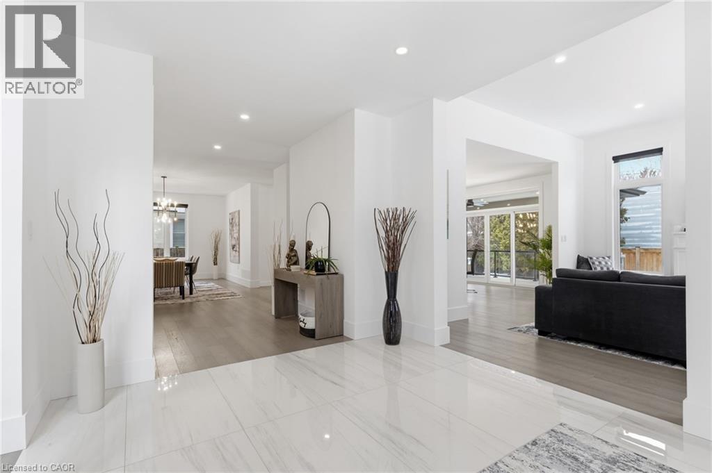 Welcome to 817 King Rd — a custom-built 3,750 sq ft (5,550 sq ft incl basement), 4+1 bedroom, 5-bathroom residence thoughtfully designed for modern family living. A bright, expansive foyer opens to rich hardwood floors, statement lighting, and a striking floating-riser staircase that connects all levels of the home. The main floor office features 12-foot vaulted ceilings and oversized picture windows, while the living room mirrors that dramatic height and is anchored by a warm gas fireplace. The open-concept layout flows seamlessly into a chef-inspired kitchen equipped with a 48-inch stainless steel range, full-size fridge and freezer, pot filler, dual sinks, and waterfall stone surfaces. A glass-enclosed walk-in pantry, custom wine display, and dedicated servery elevate both everyday living and entertaining. Upstairs, the oversized primary suite offers dual walk-in closets with built-ins and a spa-inspired ensuite complete with a soaker tub. Each additional bedroom features vaulted ceilings, walk-in closets, and direct access to an ensuite or Jack & Jill bath. The fully finished lower level adds approximately 1,800 sq ft of bright living space, including a fifth bedroom, full bath, storage room, cold cellar, and open entertaining area with gas fireplace. With potential for a second kitchen, the space is ideal for multi-generational living or an in-law suite. Situated on a rare 75 x 140 ft corner lot with dual street access, the home offers a covered porch with gas fireplace, pool-sized fenced yard with in-ground sprinkler system, double garage, and multi-car driveway. Located in one of Burlington’s most desirable neighbourhoods, you’re a short drive and nine-iron away from Burlington Golf & Country Club, minutes to highway access, and close to the lakefront, downtown restaurants, and waterfront trails. Thoughtful, spacious, and timeless — 817 King Rd is a home you grow into and never out of. RSA. (id:4555)