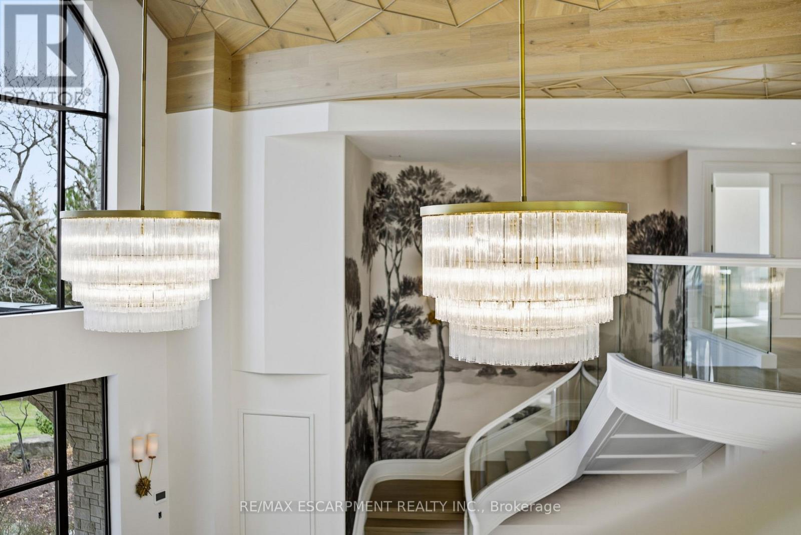 An extraordinary custom-built Country Estate set on 10.5 acres of picturesque, park like grounds, offering unmatched privacy and bespoke amenities. This Masterfully Crafted residence features soaring ceilings, White Oak Herringbone and wide-plank flooring, and exceptional Millwork throughout. A dramatic two-storey foyer opens to elegant principal rooms with 16-foot windows, French doors and panoramic views of rolling hills, a private pond and the Niagara Escarpment.The grand chef's kitchen is designed for entertaining, complete with quartzite countertops, premium Sub-Zero, Wolf and Miele appliances, a walk-in pantry, servery and custom wine storage. The home offers six bedrooms, including a luxurious Primary retreat with Cathedral ceilings, gas fireplace and Spa-inspired ensuite. A Private Nanny suite with additional bedroom and 3 piece washroom, with a separate entrance adds flexibility. Resort-style amenities include an indoor spa with pool, Whirlpool, Cold plunge, Saunas and steam room, plus an outdoor pool with waterfall overlooking the tennis court, stable and orchard. Radiant heated floors, integrated sound and security systems, a four-car garage and expansive parking complete this exceptional offering. All just minutes to amenities and Highway 407. Luxury Certified. (id:4555)