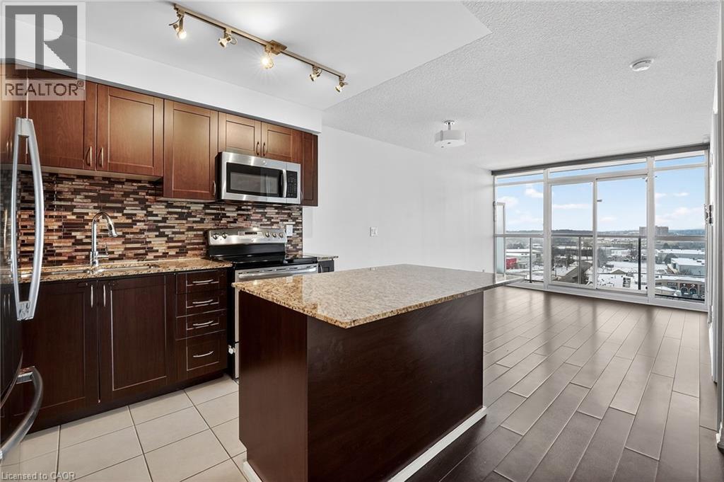 Welcome to unit 1006 on 1940 Ironstone drive! Beautiful condominium located in one of the most desirable areas of Burlington! This condo features a 1 bedroom + den with abundant storage. Kitchen has granite countertops, modern cabinets with a gorgeous 3/4.4 ft island all with warm tones that gives a homey and cozy feeling. Open concept kitchen, dining and living space with large windows that bring in ample of light! You also get 2 bathrooms (1 Full + half) and an in-suite laundry for lavish convenience. A balcony with breathtaking views of the city and clear views for holiday fireworks! Also included 1 Locker and 1 parking space in the underground garage. Parking space is the closest to elevator and is extra spacious, great for accessibility. Inclusions with your fees, you can enjoy a nice workout with full use of the gym, yoga room or cardio room. On the lovely rooftop patio you can fire up the BBQ to have a cookout or cozy up to the fireplace during the cooler nights. You have the option to rent out the huge party room for up to 60 guests, great for birthdays, events or family get togethers. Security officers, a concierge and many security features throughout the building that will make you feel safe and stress free in your home. Minutes to the QEW, 407 and go station. Walking distance to shopping, restaurants, amenities, etc. Move in ready! Don't miss the chance! (id:4555)