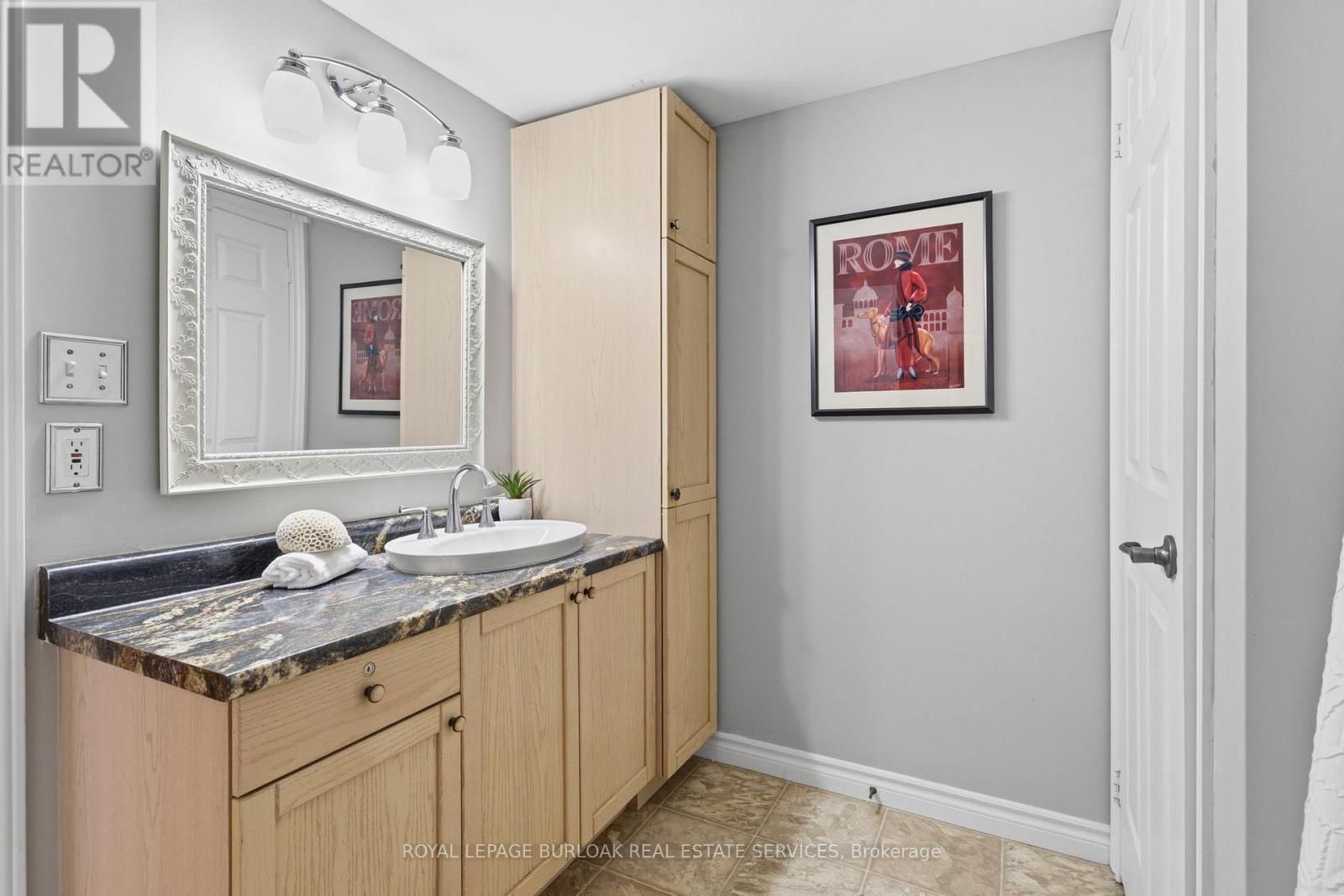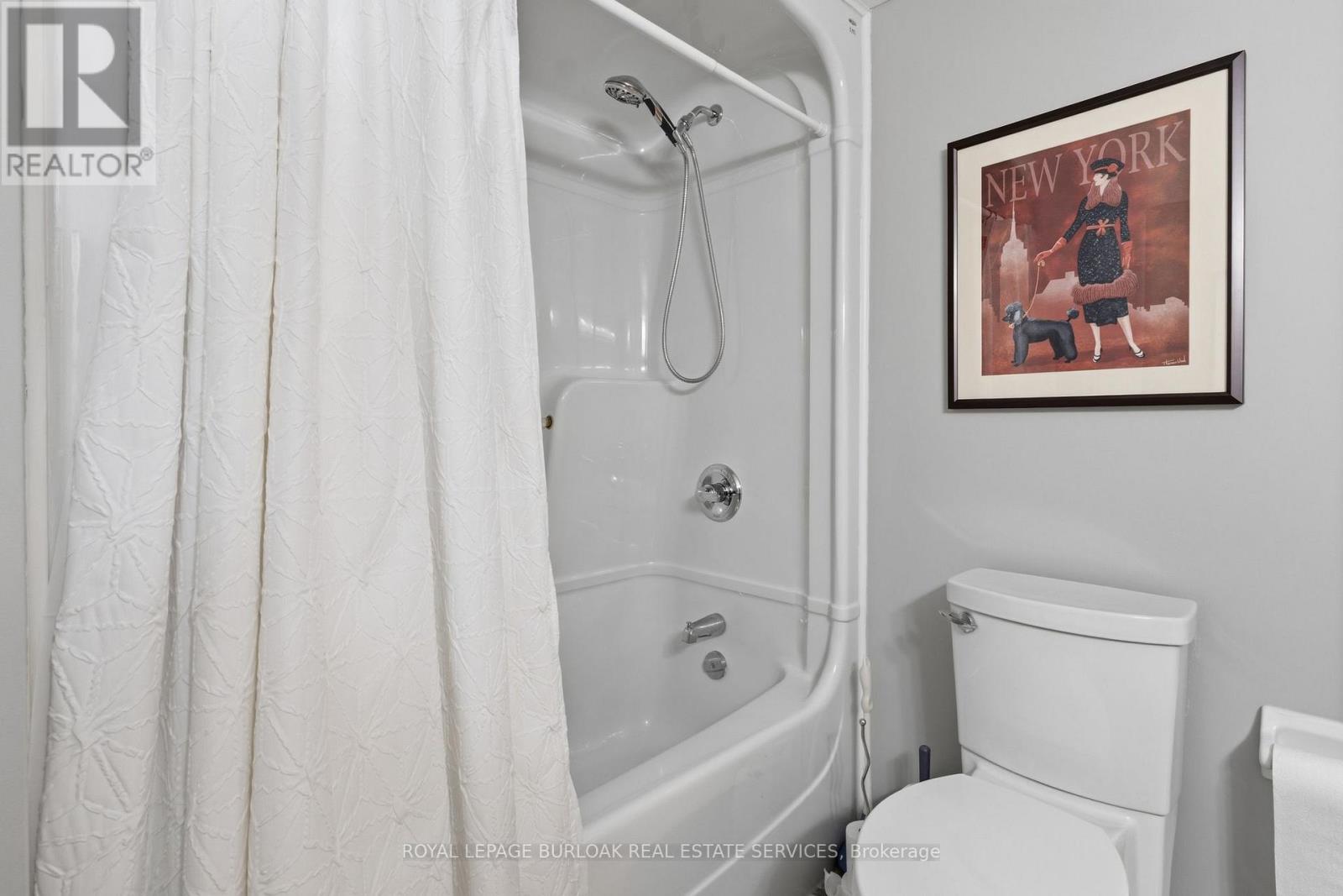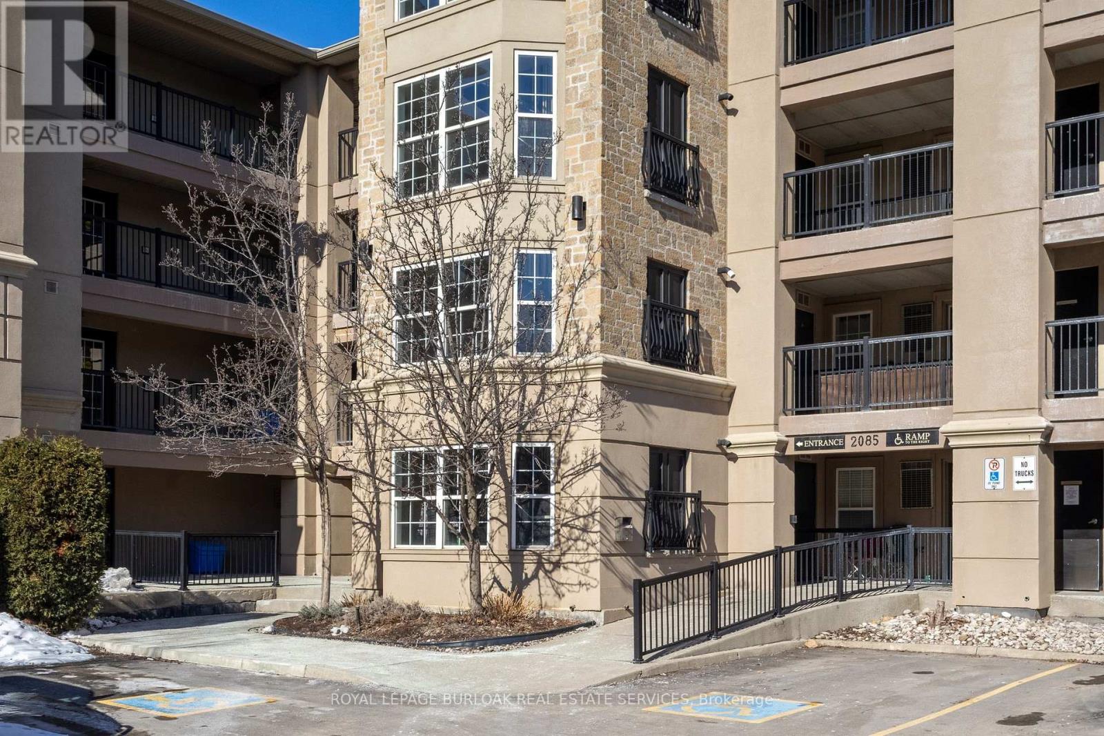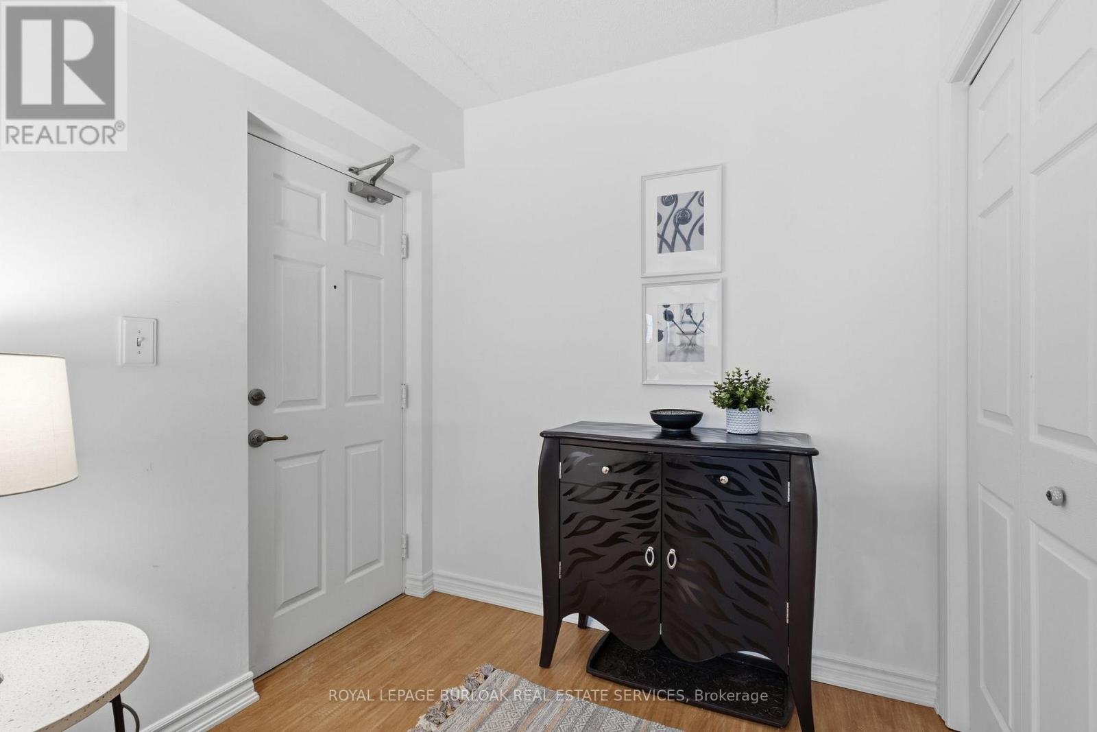 Spacious one-bedroom plus den, Hampton Model, in the highly desirable Uptown Orchard Condominium, offering over 800 sq. ft. of thoughtfully designed living space. This ground-floor suite features a walkout to a private patio backing onto a protected, treed ravine, the perfect setting for peaceful morning coffee or evening relaxation. Open-concept living and dining area, is complete with an electric fireplace, and flows seamlessly into the bright eat-in kitchen featuring ample cabinetry and generous counter space. The primary bedroom includes a double closet and a charming alcove ideal for enjoying the ravine views. The versatile den, complete with a walk-in closet, is ideal for a home office or guest bedroom. A four-piece bathroom conveniently incorporates an in-suite laundry. This suite includes one underground parking space and a storage locker. The clubhouse, just steps from your door, offers exceptional amenities including a gym, sauna, and party room with kitchen. Ample visitor parking is also available. Ideally located within walking distance to grocery stores, shops, restaurants, daycare, fitness centres, and public transit. Situated in North Burlington's Orchard community, with easy access to the GO Station, QEW, 407, and Bronte Park. Urban convenience meets tranquil ravine living. (id:4555)