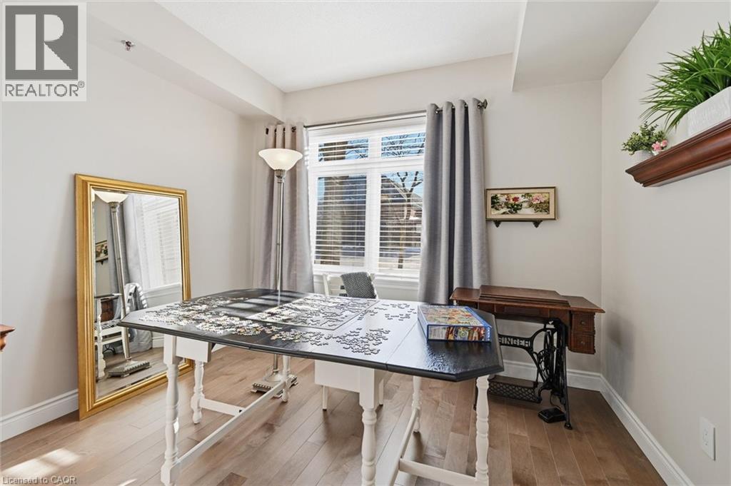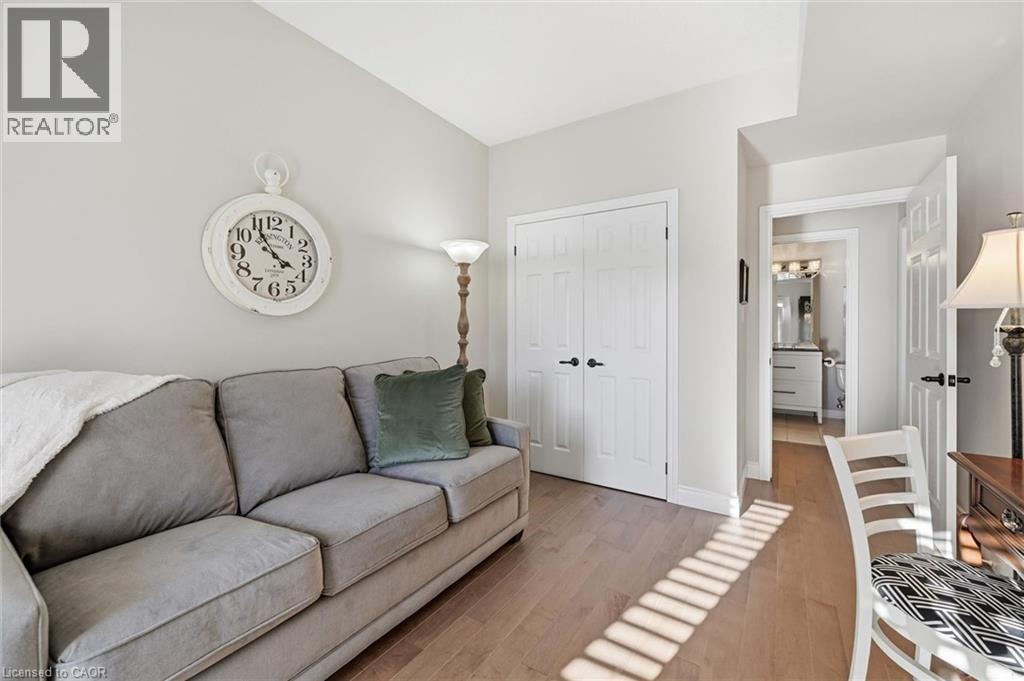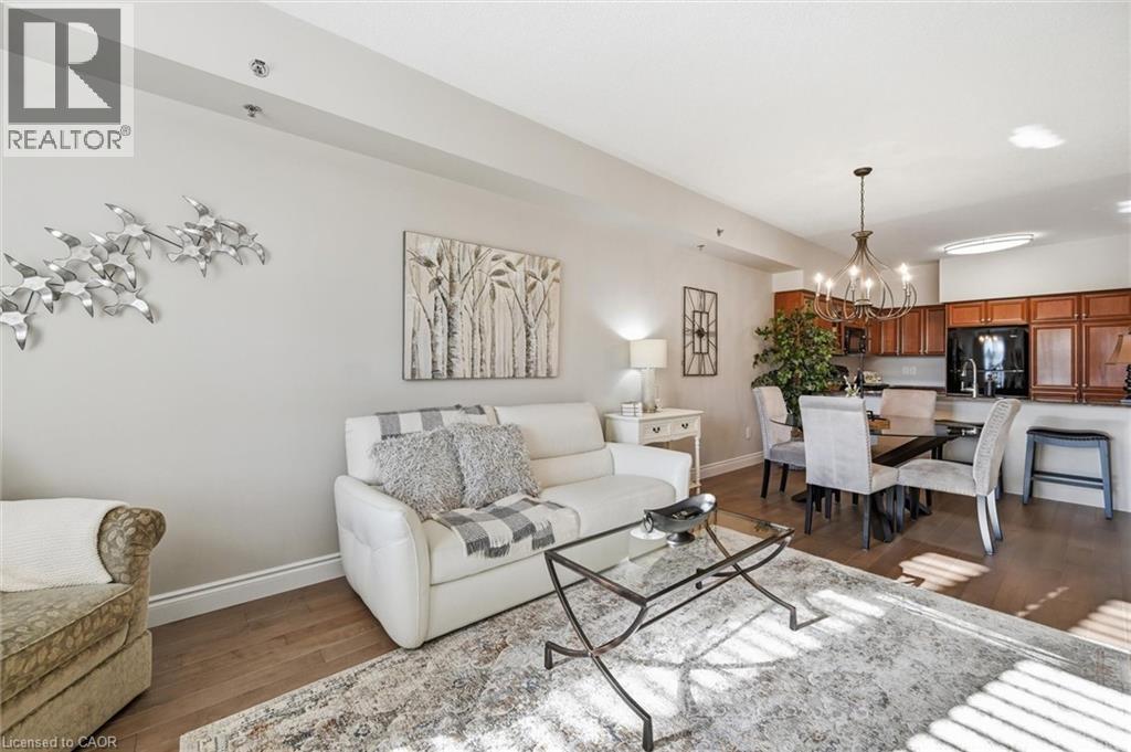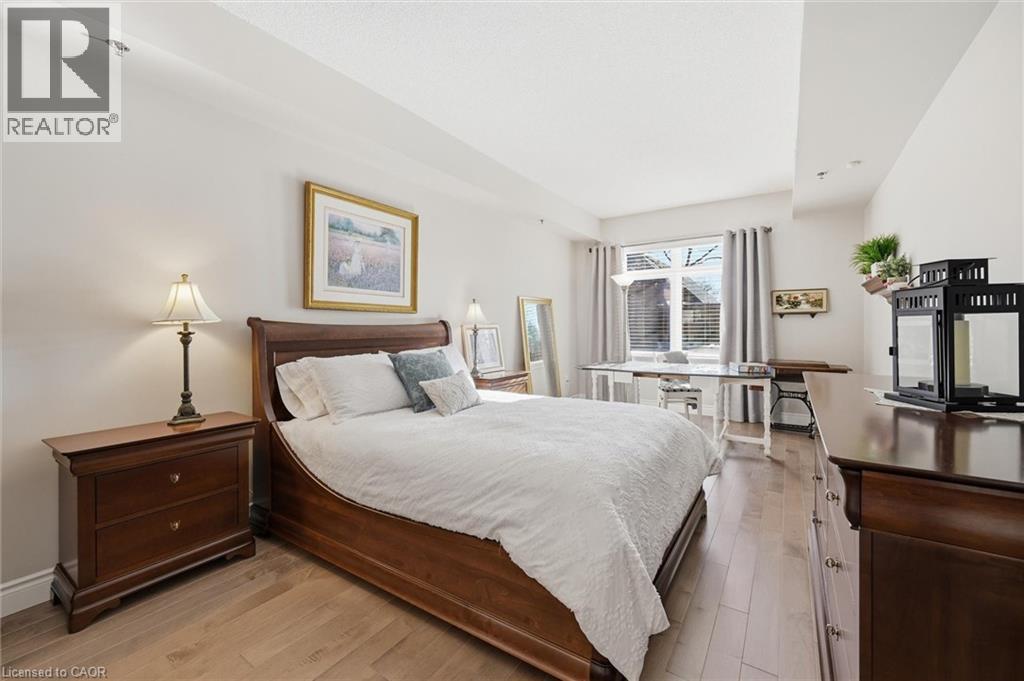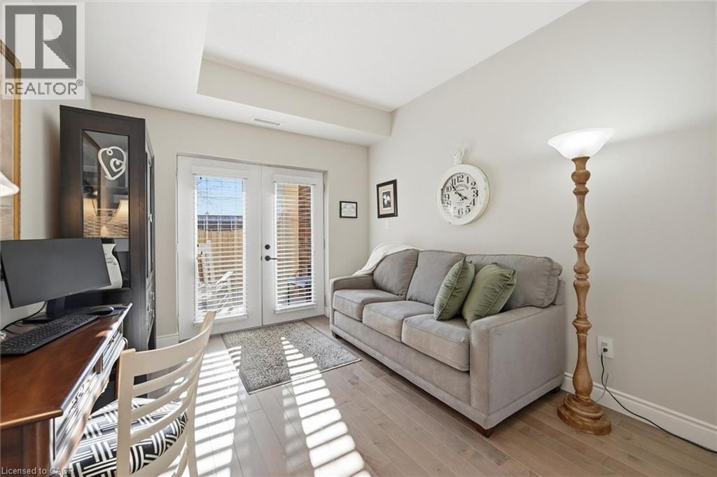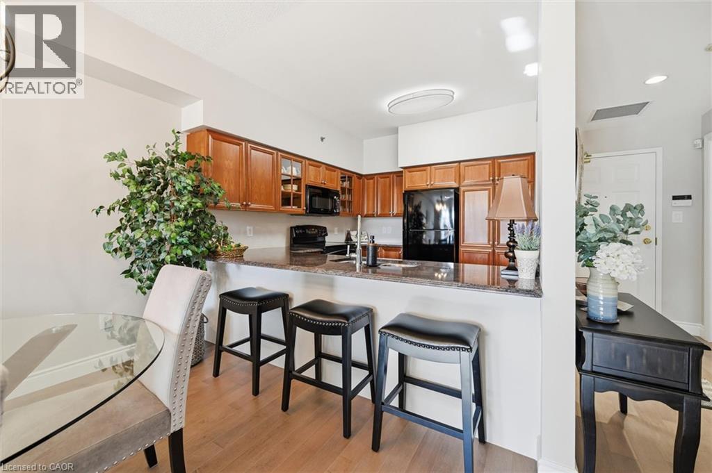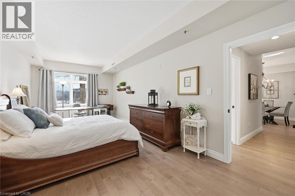 Beautifully updated 2 Bedroom, 2 Bathroom ground floor suite in The Dovercourt offering 1,186 sq ft of bright, functional living space with a private west facing terrace. This thoughtfully upgraded unit features new maple engineered hardwood flooring throughout, upgraded baseboards, modern black door hardware & a sleek electric fireplace with custom mantle. Fresh neutral paint throughout creates a clean, modern feel. The kitchen offers granite counters, upgraded lighting & generous cabinetry including a large pantry with custom pullout drawers designed for maximum organization and ease of access. The open concept living & dining area is filled with natural light from oversized west facing windows & walks out to a private terrace, perfect for relaxing or entertaining. Designed with comfort & ease in mind, the unit features 32 inch doorways & a spacious layout that allows for excellent flow throughout. Thoughtful storage has been incorporated into every closet, maximizing functionality without sacrificing space. A separate laundry room adds rare convenience along with additional storage, a feature not often found in condo living. The main bathroom has been updated with a new vanity & refreshed jetted tub, while the primary bedroom offers excellent closet space, a private ensuite & plenty of room for your favourite hobby, whether it’s puzzles, sewing, or a serene space for your morning yoga. Includes 2 parking spaces and 1 storage locker. One above ground parking space is ideal for quick trips or overnight guests. The second underground space is conveniently located close to the elevator with a 4ft x 9ft locker directly behind it for convenient everyday access. Well maintained low rise building in a prime Burlington location close to the GO Station, QEW, Royal Botanical Gardens, Burlington Golf & Country Club & everyday amenities. An exceptional opportunity for those seeking space, privacy, accessibility & convenience in a sought after community. (id:4555)