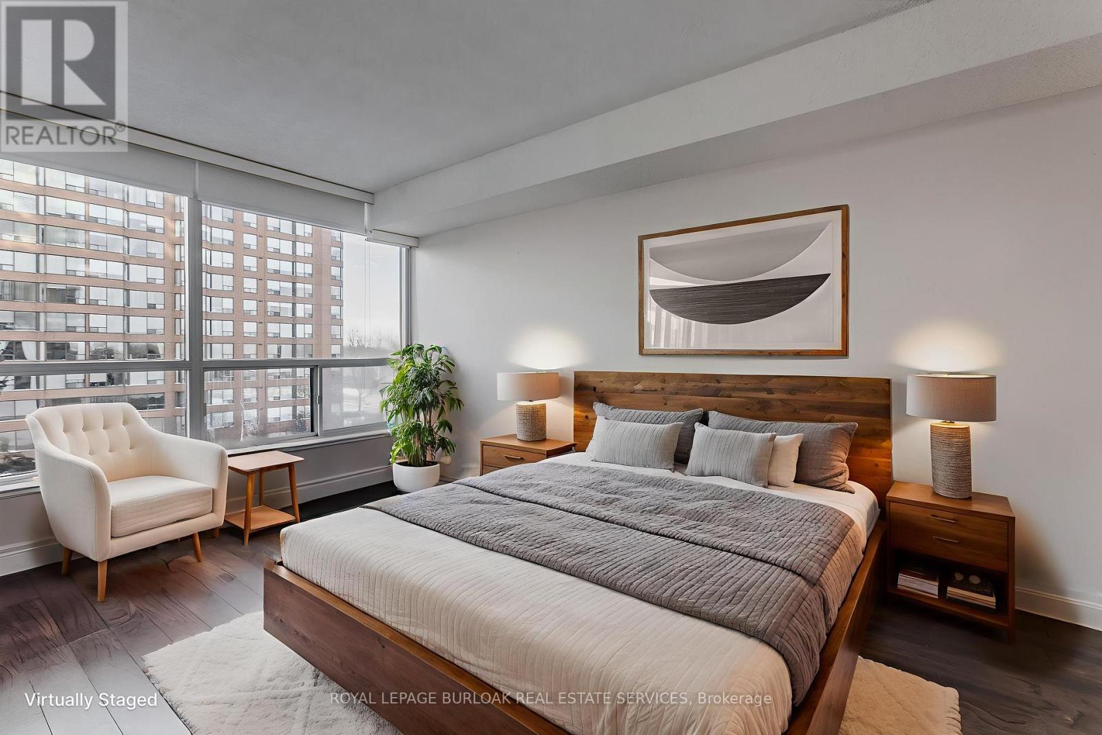 Welcome to an exceptional condo lifestyle in the prestigious Grand Regency Building in South Burlington perfectly suited for first-time buyers and downsizers seeking comfort, convenience, and a vibrant, walkable location. Just minutes from the lake, waterfront trails, Spencer Smith Park, and the heart of downtown, this home offers a seamless blend of everyday ease and lifestyle appeal. Inside, a spacious and welcoming entryway opens to a bright, open-concept layout designed for effortless living and entertaining. Hardwood floors run throughout, anchoring the airy living space filled with natural light. The galley-style eat-in kitchen features granite countertops, stainless steel appliances, and ample cabinetry-ideal for casual meals, hosting friends, or simplifying daily routines. A dedicated dining area adds flexibility, while the den with a glass partition and large window is perfect for a home office, hobby space, or cozy reading nook. The primary bedroom is a relaxing retreat with a wall-to-wall window, dual closets, and a private 4-pieceensuite bath. A generous second bedroom also offers expansive windows and a large closet-ideal for guests or flexible living needs. A modern 3-piece main bath with walk-in tile shower, in-suite laundry, 2underground parking spaces (1 owned, 1 exclusive), and a storage locker add everyday practicality and peace of mind. Residents enjoy resort-style amenities including concierge service, outdoor pool, sauna, exercise room, racquetball court, squash court, outdoor tennis court, rooftop terrace, community BBQ, party room, guest suites, library, car wash, and ample visitor parking. Whether you're stepping into homeownership or looking to downsize without compromise, this is low-maintenance living at its finest where weekends (id:4555)