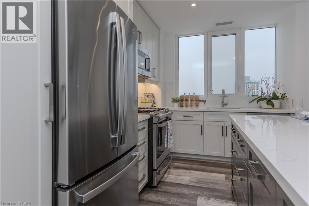 Experience elevated condo living at Gallery Condos, located in the heart of Burlington’s vibrant downtown core, where luxury, lifestyle, and breathtaking lake views come together seamlessly. Spanning 1,064 sqft, this stunning residence offers panoramic waterfront vistas and a front-row seat to one of the city’s most sought-after urban lifestyles—perfect for young professionals who want it all, just steps from their door. Inside, a modern and highly functional layout is flooded with natural light, complemented by upgraded wide-plank hardwood flooring throughout. The striking eat-in kitchen blends style and practicality with quartz countertops and backsplash, stainless steel appliances, deep pot-and-pan drawers, a pantry cabinet with efficient roll-out shelving, valance lighting, and a generous island with breakfast bar—ideal for hosting, working, or unwinding. Floor-to-ceiling windows in the spacious living area frame picturesque lake views and open to a private balcony with gas line for BBQ, creating an effortless indoor-outdoor connection. The primary suite is a true retreat, featuring floor-to-ceiling windows, a walk-in closet, and a spa-inspired ensuite with oversized vanity, deep soaker tub, and glass walk-in shower. A second bedroom with floor-to-ceiling windows offers flexibility for guests or a home office, complemented by a sleek four-piece main bath and convenient in-suite laundry. Parking and a storage locker are included. Residents enjoy an impressive collection of amenities including a contemporary lobby lounge, fully equipped fitness centre, co-working and meeting spaces, party and games rooms, media room, indoor lap pool, rooftop terrace with community BBQs, guest suites, concierge service, and a car wash. Set in an unbeatable lifestyle location, you’re steps from exceptional dining, cafés, entertainment, waterfront parks and trails, daily essentials, transit, and quick highway access—urban living at its most refined. (id:4555)