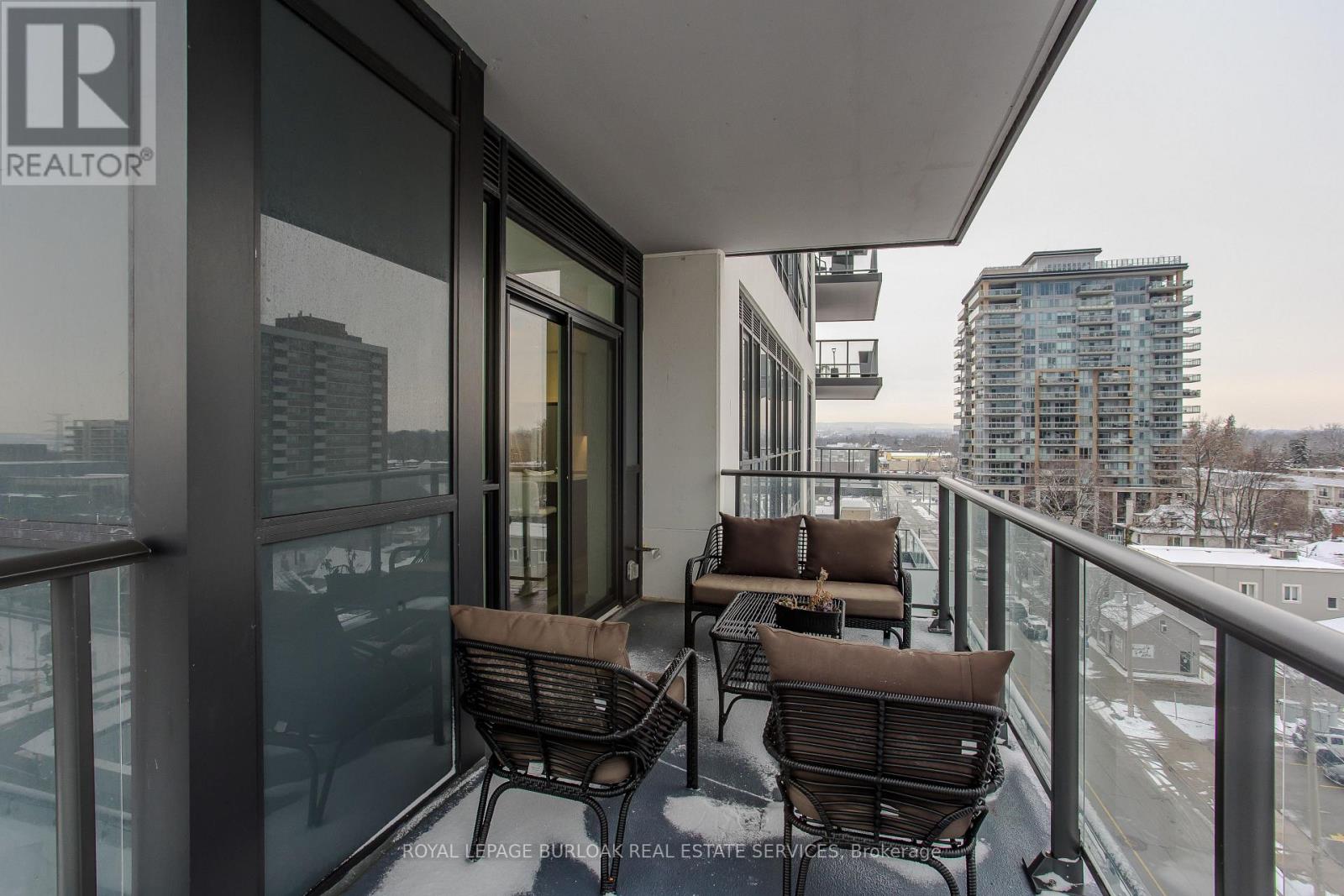 Experience elevated condo living at Gallery Condos, located in the heart of Burlington's vibrant downtown core, where luxury, lifestyle, and breathtaking lake views come together seamlessly. Spanning 1,064 sqft, this stunning residence offers panoramic waterfront vistas and a front-row seat to one of the city's most sought-after urban lifestyles-perfect for young professionals who want it all, just steps from their door. Inside, a modern and highly functional layout is flooded with natural light, complemented by upgraded wide-plank hardwood flooring throughout. The striking eat-in kitchen blends style and practicality with quartz countertops and backsplash, stainless steel appliances, deep pot-and-pan drawers, a pantry cabinet with efficient roll-out shelving, valance lighting, and a generous island with breakfast bar-ideal for hosting, working, or unwinding. Floor-to-ceiling windows in the spacious living area frame picturesque lake views and open to a private balcony with gas line for BBQ, creating an effortless indoor-outdoor connection. The primary suite is a true retreat, featuring floor-to-ceiling windows, a walk-in closet, and a spa-inspired ensuite with oversized vanity, deep soaker tub, and glass walk-in shower. A second bedroom with floor-to-ceiling windows offers flexibility for guests or a home office, complemented by a sleek four-piece main bath and convenient in-suite laundry. Parking and a storage locker are included. Residents enjoy an impressive collection of amenities including a contemporary lobby lounge, fully equipped fitness centre, co-working and meeting spaces, party and games rooms, media room, indoor lap pool, rooftop terrace with community BBQs, guest suites, concierge service, and a car wash. Set in an unbeatable lifestyle location, you're steps from exceptional dining, cafés, entertainment, waterfront parks and trails, daily essentials, transit, and quick highway access-urban living at its most refined. (id:4555)
