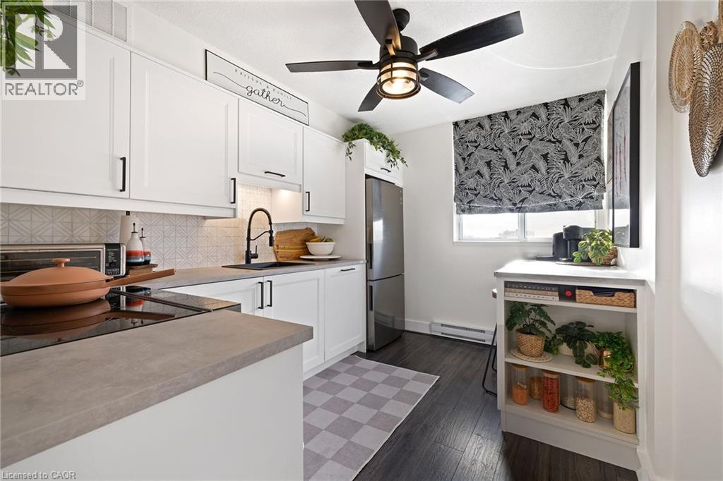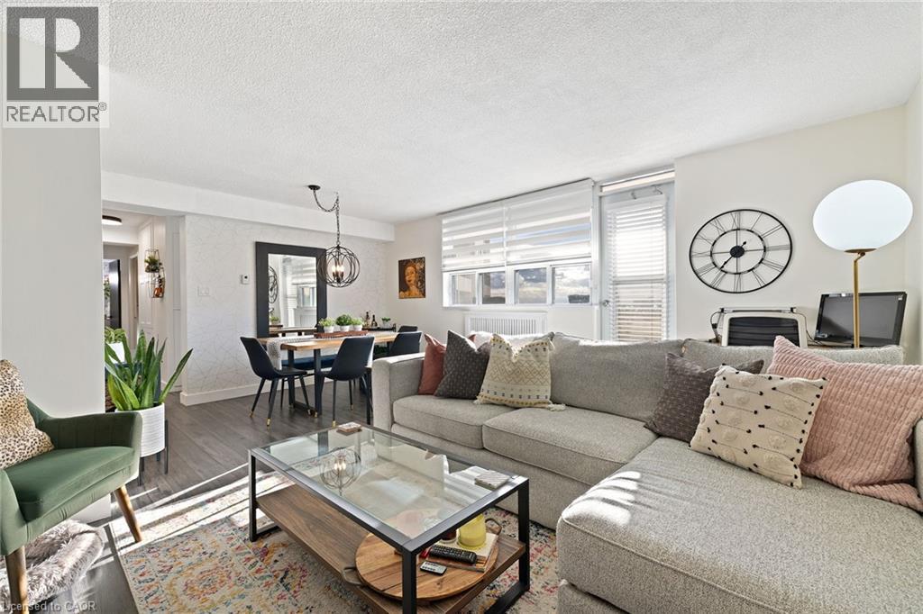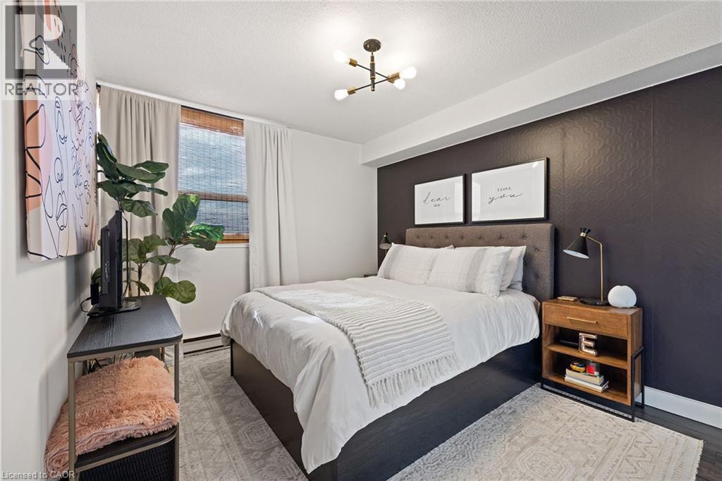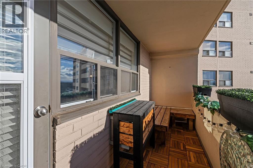 Welcome to the Empress, a well-managed condominium with 24 hour concierge, steps from Burlington Centre, Farm Boy, Denningers, public transit, parks, and quick highway access. This beautifully renovated 1+ Den, 2 bath suite boasts outstanding value and exceptional livability. The unit features newer flooring throughout, upgraded lighting, and a luxurious main bathroom. The sleek, renovated kitchen includes a custom built-in pantry, modern finishes, island and thoughtful storage solutions that maximize every inch. The spacious living room features a comfortable layout with a walkout to the private balcony, while the separate den is ideal for an office or quiet reading space. The dining area easily accommodates a full-sized dining table, making entertaining effortless. The primary bedroom includes a rare walk-in closet and convenient two-piece ensuite. Additional features include a full laundry room, PAX wardrobe system in the front hall closet, and custom built-in storage throughout the suite creating a highly functional and organized home. The Empress provides excellent amenities, including a renovated party room & gym, outdoor pool, and underground parking. Beautifully updated, move-in ready, and located in one of Burlington's most convenient neighbourhoods-this condo is a must-see. (id:4555)