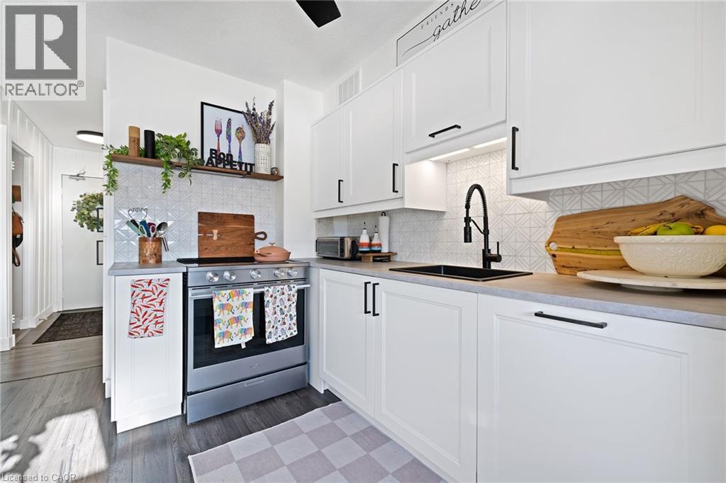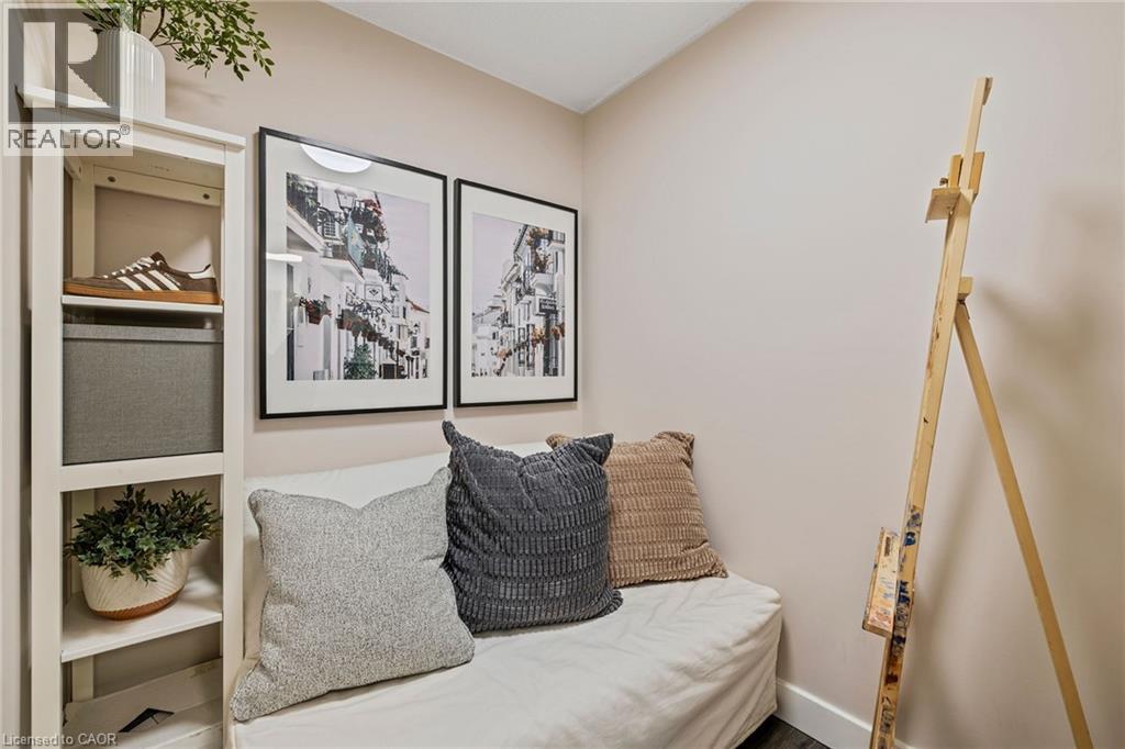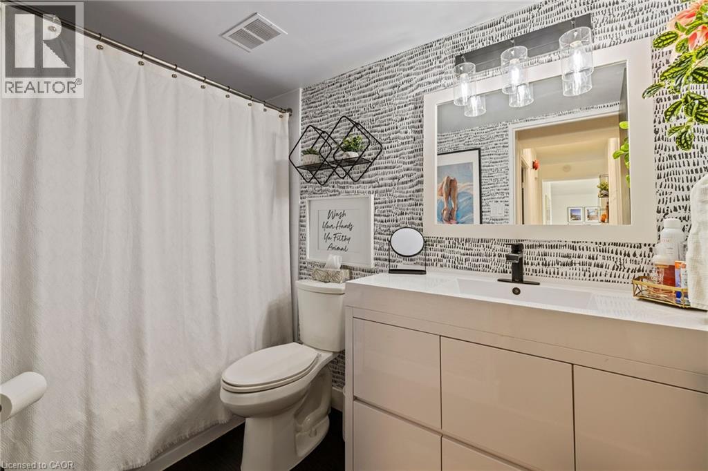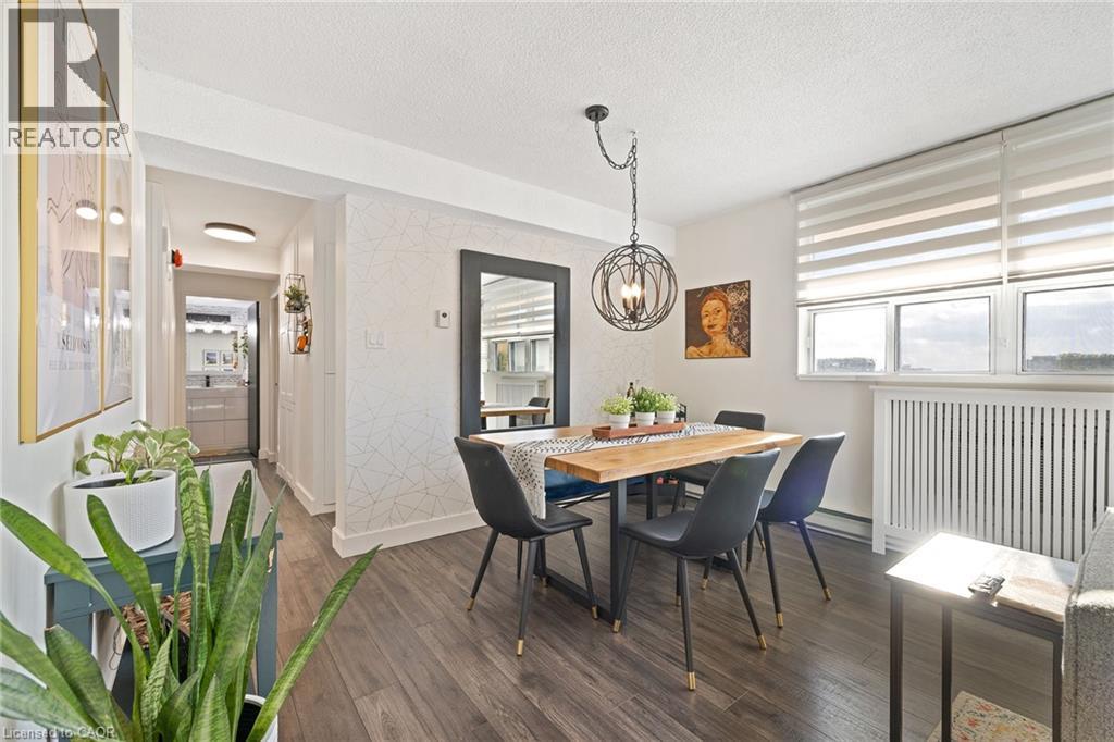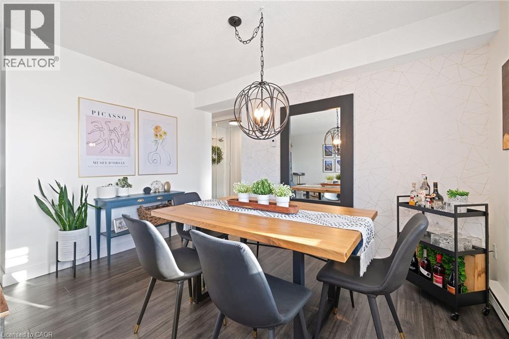 Welcome to the Empress, a well-managed condominium with 24 hour concierge, steps from Burlington Centre, Farm Boy, Denningers, public transit, parks, and quick highway access. This beautifully renovated 1+ Den, 2 bath suite boasts outstanding value and exceptional livability. The unit features newer flooring throughout, upgraded lighting, and a luxurious main bathroom. The sleek, renovated kitchen includes a custom built-in pantry, modern finishes, island and thoughtful storage solutions that maximize every inch. The spacious living room features a comfortable layout with a walkout to the private balcony, while the separate den is ideal for an office or quiet reading space. The dining area easily accommodates a full-sized dining table, making entertaining effortless. The primary bedroom includes a rare walk-in closet and convenient two-piece ensuite. Additional features include a full laundry room, PAX wardrobe system in the front hall closet, and custom built-in storage throughout the suite creating a highly functional and organized home. The Empress provides excellent amenities, including a renovated party room & gym, outdoor pool, and underground parking. Beautifully updated, move-in ready, and located in one of Burlington's most convenient neighbourhoods-this condo is a must-see. (id:4555)