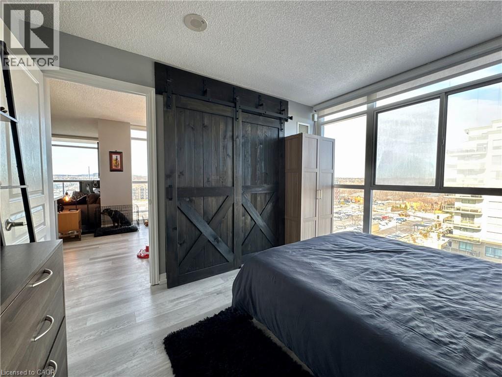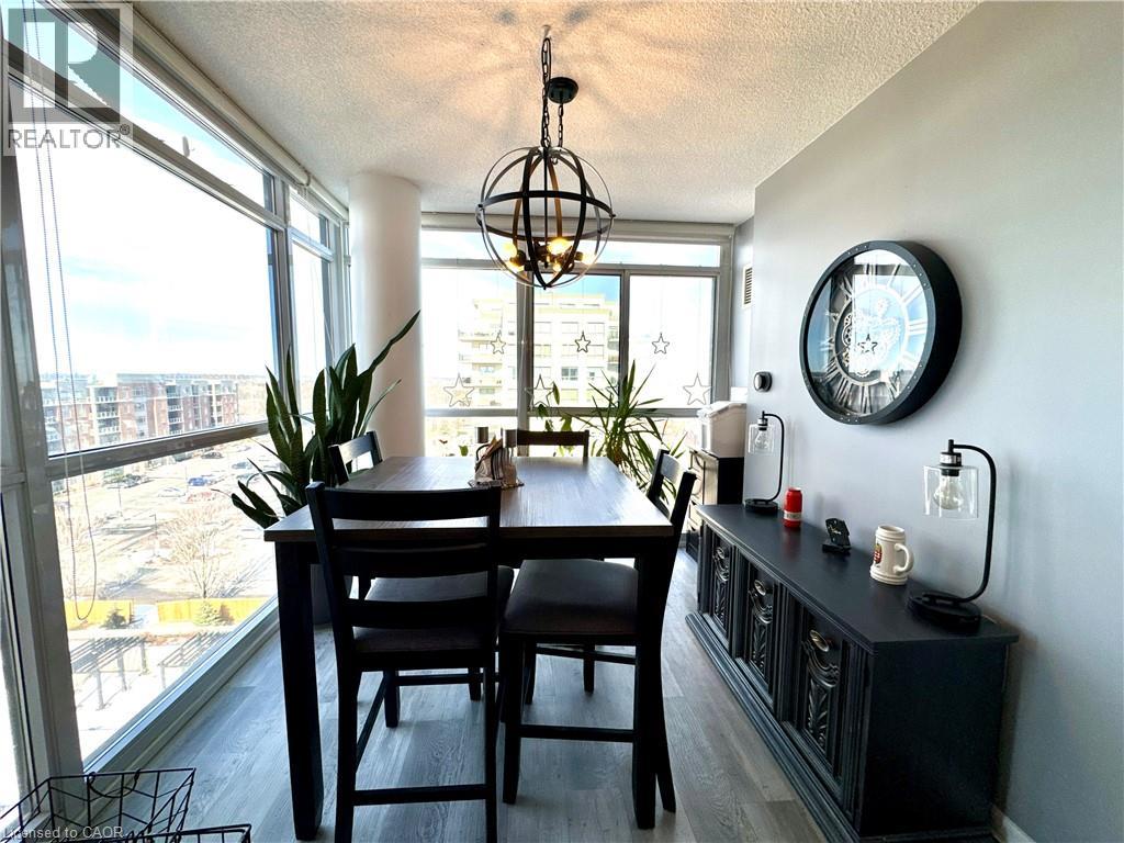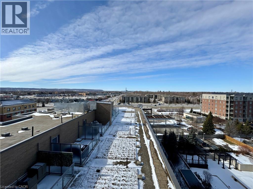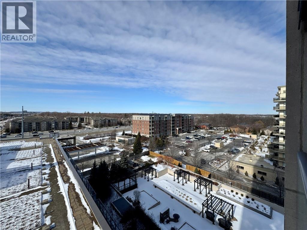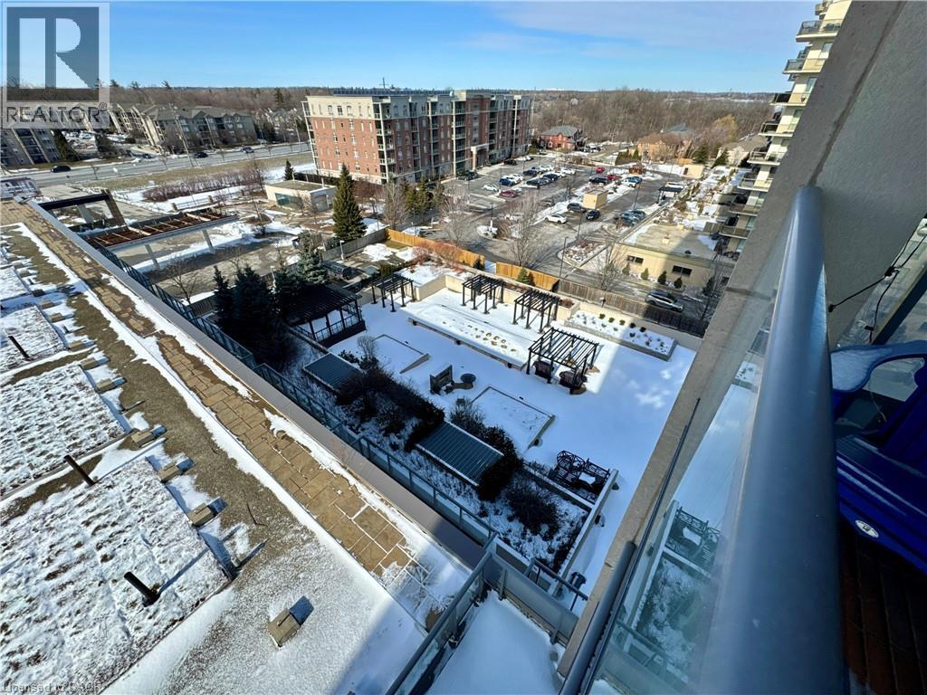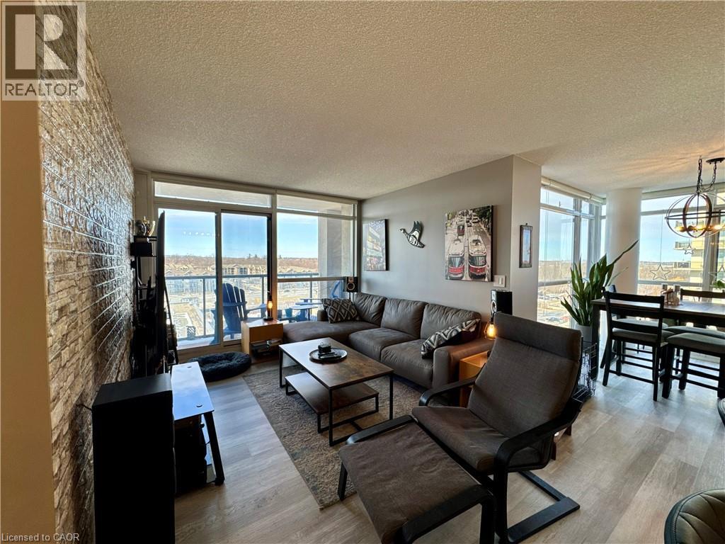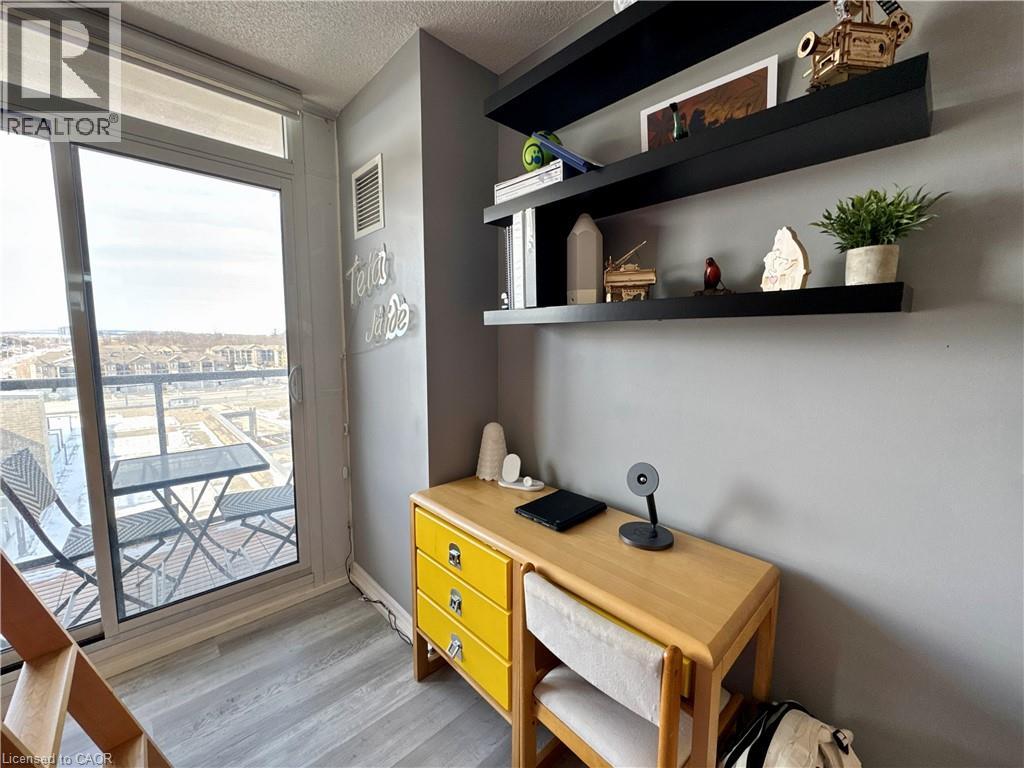Welcome to Unit 809 at the prestigious Ironstone Condominiums, located at 1940 Ironstone Drive in desirable Uptown Burlington. This bright and spacious corner suite features 918 square feet of living space, including 2 bedrooms plus a versatile den and 2 full bathrooms, thoughtfully upgraded with stylish finishes throughout. The modern kitchen showcases white cabinetry, white quartz countertops, a double under-mount sink, and a mosaic tile backsplash. The adjacent den has been cleverly converted into an extended pantry and beverage station complete with beverage fridge and wine cooler—perfect for entertaining and everyday convenience. Neutral grey vinyl flooring and upgraded lighting fixtures flow seamlessly throughout the suite. Floor-to-ceiling windows fill the living spaces with natural light and lead to a large private balcony accessible from both the living room and second bedroom. A separate dining area provides a comfortable space for hosting and family meals. The primary bedroom features double closets with stylish barn-style doors and a 4-piece ensuite bathroom. Additional conveniences include a stacked washer and dryer, upgraded fixtures and finishes, one underground parking space, and a storage locker. Residents enjoy an impressive selection of building amenities including a fully equipped fitness centre, yoga room, games room, media room, library, party room, rooftop terrace with community BBQs, concierge service, contemporary lobby with fireplace and seating area, mail room, and covered visitor parking. Ideally situated close to a wide variety of restaurants, cafés, shopping, and everyday services, with easy access to major highways, parks, walking trails, schools, a community recreation centre, and public transit. A fantastic opportunity to enjoy modern condo living in one of Burlington’s most convenient neighbourhoods. (id:4555)
