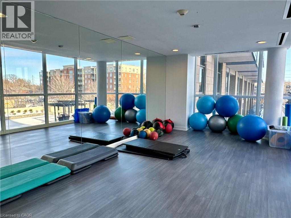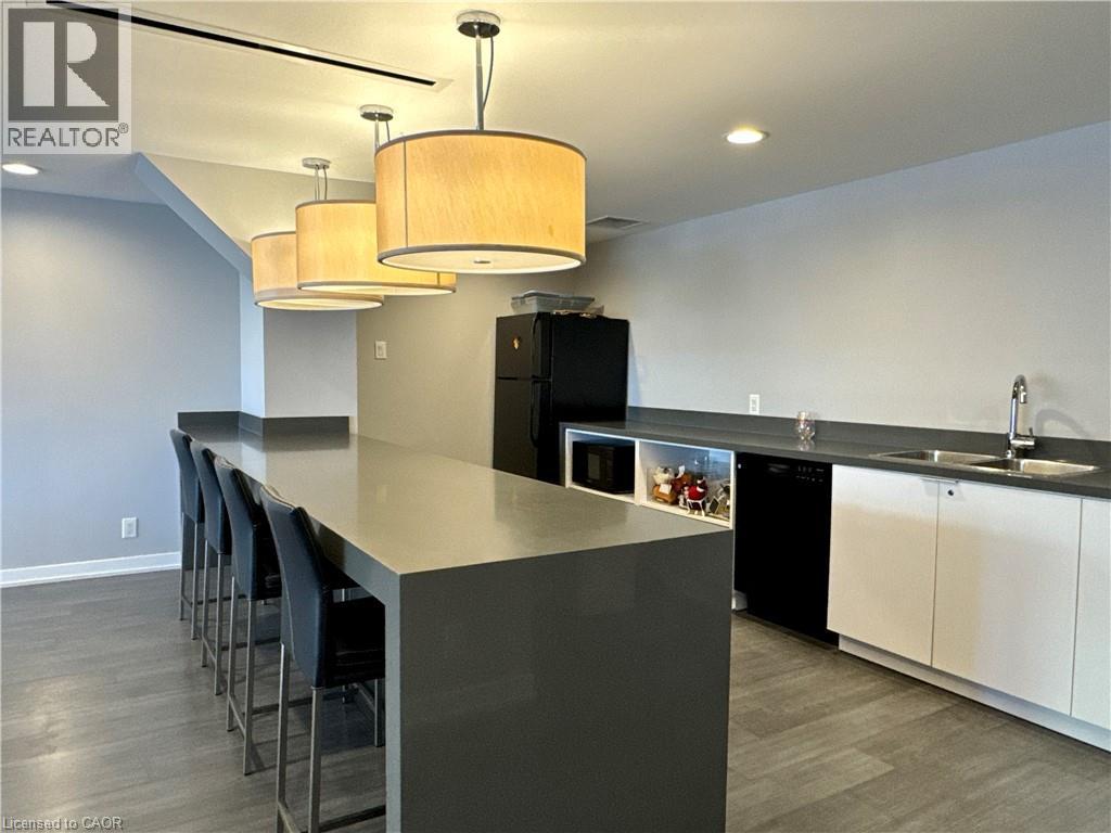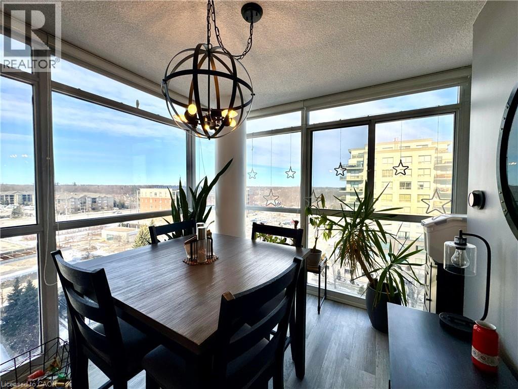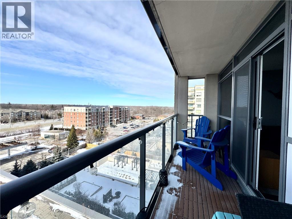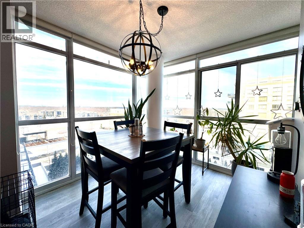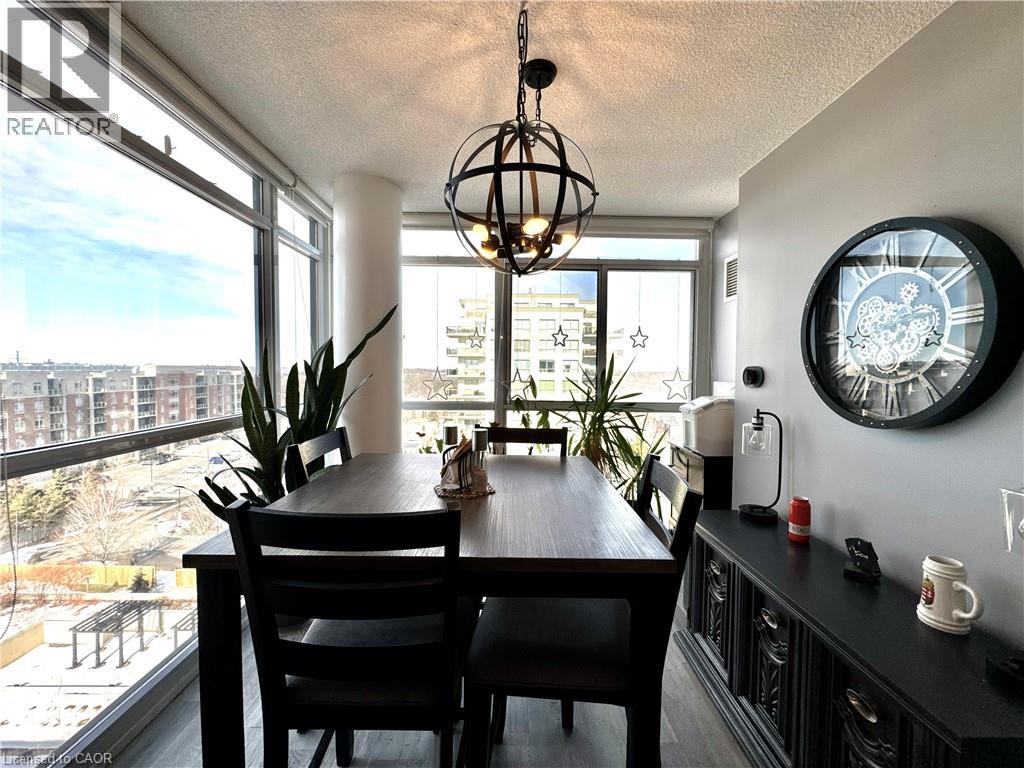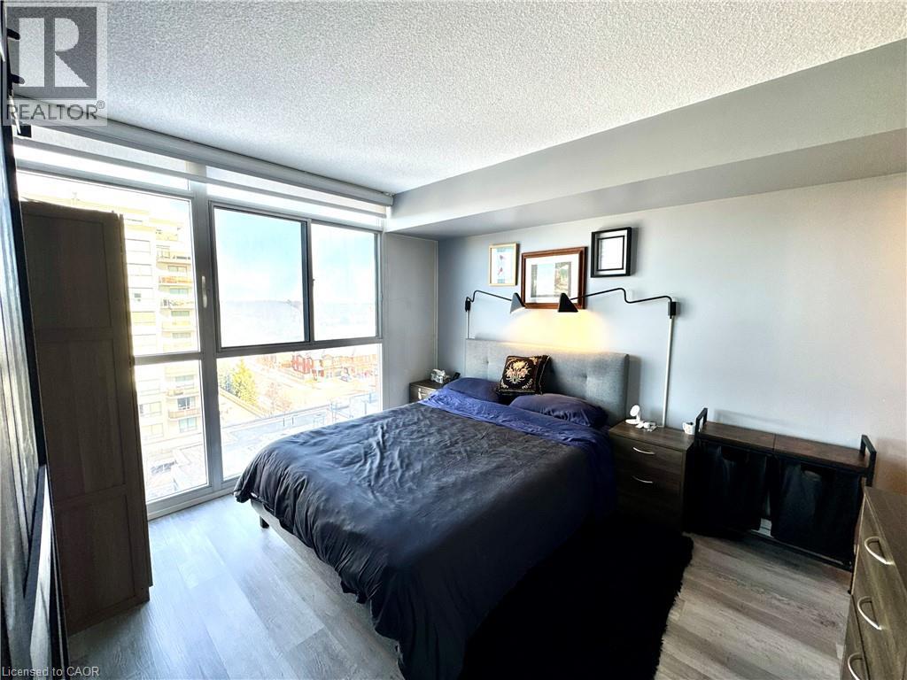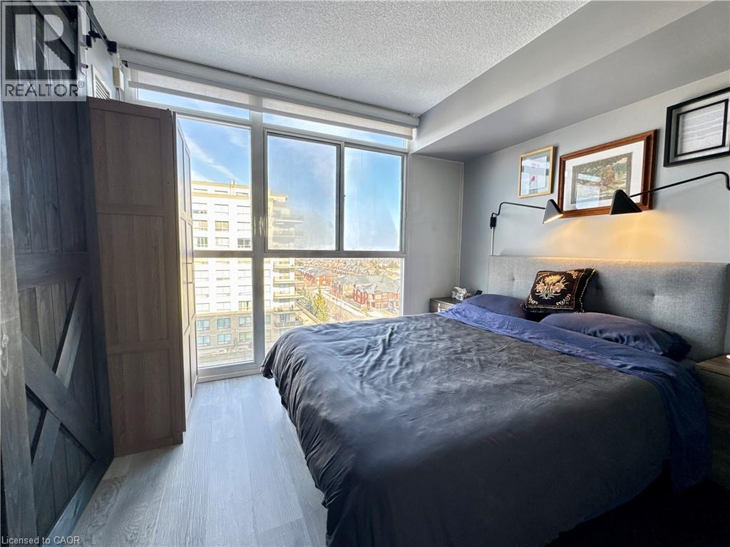 Welcome to Unit 809 at the prestigious Ironstone Condominiums, located at 1940 Ironstone Drive in desirable Uptown Burlington. This bright and spacious corner suite features 918 square feet of living space, including 2 bedrooms plus a versatile den and 2 full bathrooms, thoughtfully upgraded with stylish finishes throughout. The modern kitchen showcases white cabinetry, white quartz countertops, a double under-mount sink, and a mosaic tile backsplash. The adjacent den has been cleverly converted into an extended pantry and beverage station complete with beverage fridge and wine cooler—perfect for entertaining and everyday convenience. Neutral grey vinyl flooring and upgraded lighting fixtures flow seamlessly throughout the suite. Floor-to-ceiling windows fill the living spaces with natural light and lead to a large private balcony accessible from both the living room and second bedroom. A separate dining area provides a comfortable space for hosting and family meals. The primary bedroom features double closets with stylish barn-style doors and a 4-piece ensuite bathroom. Additional conveniences include a stacked washer and dryer, upgraded fixtures and finishes, one underground parking space, and a storage locker. Residents enjoy an impressive selection of building amenities including a fully equipped fitness centre, yoga room, games room, media room, library, party room, rooftop terrace with community BBQs, concierge service, contemporary lobby with fireplace and seating area, mail room, and covered visitor parking. Ideally situated close to a wide variety of restaurants, cafés, shopping, and everyday services, with easy access to major highways, parks, walking trails, schools, a community recreation centre, and public transit. A fantastic opportunity to enjoy modern condo living in one of Burlington’s most convenient neighbourhoods. (id:4555)