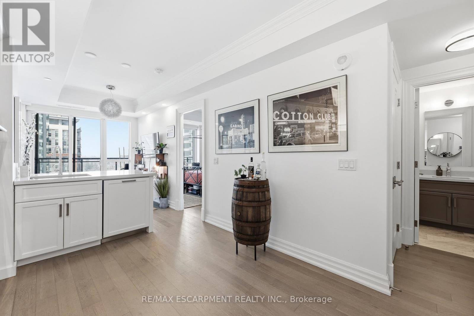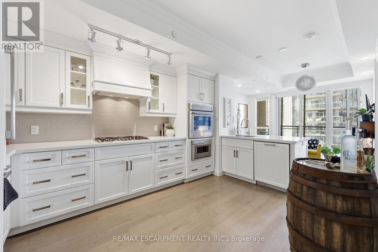 Welcome to Unit 1102 at The Bridgewater Residences - an exceptional opportunity to live in the heart of downtown Burlington just steps from the lake. This bright and well-maintained 1 bedroom, 1 bathroom condo offers approximately 581 sq. ft. of thoughtfully designed living space, ideal for first-time buyers, professionals, or those looking to downsize without compromising on location. Enjoy an open-concept layout featuring a functional kitchen overlooking the living and dining area, creating a seamless space for everyday living and entertaining. Large windows allow for plenty of natural light while showcasing beautiful city and lakeside surroundings. Located in one of Burlington's most desirable waterfront communities, this building places you just steps from Spencer Smith Park, the Burlington waterfront, walking trails, restaurants, cafés, boutique shopping, and vibrant downtown amenities. Commuters will appreciate the convenient access to major highways and public transit. (id:4555)