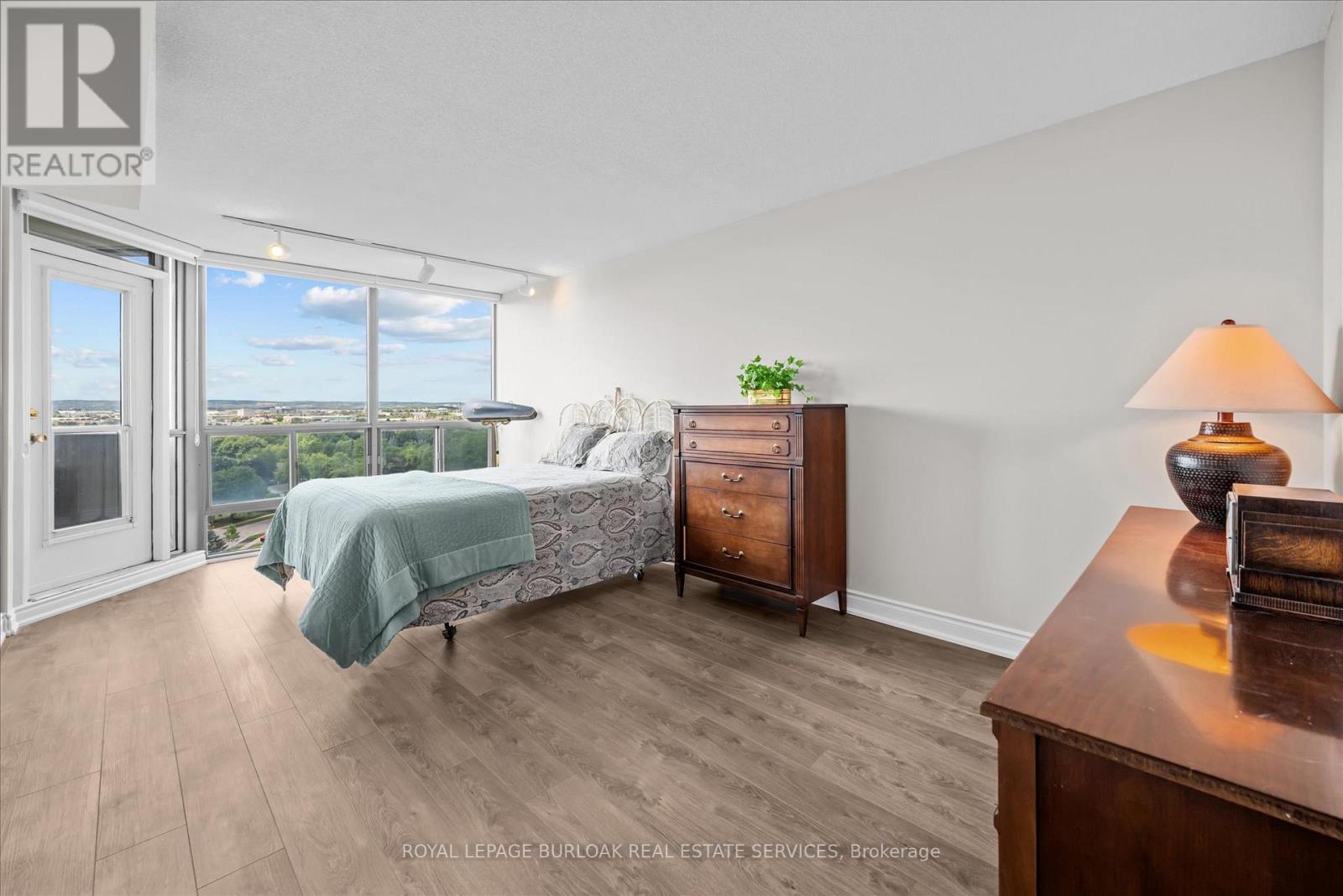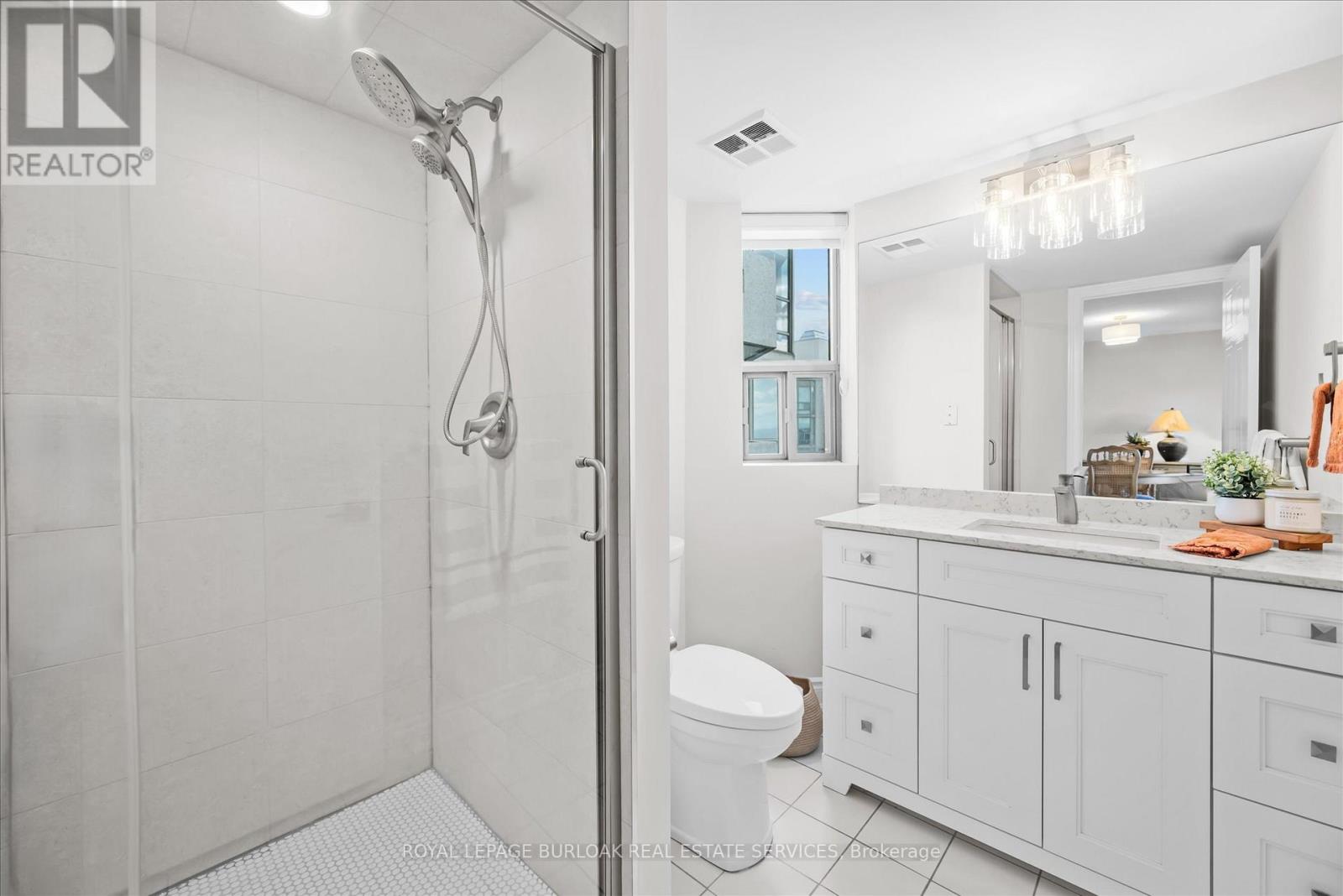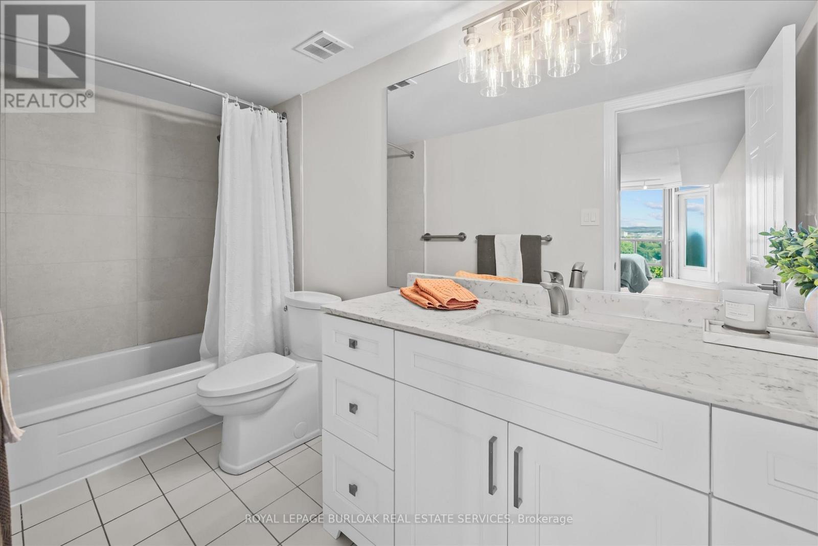 Welcome to sought-after South Burlington and the prestigious Pinedale Estates - an exceptionally well-managed and highly desirable condominium community. This beautifully updated, turnkey two-bedroom, two-bathroom suite offers just over 1,200 square feet of thoughtfully designed living space. The bright, open-concept layout is both spacious and inviting, featuring a brand-new eat-in kitchen complete with stainless steel appliances, quartz countertops, and contemporary finishes. New flooring runs throughout the unit, complemented by fully updated bathrooms and plumbing, modern light fixtures and sockets, new window coverings and light fixtures, and a fresh, neutral palette extending across all walls, trim, and doors. Positioned on the sub-penthouse level, this impressive 11th-floor residence offers stunning escarpment views from your private balcony, accessible through two separate walkouts - the perfect setting to unwind or entertain. Residents enjoy a vibrant and welcoming social atmosphere with seasonal gatherings, holiday celebrations, games nights, and community BBQs. An exceptional range of amenities enhances everyday living, including a party room, library, hobby room, indoor pool, billiards room, golf practice range, sauna, and more. Ideally situated, the building is just a short two-minute walk to grocery stores and restaurants, with convenient access to downtown Burlington and Bronte. Commuters will appreciate the proximity to the GO Train station and quick highway access. Renovated suites on high floors rarely become available in this building. Don't miss this exceptional opportunity to own in one of South Burlington's most desirable communities. (id:4555)