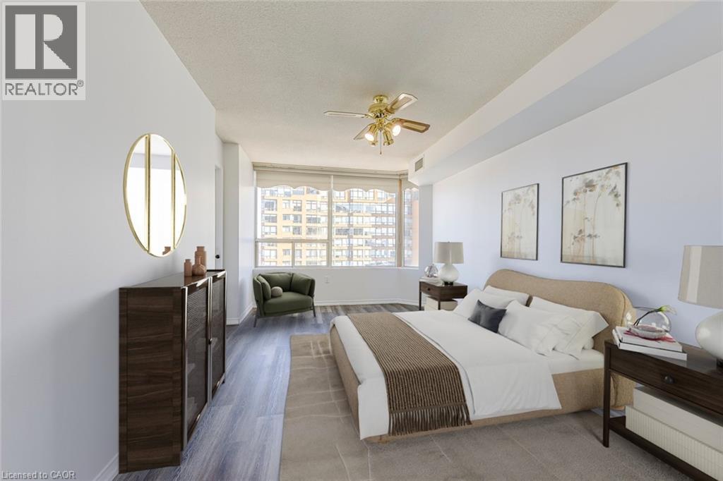 Rare 1,432 Sq Ft Condo at The Palace, Burlington. Unit 1705 at The Palace is a 1,432 sq ft residence featuring an expansive layout, abundant natural light, and views toward Lake Ontario. Opportunities to own a condo of this size in this building are extremely rare. A generous entrance foyer leads into a spacious kitchen and an oversized living room, ideal for both everyday living and entertaining. A separate dining room offers excellent flexibility for hosting, while the bright sunroom-with lake views-provides an ideal space for a home office, reading area, or quiet retreat. The suite includes two large bedrooms, highlighted by a spacious primary bedroom with a walk-in closet and 4-piece ensuite. A second full 4-piece bathroom serves guests and the additional bedroom. Large windows throughout fill the home with natural light, enhancing the open and airy feel. The Palace is a well-managed and highly regarded building offering residents a full suite of amenities, including a fitness centre, outdoor pool, sauna, tennis and squash courts, party room, and 24-hour security. Located just steps from Spencer Smith Park, the lakefront, Burlington GO Station, and the vibrant downtown core, this home offers an exceptional blend of space, convenience, and lifestyle. A truly unique offering - one of the largest floor plans in the building, designed for those who value light, scale, and location. (id:4555)