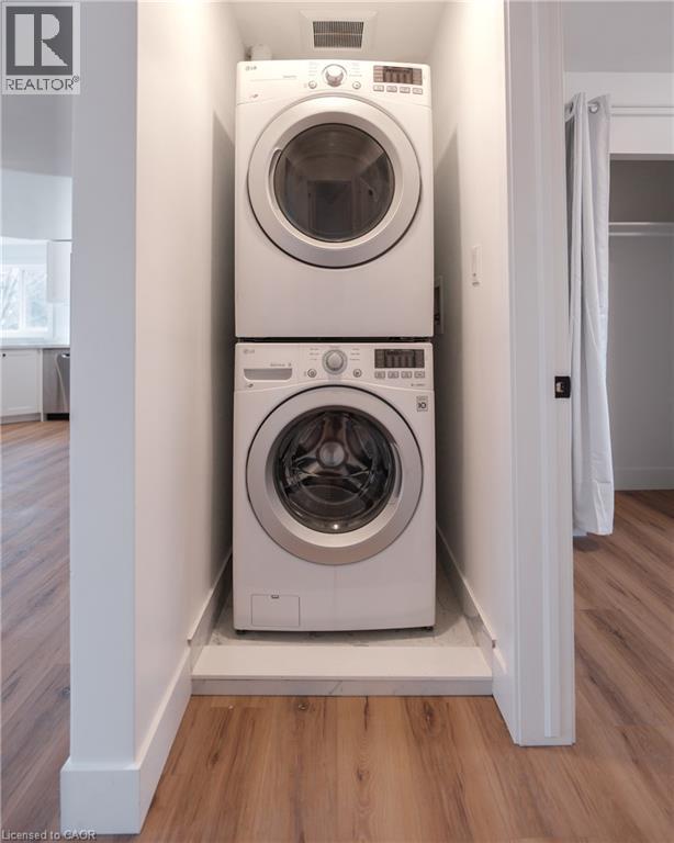 Beautiful +/- 1,100 sqft upper floor 3-bedroom, 1 bathroom apartment in desirable Burlington location. Fully renovated with modern finishes, updated flooring, fresh paint, and a bright, functional layout throughout. Kitchen features quartz countertops and modern appliances, including fridge, stove, dishwasher, and microwave. In-suite laundry. Separate A/C and soundproofed construction for added comfort and privacy. Additional fees for two tandem parking spaces and storage shed. Partial outdoor space (~160 sq ft, accessible via rear stairs to be built Spring 2026). Conveniently located close to GO Transit and bus route. (id:4555)