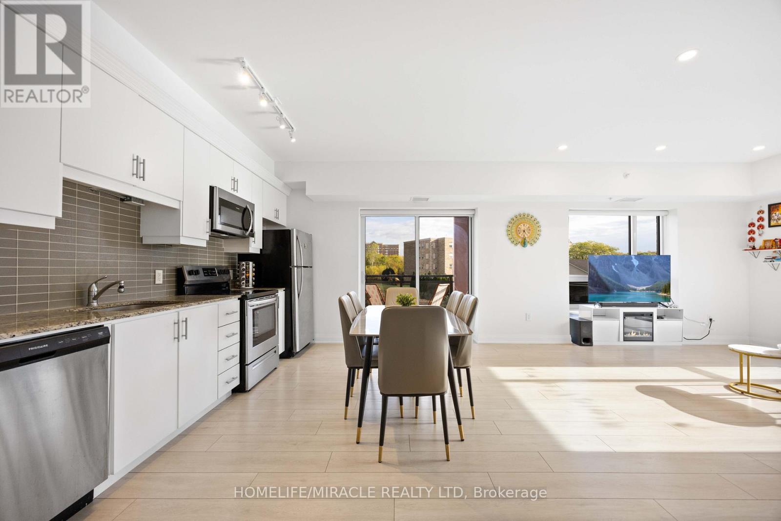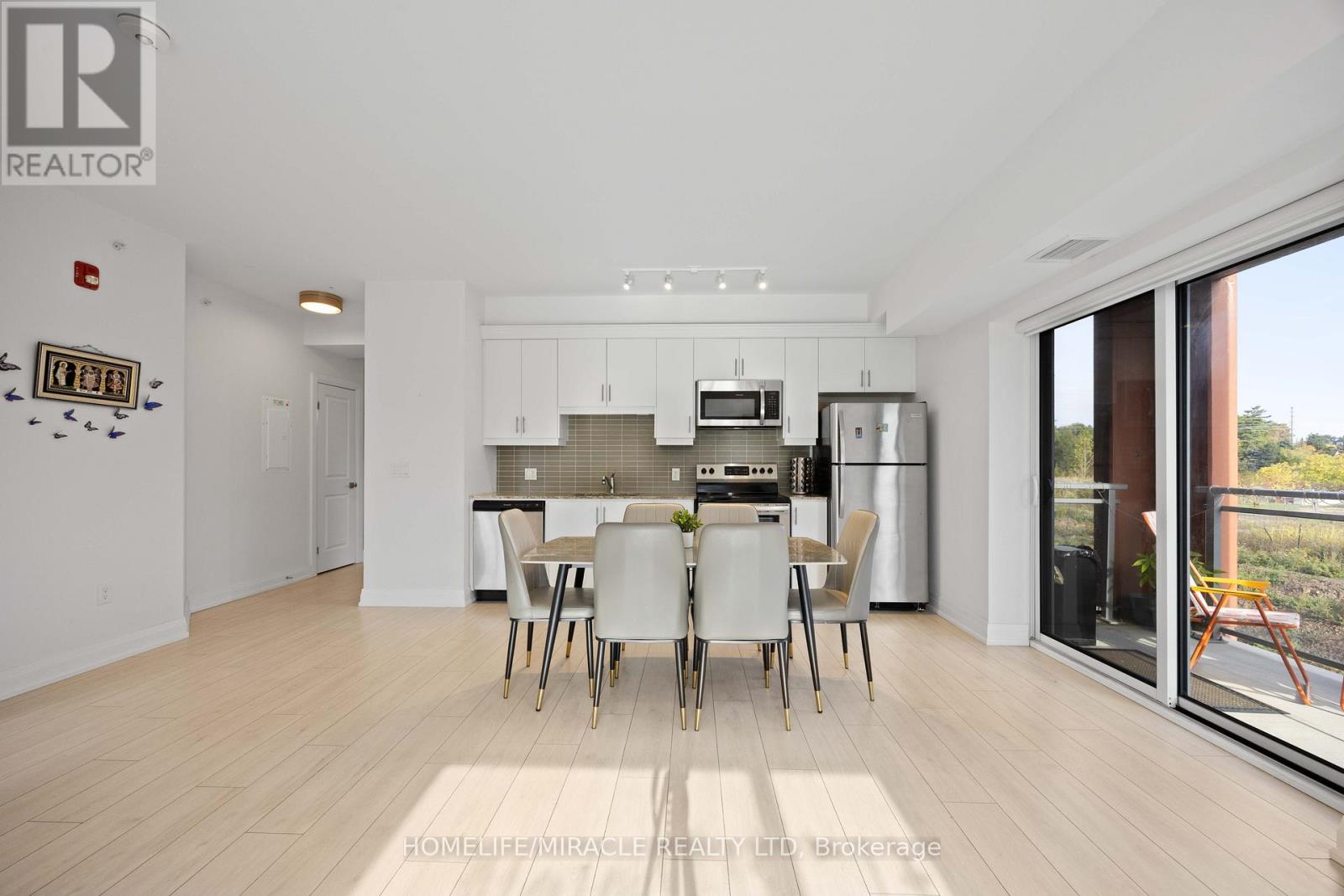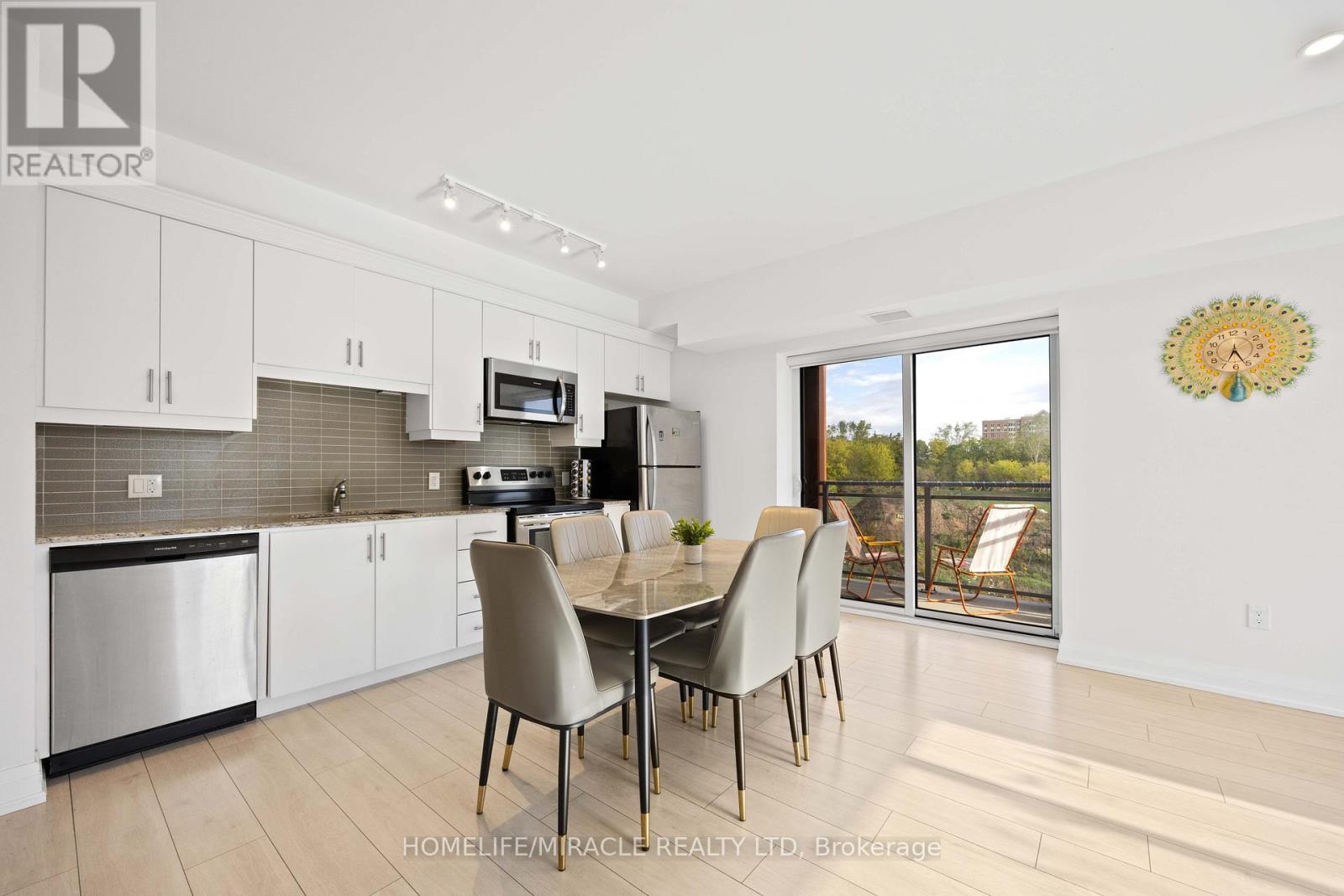 Welcome to this exceptional corner suite, perfectly situated in the heart of the highly sought-after Tansley neighbourhood. This bright and beautifully designed 2-bedroom, 2-bathroom residence offers an open-concept layout enhanced by soaring 9-foot ceilings and expansive floor-to-ceiling windows that flood the space with natural light while capturing tranquil south and east-facing views. With no neighbours on either side, the suite offers a rare sense of privacy, complemented by a private balcony ideal for relaxing or entertaining. The spacious primary bedroom features a luxurious 4-piece ensuite, while the second bedroom is thoughtfully appointed with wall-to-wall closets, providing generous storage. Elegant wide-plank laminate flooring flows throughout the home, leading into a contemporary kitchen complete with sleek white flat-panel cabinetry, granite countertops, and stainless-steel appliances-perfectly blending style and functionality. Additional highlights include in-suite laundry, abundant closet space, a storage locker on the same floor for convenience, and one underground parking space. Ideally located close to shopping, dining, parks, and transit, this refined condo offers the perfect balance of comfort, sophistication, and everyday convenience, an exceptional place to call home. (id:4555)